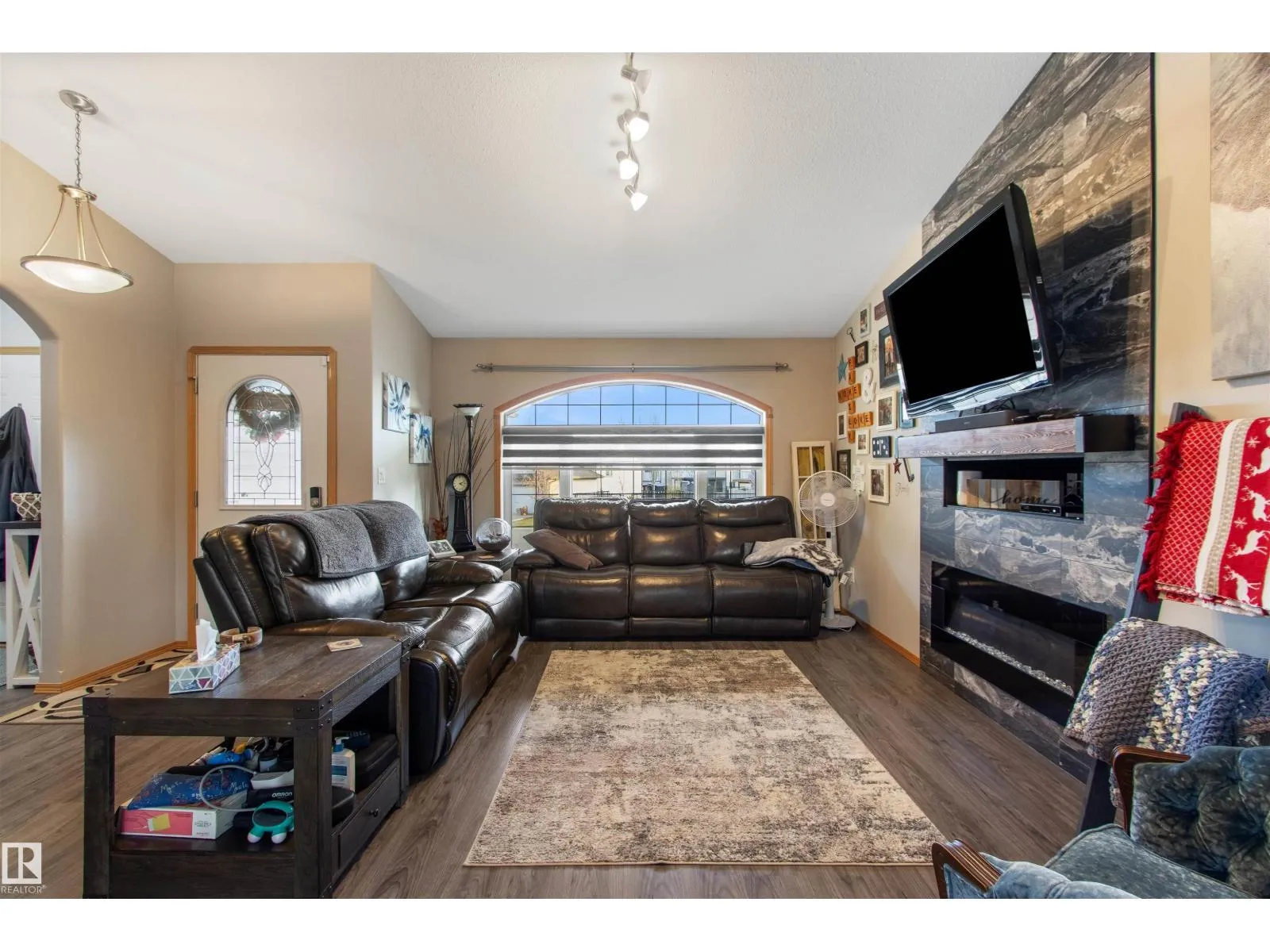 Welcome to this stunning 4 bedroom & 3 bathroom bungalow in Aspenview. Step inside to discover a bright, open-concept living area with vaulted ceilings that create a spacious and modern feel. The main focal point is the brand new incredible feature wall complete with fireplace. The kitchen is designed for efficiency and style, featuring a walk-in pantry, island, and gas stove, perfect for the home chef. The dining area opens directly onto the huge covered deck, where you can enjoy the beautiful fenced yard, mature landscaping and a great view. A gas BBQ & firepit hookup makes this outdoor space super enjoyable and relaxing. Primary bedroom showcases a walk in closet and ensuite. Main floor laundry is an added bonus! The fully finished basement has an oversized family room with extra space for games tables and entertaining. The heated 24x24 garage has massive ceilings and offers ample storage, built-in shelving, and room for two vehicles. This property has it all and is the perfect place to call home! (id:27476)