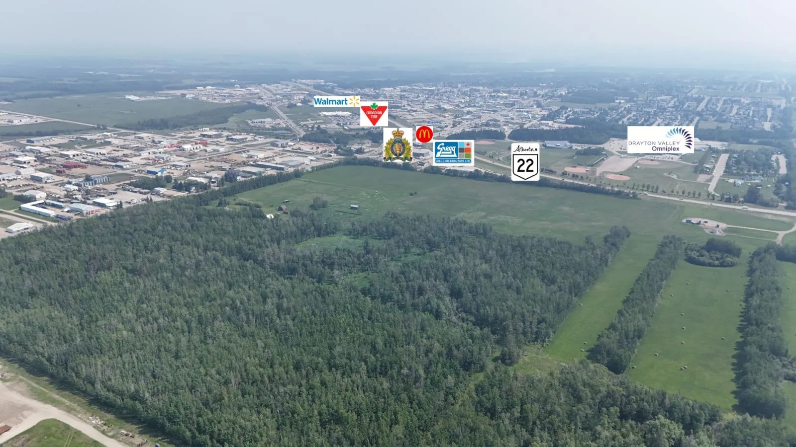 An incredible opportunity to own 159.08+/- acres within the Town of Drayton Valley limits! This property is designated S-URB (Special Urban Reserve District) and is strategically positioned for future growth. Located along Highway 22, the land offers excellent visibility and access, and is surrounded by established residential, commercial, and industrial development. Perfect for investors and developers, this rare parcel provides holding income potential today with outstanding redevelopment possibilities for the future. Whether you are looking to secure a prime investment for long-term growth or position yourself for Drayton Valleys next phase of expansion, this property offers unmatched potential. The property also features a 2000+/- sf home, 800+/- sf attached garage, and patio, providing additional utility while future plans are considered. Title carries registered surface leases and right-of-way caveats. Seller has confirmed receiving annual compensation. (id:27476)