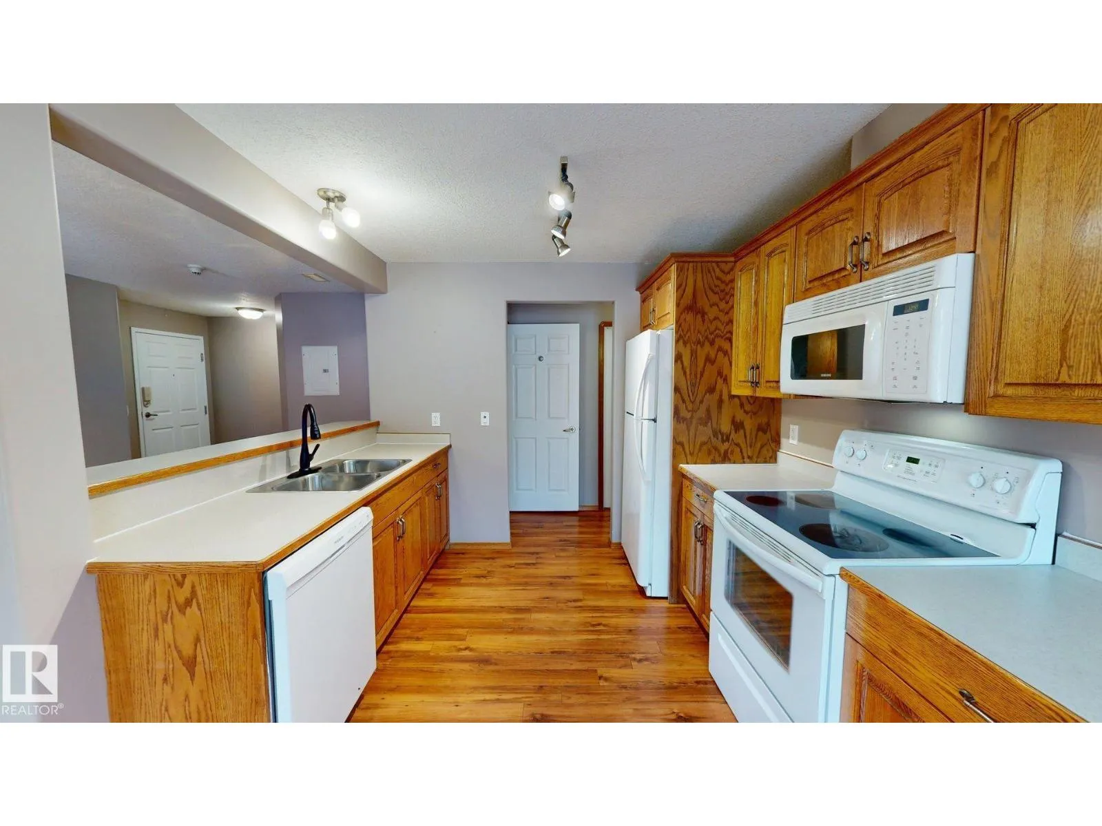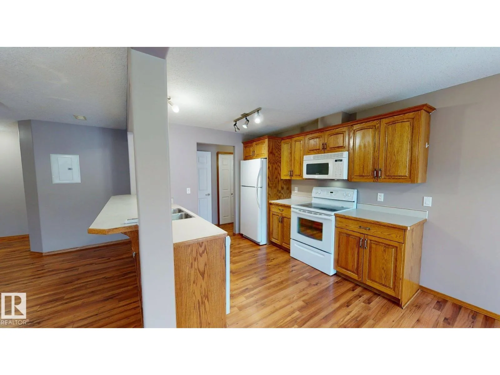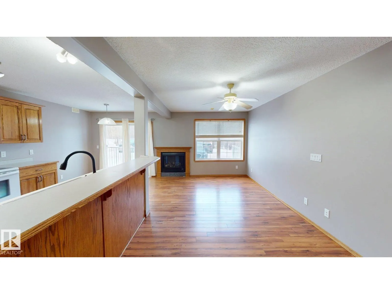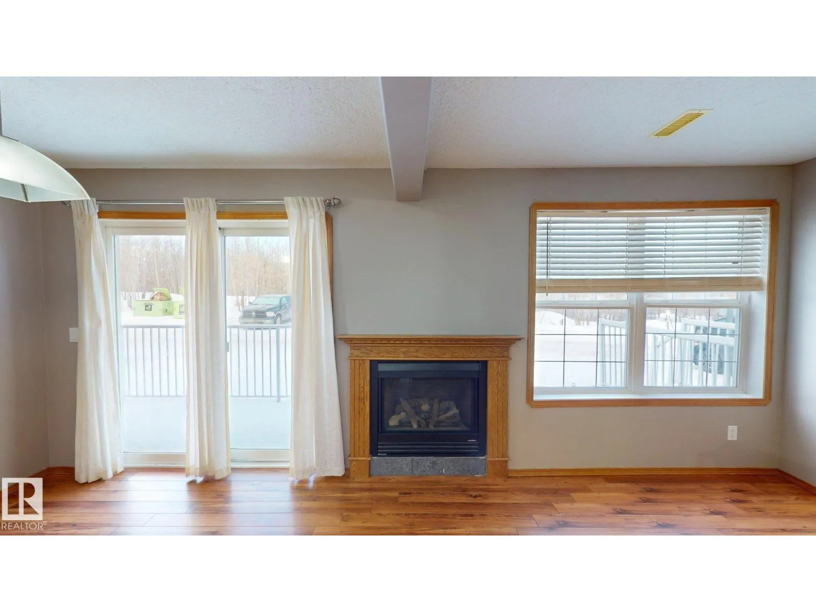 Main floor unit in Rivers condo! Looking for a low maintenance lifestyle with easy access? This is a fantastic opportunity with no stairs and an energized parking stall right outside the door! Inside has been freshly painted and features a bright and spacious floor plan, with 2 bedrooms and a 4 piece bathroom. The kitchen provides an abundance of cabinetry and counter space and over looks the living room that has a natural gas fireplace to keep you warm in the winter. Also off the kitchen are the patio doors leading to the covered deck. Rivers condo is in a great location right across from St. Anthony's school, and just a short walk to Frank Maddock and Powerhouse campus. There are miles of walking trails and is a short drive to all of Drayton Valley's amenities. Monthly condo fee of $559.57 includes exterior Maintenance, heat, parking, professional management, reserve fund contribution, utilities/janitorial/insurance for common areas, water/sewer, land/snow removal. (id:27476)