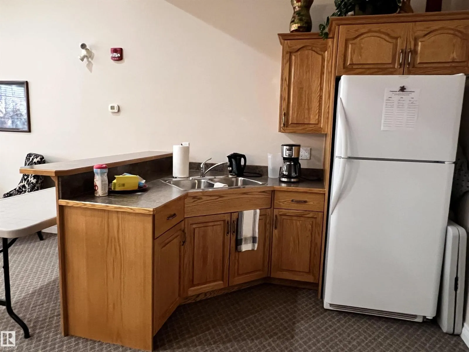 This top floor condo is one of the nicest ones you will find in Regency Terrace. The living room faces north with a balcony & offers a great view. The floor plan is totally open & also has a corner gas fireplace. There is 2 large bedrooms (room for king beds), & 2- 4 pc. bathrooms. The kitchen has a peninsula island, pantry, & lots of cabinet space. There is a large utility room with lots of room & has a stackable washer/dryer. The main floor has a huge gathering area for everyone to use & comes with its own bathroom & kitchen with appliances. There is underground heating with spacious areas to park. There is also outside parking as well. There is chain linked storage rooms with the inside parking stalls as well. You will find that the condo fees of $488.00 are much less in comparisons to all other condo buildings. Age limit is 45. If you have that special pup you can't live without, the condo board will allow a full-grown dog that is 20 lbs. or less. This Very friendly building is waiting for you! (id:27476)