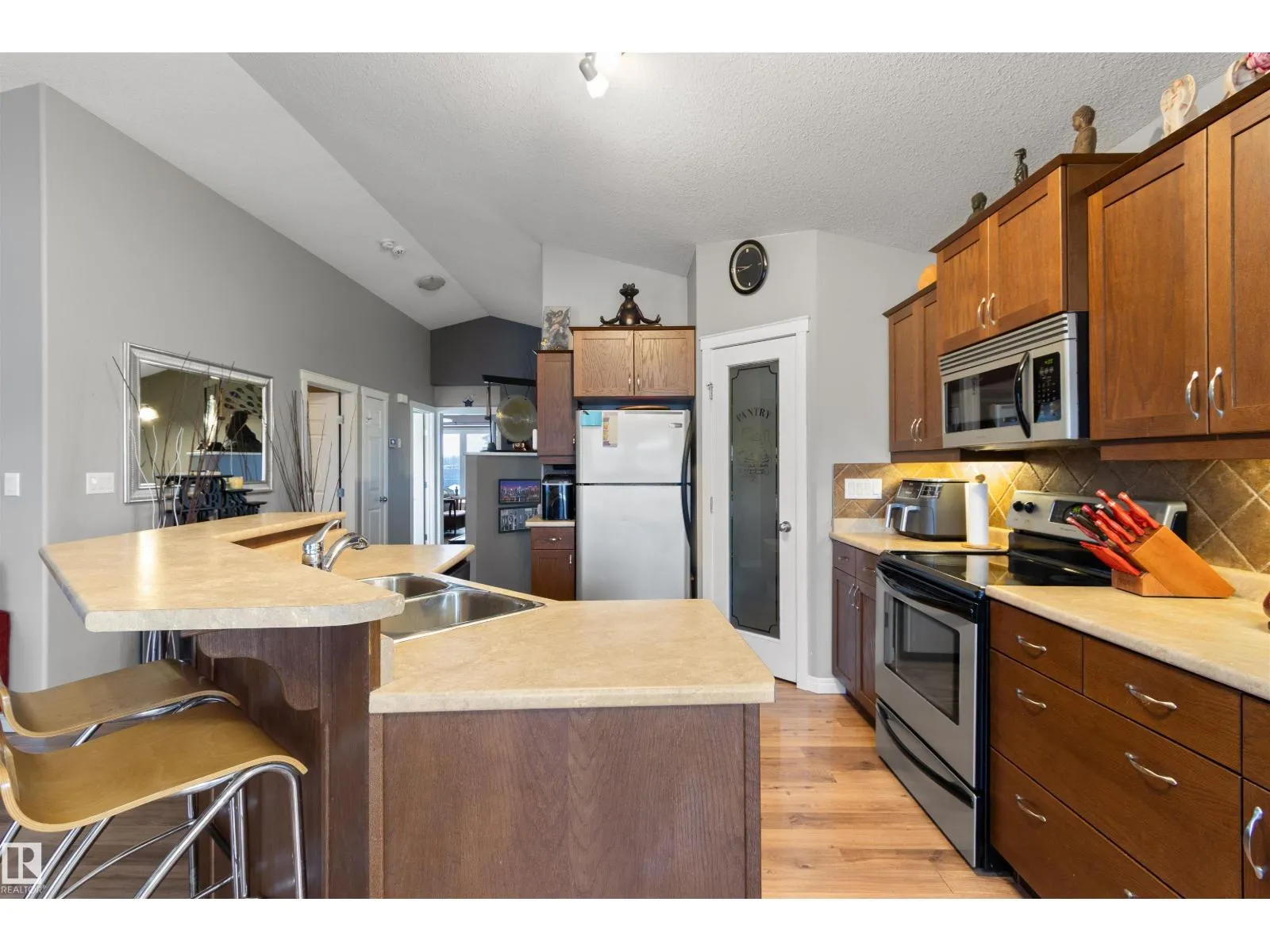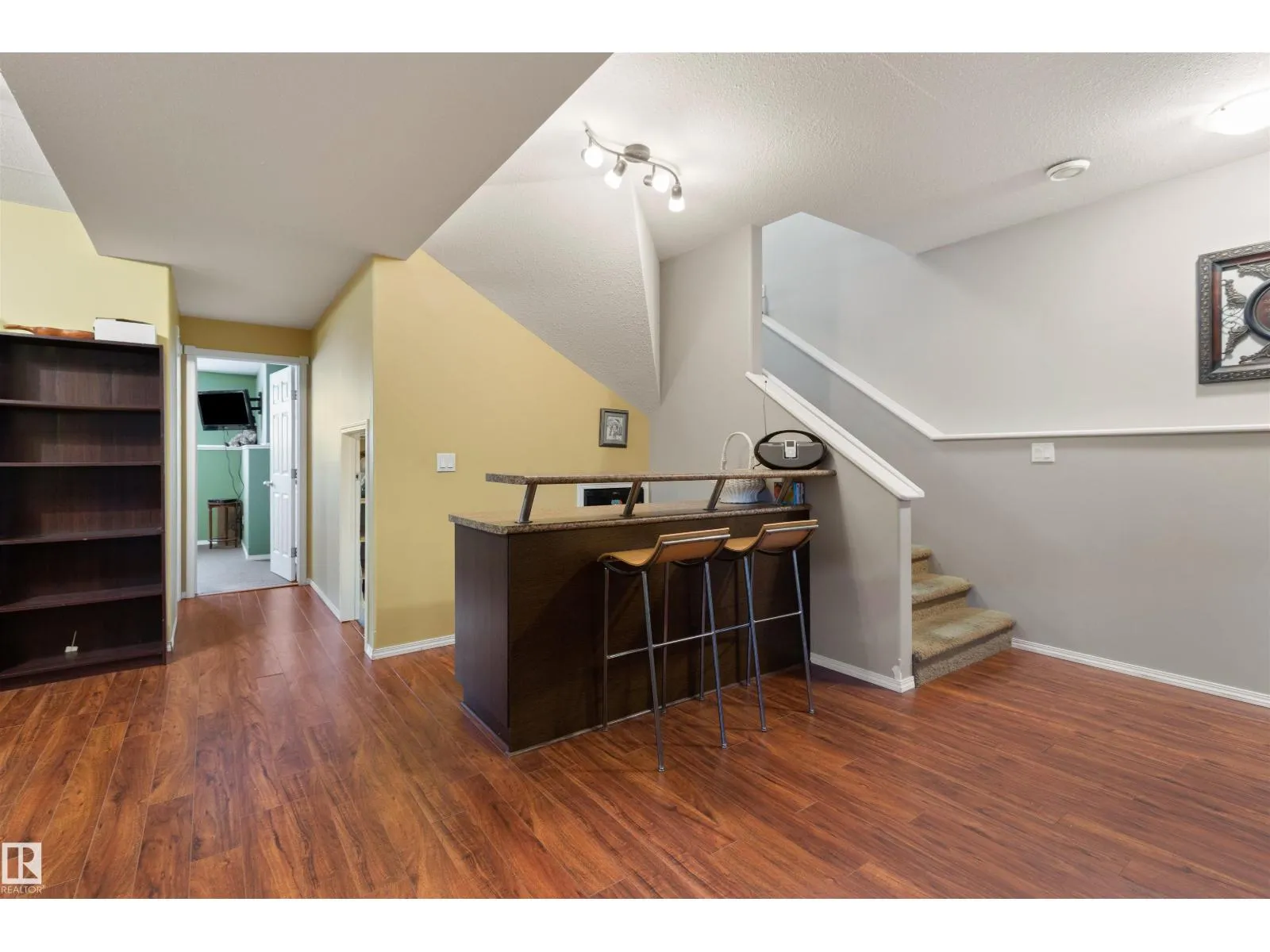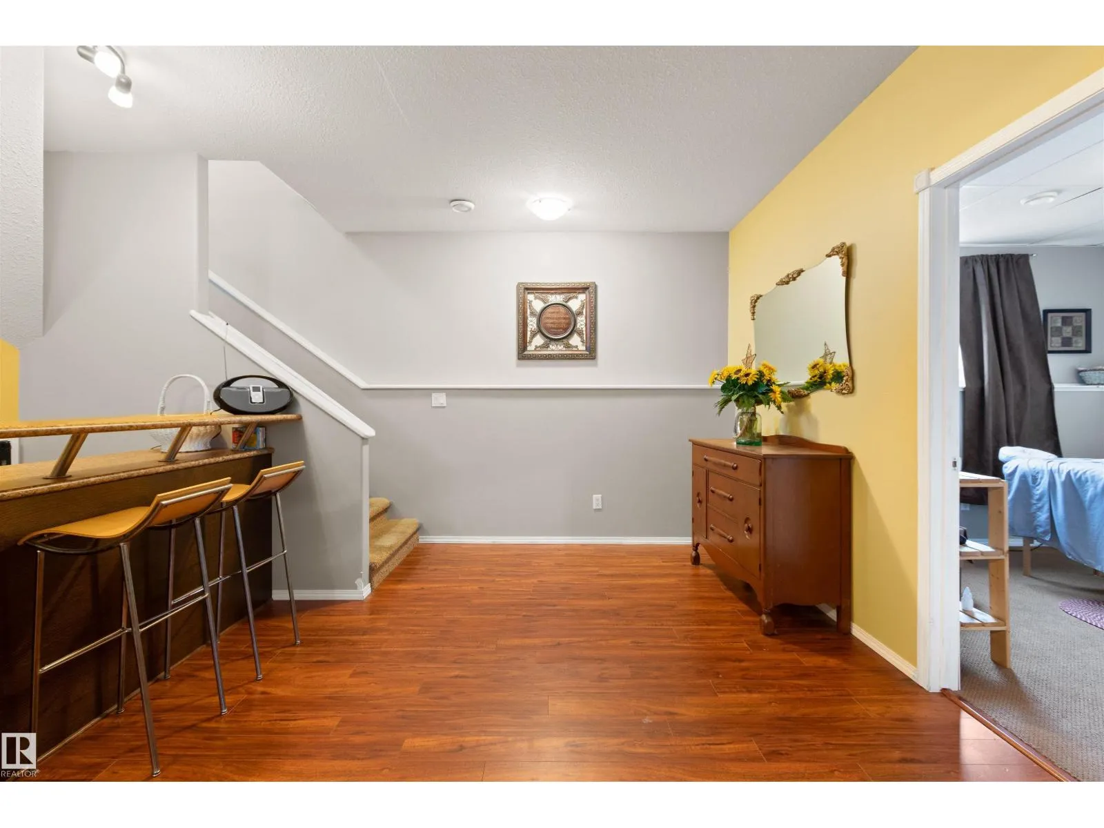 Located in Drayton Valleyâs newest subdivision, Meraw Estates, this beautiful corner-lot home offers 4 bedrooms, 2 full bathrooms, a fully finished basement, and a double detached garage with back-alley access. The location is idealâjust steps from a brand-new school, playgrounds, and walking paths, with shopping, groceries, pharmacies, and more all within easy walking distance. The inviting front entrance features a spacious foyer with vaulted ceilings. Upstairs, youâll find a bright, open-concept layout with a beautiful kitchen offering ample counter and cupboard space, flowing nicely into the large living area and out to the patio/deckâperfect for entertaining. The primary bedroom is generously sized with a walk-in closet and convenient pocket-door access to the main floor 4-piece bathroom. A second bedroom completes the upper level. Downstairs boasts 9â ceilings and a large family room with a dry bar, along with two additional bedrooms, a 3-piece bathroom, and a walk-up door providing backyard access. (id:27476)