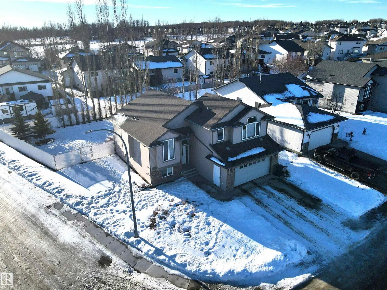Set on a generous corner lot in Aspenview, this 2005 home enjoys a sense of space & privacy! The south-facing back yard is lined by mature trees & enhanced by a right-of-way along the south fence, offering separation from neighboring homes & a more serene outdoor setting. Inside, the main living area is thoughtfully arranged w/ an open, cohesive flow between the kitchen, dining & living spaces. The primary bedroom is positioned on its own upper level just off the main living area, complete w/ an ensuite that creates a private retreat. The main floor also includes an office space, additional bedroom & full bath. The fully developed basement offers a comfortable recreation area boasting a corner gas fireplace, a 3rd bedroom, 3-piece bath & excellent storage. A heated attached double garage adds everyday convenience. Located in the south end of the neighborhood, walking distance to schools nearby, this well-kept property combines comfort, privacy & long-term appeal on a standout lot! (id:27476)