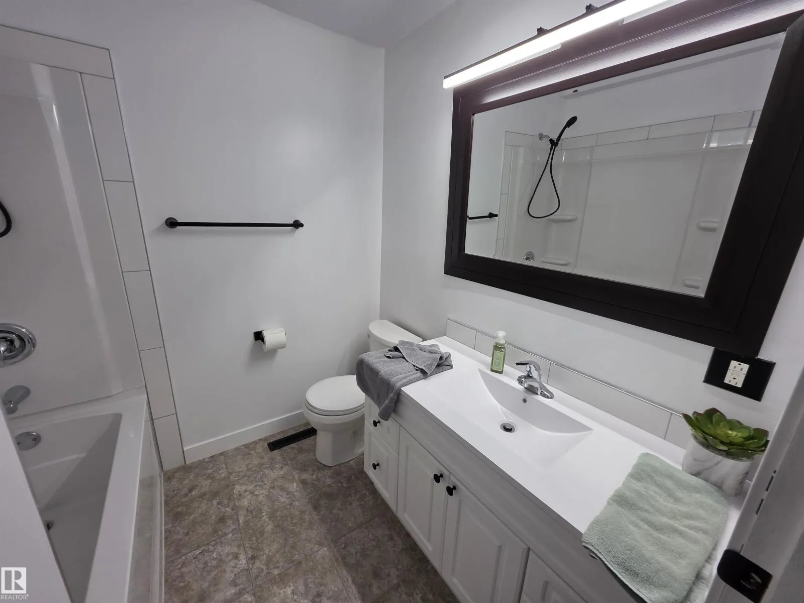 Welcome to this beautifully updated 4-bedroom, 1,200 sq ft bi-level home located on a quiet street in Drayton Valley. Hardwood floors highlight the bright and spacious main living area, and extensive renovations throughout the home, including major bathroom updates along with new flooring and fresh paint in the lower level, provide a clean and move-in ready feel. The functional bi-level design offers excellent separation of space with generous bedroom sizes while the fully finished lower level features a cozy wood burning fireplace that adds warmth and character. Outside, you will find a large back deck overlooking the fully fenced yard, plus the convenience of a single attached garage. (id:27476)