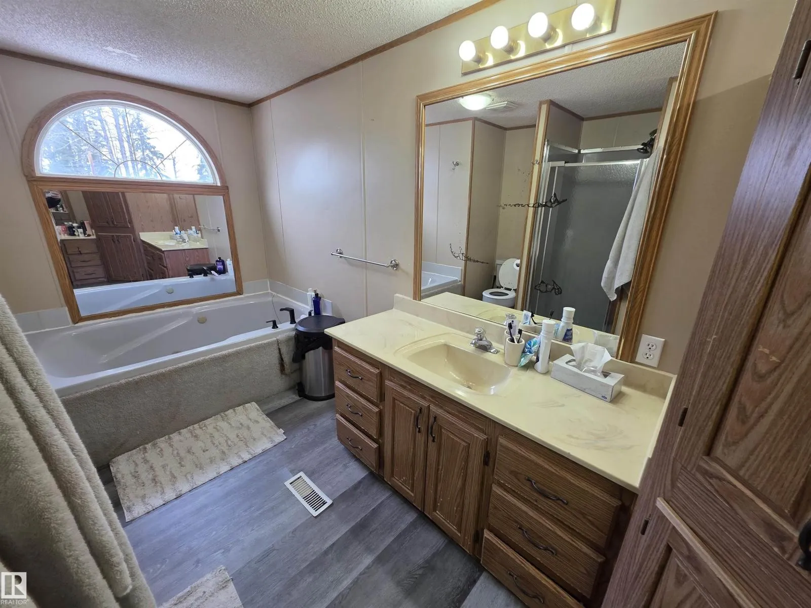 Located in Greenwood MHP, this well kept 3 bedroom, 2 bath mobile home offers comfortable living with a functional layout and thoughtful updates throughout. The spacious primary bedroom features a full ensuite complete with a jetted tub and separate stand up shower. The kitchen offers ample cupboard and cabinet space, with some well suited for use as a pantry. Enjoy a covered back deck perfect for relaxing or entertaining, plus a fully fenced lot offering added privacy. Vinyl windows and attractive flooring enhance the homeâs overall appeal. The property is currently tenant occupied, with a renter who would like to stay, making this a great opportunity for investors seeking immediate rental income. (id:27476)