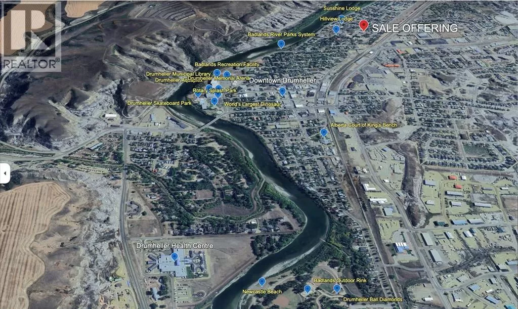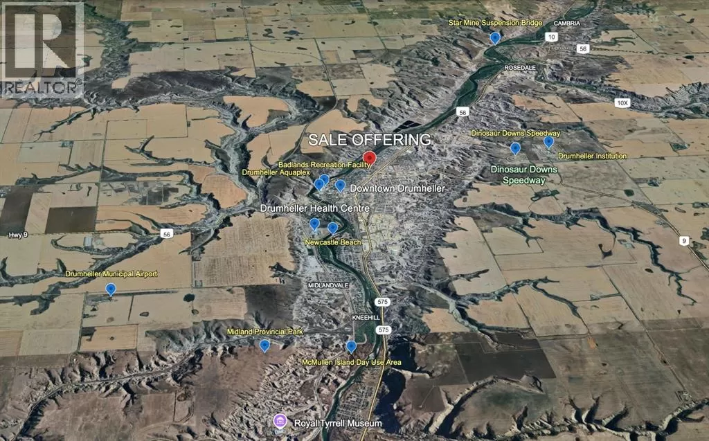 Fantastic opportunity to acquire a rare commercial property with roughly 9,000 square feet of space over three floors in a one-of-a-kind Drumheller location. Occupying a corner lot in one of the townâs most popular riverside residential areas, the property is two blocks from primary traffic routes, a short distance from the downtown district, and immediately across the street from Drumhellerâs two seniorâs lodges. The location creates unparalleled direct access to the residential community and adjacent seniors population - ideal for medical or service related businesses. This is evidenced by the current long-term main floor tenant, an Alberta Government family and community services centre.The tenanted area of the building has been renovated, however the seller delayed renovating the other floors to explore the opportunities that the large 18,600 sq.ft (0.43 acre) lot provides for building expansion or possible conversion to residential use. In addition to the commercial and expansion possibilities, Drumhellerâs acute residential shortage makes this location also ideal for rental apartments or condominium conversion - providing a myriad of options for a savvy investor.Preliminary discussions with the town planning office has shown that there is ample underground capacity for both expansion or conversion, and the town expressed support for discussing both expansion and conversion options.The building itself has been well maintained, and is a walk-up with chair-lift access between floors which helps keep general operational costs down vs. an elevator. With windows replaced 10 years ago, efficient forced air heating systems, upgraded electrical with 400amp service, ample parking, and a host of current and future usage options, this is a remarkable investment you donât want to miss! (id:27476)