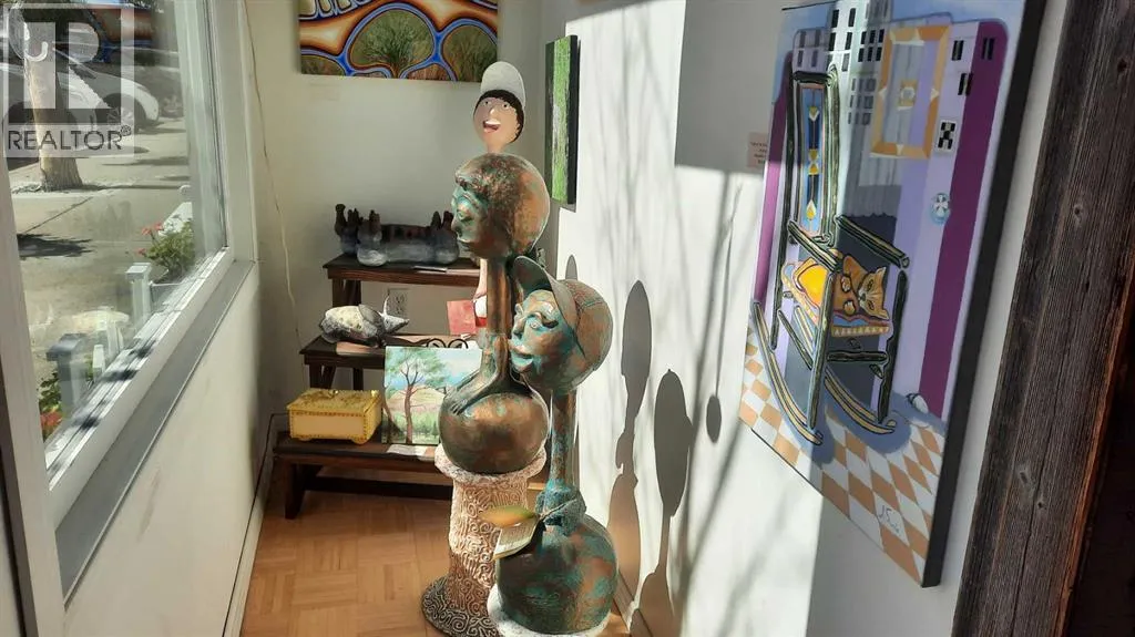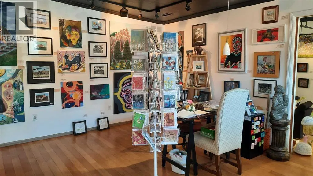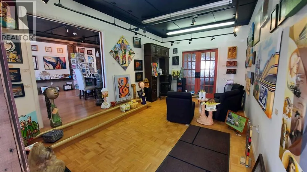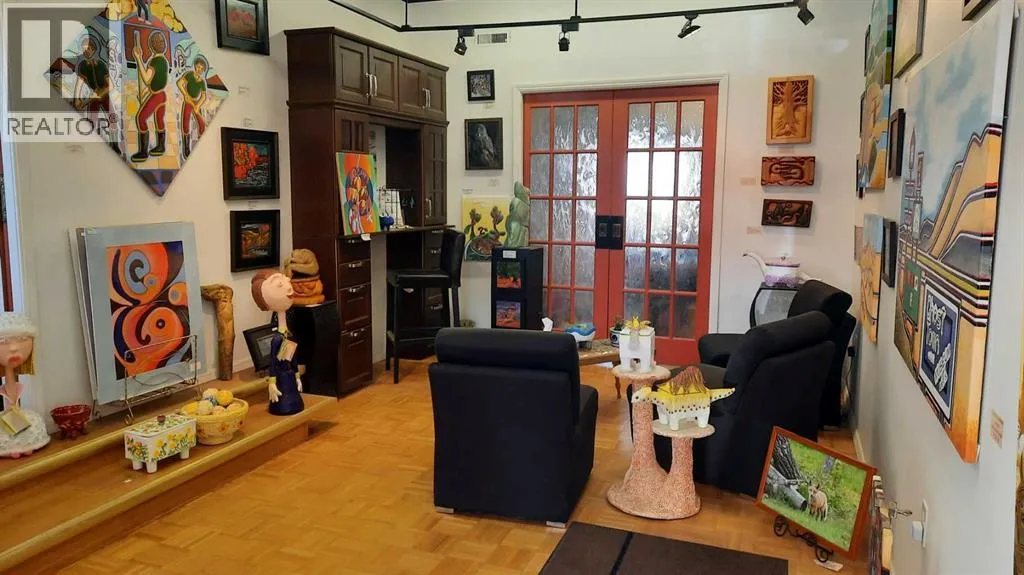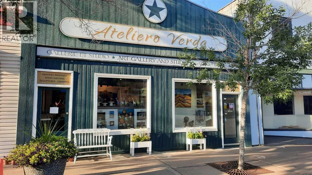 Calling Artists ! Welcome to Ateliero Verda . Gallery and Studio space. Located in Downtown Drumheller. This building has 2 different store front areas, a workspace in the back with sink, and a bathroom, kitchenette and nook for napping or office. There is even parking or future patio area in the Back. Please Note This is a building only Sale. DT Zoning so bring your imagination for the space. To support an active, thriving, mixed-use downtown with high quality public spaces,successful businesses, pedestrian connectivity, and street-level activity. Development is characterized by a larger scale of mixed-use buildings than is possible elsewhere in the Valley. New development enables a diverse streetscape with a strong relationship between buildings and the street. Residential development consists primarily of buildings with multiple dwelling units, and in many cases, ground floor commercial uses. (id:27476)