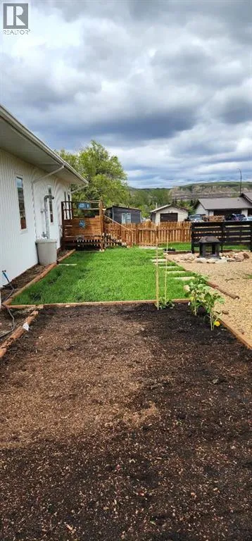 Set on a massive 10,500 sq. ft. estate-style lot in Newcastle, this fully finished bungalow offers rare space, utility, and long-term value in the heart of Drumheller.At approximately 1,840 sq. ft. above grade, this single-level home provides comfortable, functional living with the convenience todayâs buyers are prioritizing, no stairs required. The property features an oversized 22x24 double garage, RV parking with 30-amp hookup, dual driveways, and room for tools, toys, trailers, or a home-based setup.For buyers relocating from larger centres, this is an opportunity to trade density for space, enjoy a ¼-acre residential lot, privacy, and secure storage while remaining minutes from town amenities and tourism landmarks.Inside, recent renovations blend warmth and modern utility. The kitchen features extended custom cabinetry, quartz peninsula workspace, soft-close drawers, ceramic apron-front sink, and updated LG appliances. The living space showcases upgraded finishes, new flooring, fresh paint, and a distinctive wood feature wall.The primary suite includes a whirlpool tub, tiled shower with seating, and double vanity. In total, the home offers 4 bedrooms and 3 bathrooms, providing flexibility for families, guests, or work-from-home needs.Efficiency and durability are standout features:Steel roofing on both home and garage.Rockwool insulation & R60 attic insulation.Pellet stove heating up to 2,000 sq. ft.New electrical panel & wiring.Heated, insulated crawlspace.New doors & windows.Outdoor living is equally impressive with multiple deck areas, an 18x27 patio with fire pit, gazebo lounge space, established apple trees and berry bushes, and a fully fenced yard designed for low maintenance.Backing near the world-recognized Passion Play site and just minutes to trails, parks, live theatre, and the Royal Tyrrell Museum, this property blends lifestyle, land value, and long-term usability.For buyers seeking lot size, garage capacity, and functional space at a price point rarely found in larger centres, this is a compelling opportunity.Book your private viewing today. (id:27476)