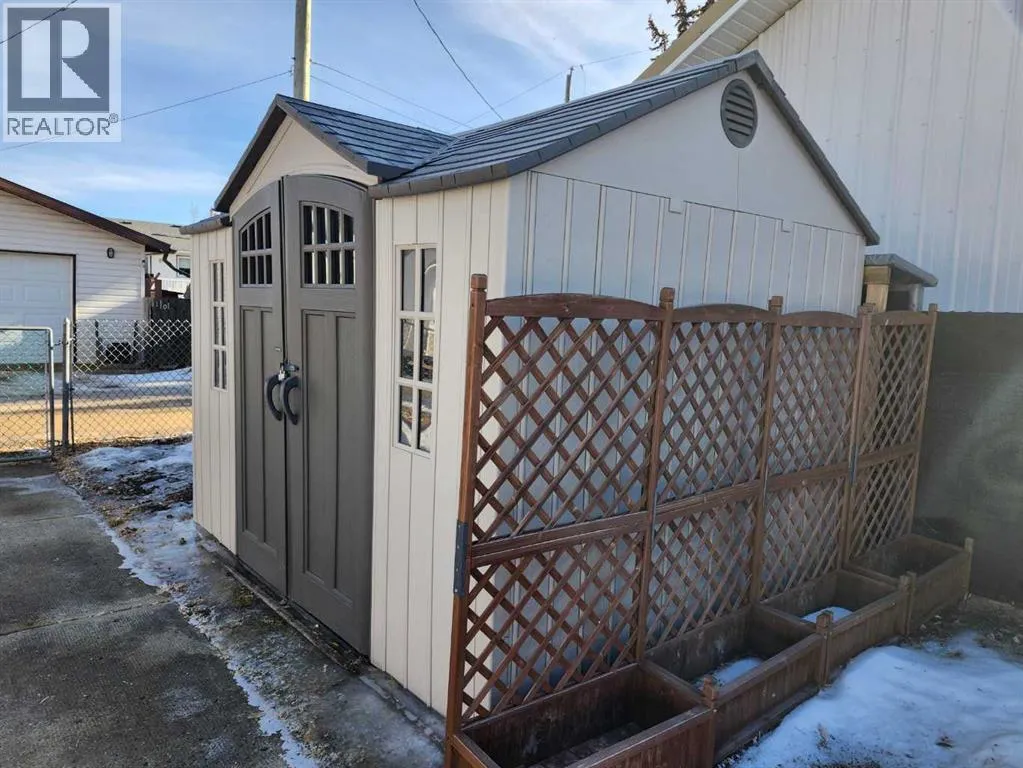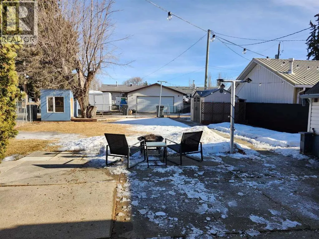 Located in Midland close to walking paths, the Red Deer River, Community Hall, playground and New Rink. Short Drive or bike to Hospital, Museum, and Golf Course. This Bungalow Offers living room with wood burning fireplace and hardwood floors. 3 spacious bedrooms on the main floor and a 4pc bathroom. Large eat in kitchen with loads of West facing light. Front patio access for morning coffee or sunset evenings. Basement features vintage rec room, amazing storage, 4th bedroom, 3pc bathroom, laundry with sink and cabinetry that could convert to kitchenette should you find yourself in with a roommate. Outside the fenced backyard has a concrete patio, 2 sheds, fire pit, 7pc patio set and an attached greenhouse. House has a Metal roof, Central Air and is move in ready. Quick Possession Available ! (id:27476)