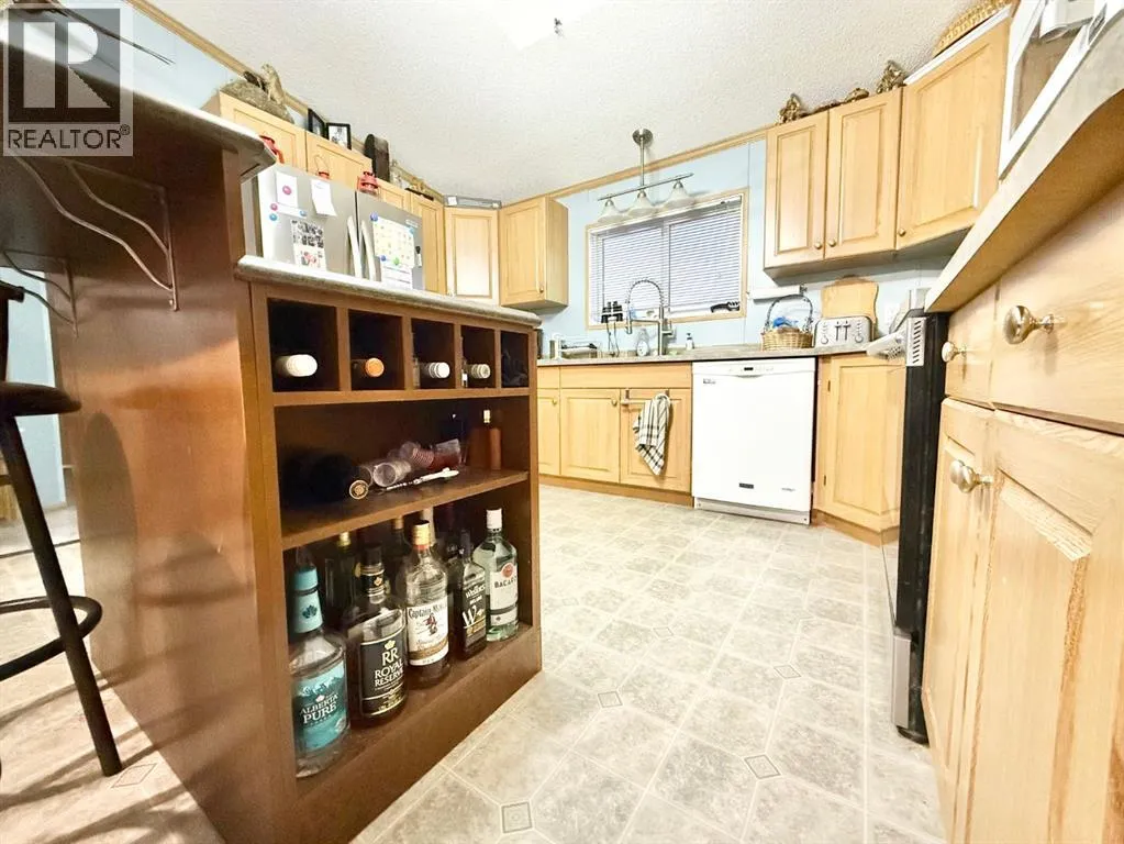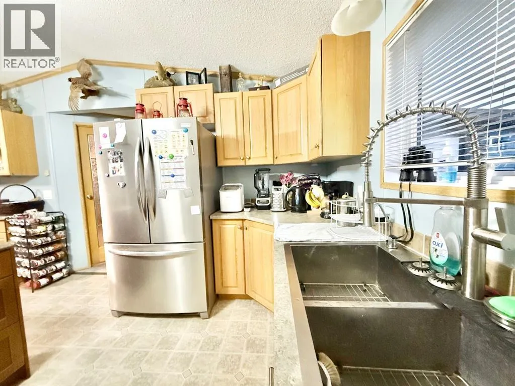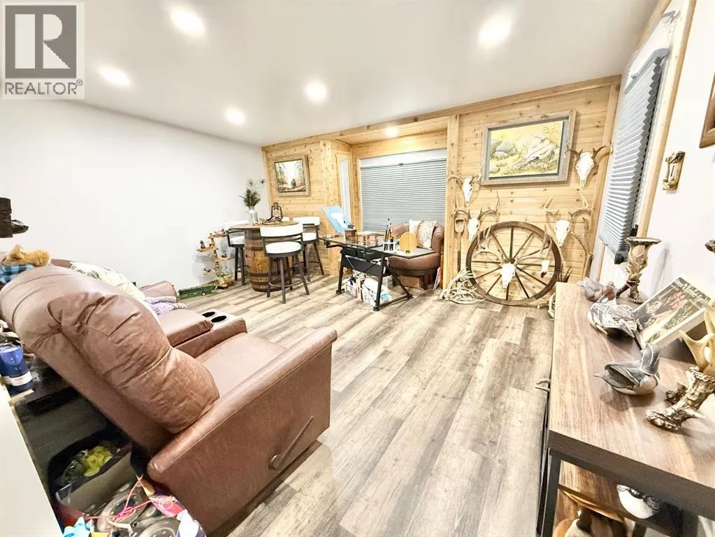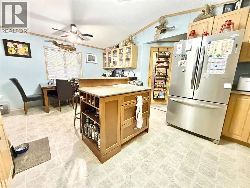 Welcome to this spacious and beautifully updated 20x76 mobile home with a 16x12 bonus room addition boasting cedar accent wall and commercial grade vinyl plank flooring, offering a versatile space that could easily serve as a fifth bedroom, office, or family room. Featuring 4 bedrooms and 2 bathrooms (one brand new toilet and valve), this home offers an open-concept layout with a bright kitchen showcasing an island, plenty of cabinets and counter space, and built-in storage and display units in the dining area. The flooring and lighting have been tastefully updated, giving the space a fresh, modern feel. The sellers have spared no expense updating the exterior of the home making major improvements in recent years including new shingles, new siding, soffit, fascia, 5" continuous eavestrough, new metal skirting, some new windows and doors. A matching 8x6 shed and 12x20 garage were both built and delivered locally by Norsemann, adding quality function and style to the property. Inside this smoke free home, a brand new furnace adds peace of mind to the warmth and comfort of the home. Situated on rented land at just $350/month in Duchessâs quietest park, this home offers stunning north-facing field views where you can often spot local wildlife. Surrounded by friendly neighbours and small-town charm, youâll also enjoy convenient access to nearby amenities including a Kâ12 school, arena, recreation centre, curling rink, and walking paths. Offering comfort, updates, and peaceful views, this property is an excellent place to call home. (id:27476)