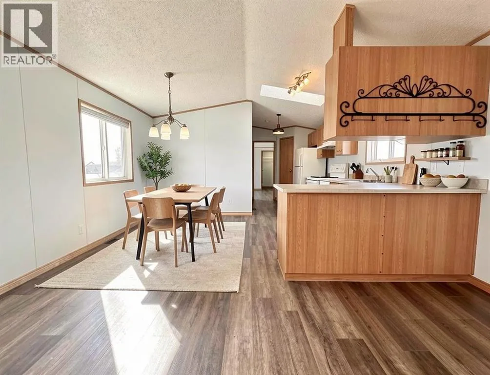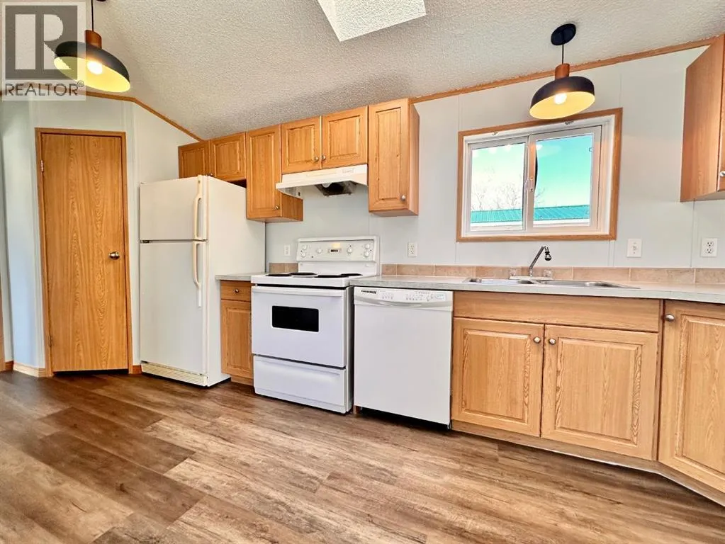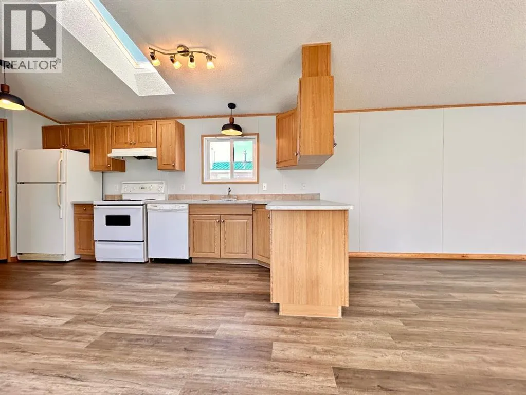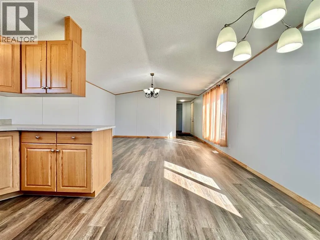 Fresh updates and move in ready convenience make this 2003 modular home in Duchess a great opportunity for buyers looking for affordable, low maintenance living.Step inside to a bright open concept layout where recent renovations have given the home a modern refresh. New vinyl plank flooring runs throughout the entire home, complemented by fresh paint, new baseboards, and several updated light fixtures that create a clean, contemporary feel.The functional floor plan includes 3 bedrooms and 2 full bathrooms, providing comfortable space for families, roommates, or those needing a home office. The primary bedroom features a walk-in closet and private 4pce ensuite, offering a quiet retreat at the end of the day. Both bathrooms will also have new windows installed prior to possession, adding extra value and peace of mind.The kitchen flows nicely into the living and dining areas and comes equipped with a walk-in pantry, refrigerator, stove and dishwasher. Steps away is the laundry area housing the front-load washer and dryer with room for your future deep freeze.Additional features include a hot water tank replaced in May 2018, new chimney installed, an off-street gravel parking pad, and a storage shed for tools and seasonal items.Situated on rented land with lot fees of $350 per month, this property offers an affordable option in a friendly community setting.Ready for quick possession, this updated home is the one youâve been waiting for. (id:27476)