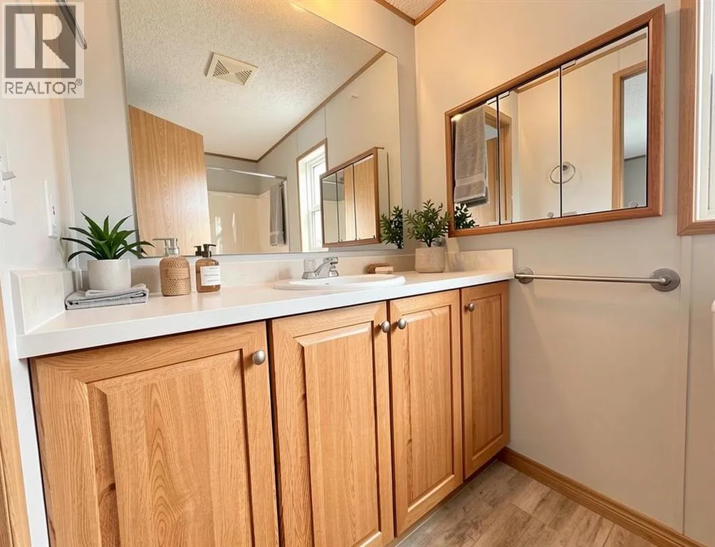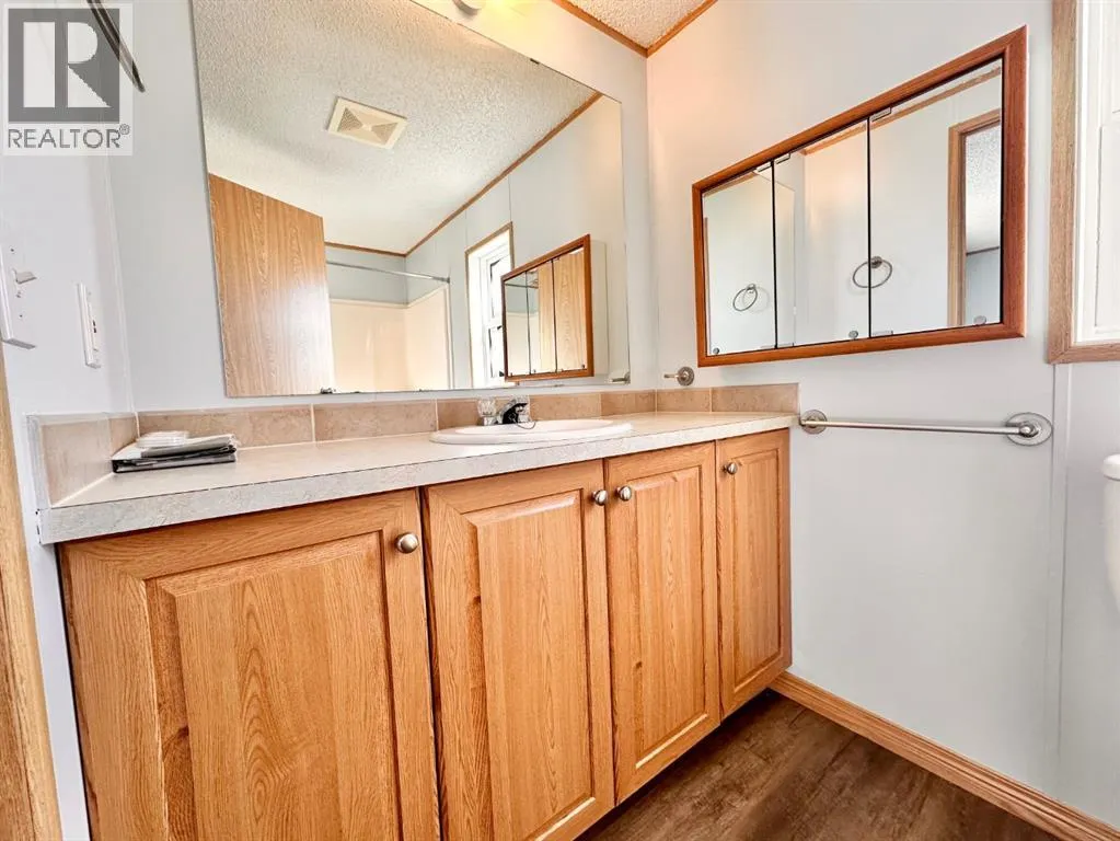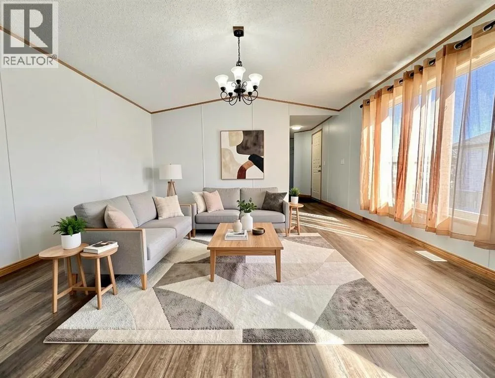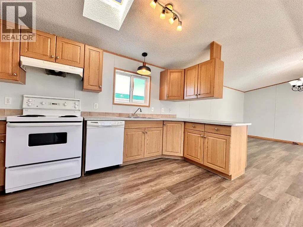 Fresh updates and move in ready convenience make this 2003 modular home in Duchess a great opportunity for buyers looking for affordable, low maintenance living.Step inside to a bright open concept layout where recent renovations have given the home a modern refresh. New vinyl plank flooring runs throughout the entire home, complemented by fresh paint, new baseboards, and several updated light fixtures that create a clean, contemporary feel.The functional floor plan includes 3 bedrooms and 2 full bathrooms, providing comfortable space for families, roommates, or those needing a home office. The primary bedroom features a walk-in closet and private 4pce ensuite, offering a quiet retreat at the end of the day. Both bathrooms will also have new windows installed prior to possession, adding extra value and peace of mind.The kitchen flows nicely into the living and dining areas and comes equipped with a walk-in pantry, refrigerator, stove and dishwasher. Steps away is the laundry area housing the front-load washer and dryer with room for your future deep freeze.Additional features include a hot water tank replaced in May 2018, new chimney installed, an off-street gravel parking pad, and a storage shed for tools and seasonal items.Situated on rented land with lot fees of $350 per month, this property offers an affordable option in a friendly community setting.Ready for quick possession, this updated home is the one youâve been waiting for. (id:27476)
