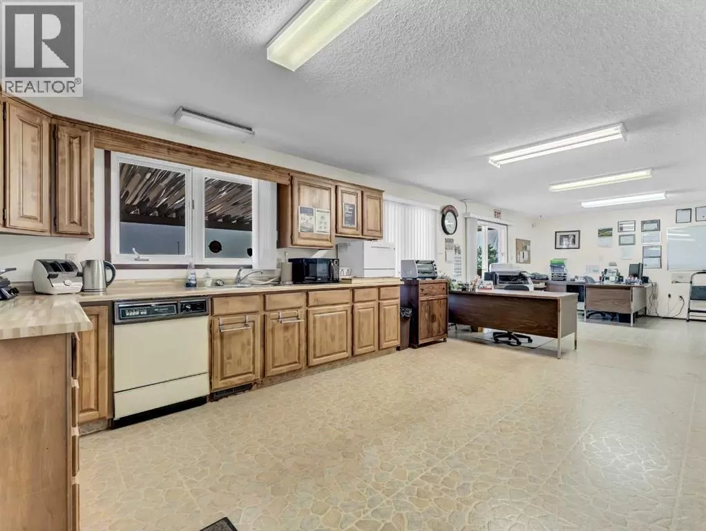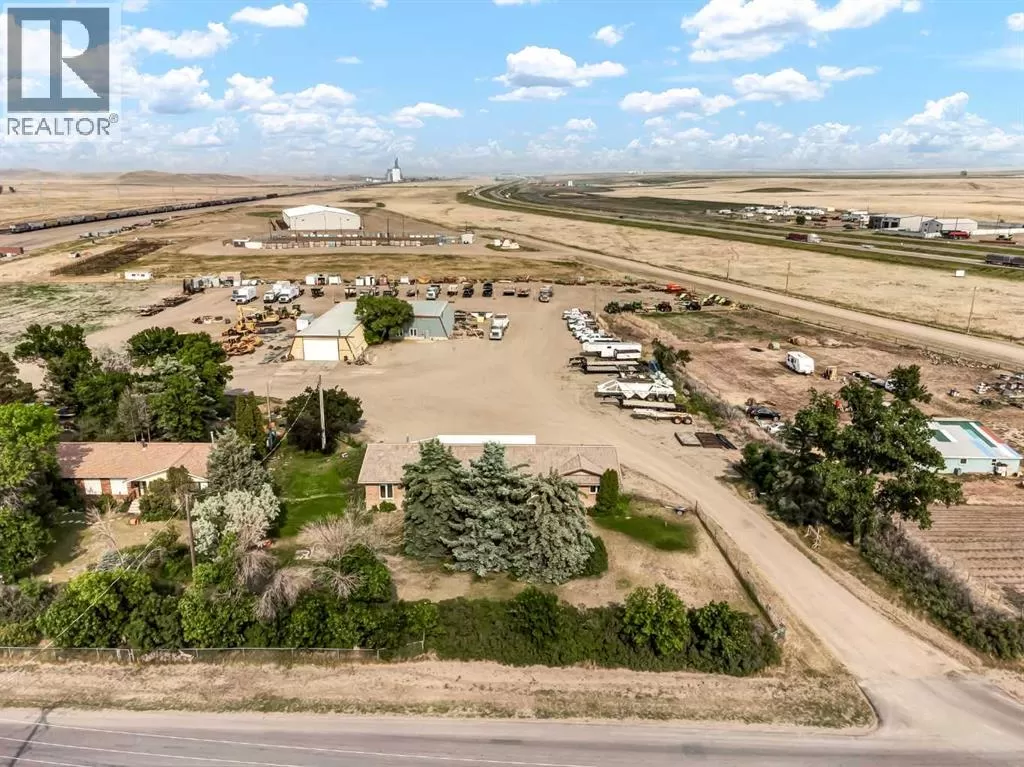 Commercial Opportunity in Dunmore Alberta. Located just off the Trans-Canada Highway in Dunmore, this versatile commercial property offers excellent visibility, easy highway access, and a functional setup thatâs ideal for a wide variety of business operations. The main building is a 2,358 sq. ft. Nelson-built home (1981) currently used as office space. Designed with durability and functionality in mind, it features a tiled roof, brick and metal exterior, and includes: 3 private offices, 3 bathrooms, Large boardroom, Full basement that is wide open and perfect for secure file storage, classroom-style training, or future development. The property is serviced by two septic tanks, this property is designed for operational efficiency. At the rear of the lot, youâll find two commercial shops connected by an enclosed walkway: Shop 1: 39 ft x 59 ft, with a concrete floor, electric overhead door, enclosed office, 2-piece bathroom, and make-up air unit. Shop 2: 39 ft x 120 ft, concrete floor with electric overhead doors on both ends, providing excellent drive-through capability, and equipped with a make-up air unit. The yard is expansive, offering ample space for equipment parking, material storage, or future expansion. The eastern property line is approximately 15â20 feet beyond the shops, allowing for even more usable space. This is a rare opportunity to acquire a highly functional, highway-accessible property with excellent infrastructureâjust minutes from Medicine Hat. (id:27476)
