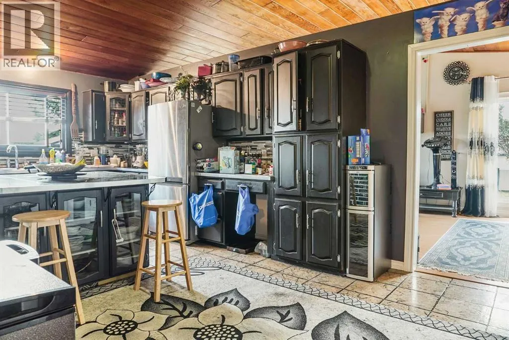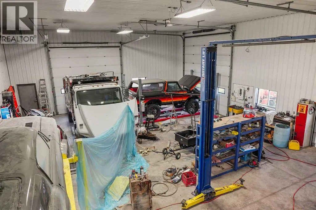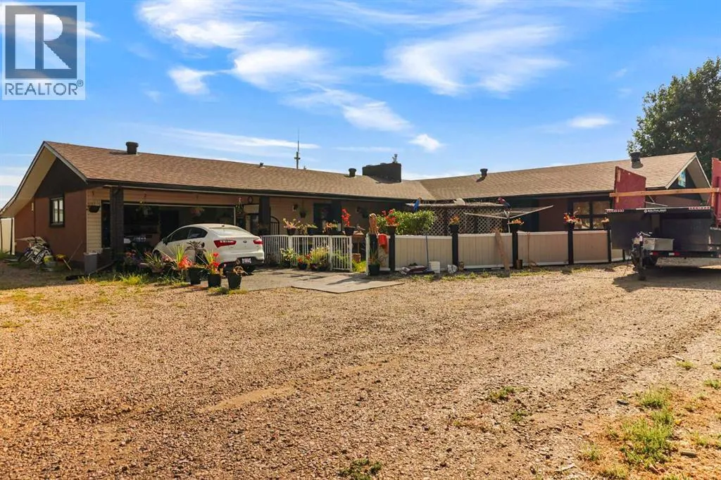 Discover this rare 1.63-acre property in Dunmore, offering endless possibilities. The property features a spacious bungalow with an attached 27x22 heated garage and plenty of room to grow.Inside the home, youâll find, 4 bedrooms all on the main level, 2 full bathrooms + 1 half bath. Two living areas â one in a sunken setting with a cozy wood-burning fireplace, the other open to the dining area, perfect for entertaining. A bright kitchen with an island, vaulted cedar-lined ceilings, and ample cabinetry for storage. Convenient main floor laundry. A unique hot tub room finishing off the upper level.The lower level adds even more living space with a family room, den, utility room, and access to the mechanicals of the hot tub room.Beyond the home, the property boasts impressive outbuildings: 40x60 heated shop with three 16 ft garage doors, 16x16 powered shed, 40x30 canvas shop, 8x28 shed, 24x24 detached heated garage.This acreage is ideal for someone wanting to run a business, mechanics needing shop space, or buyers looking to generate rental revenue from the outbuildings. The property uses Town water and Town Septic.With so many options and such a versatile setup, this property could be the perfect fit for your next move! (id:27476)
