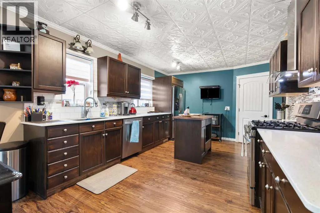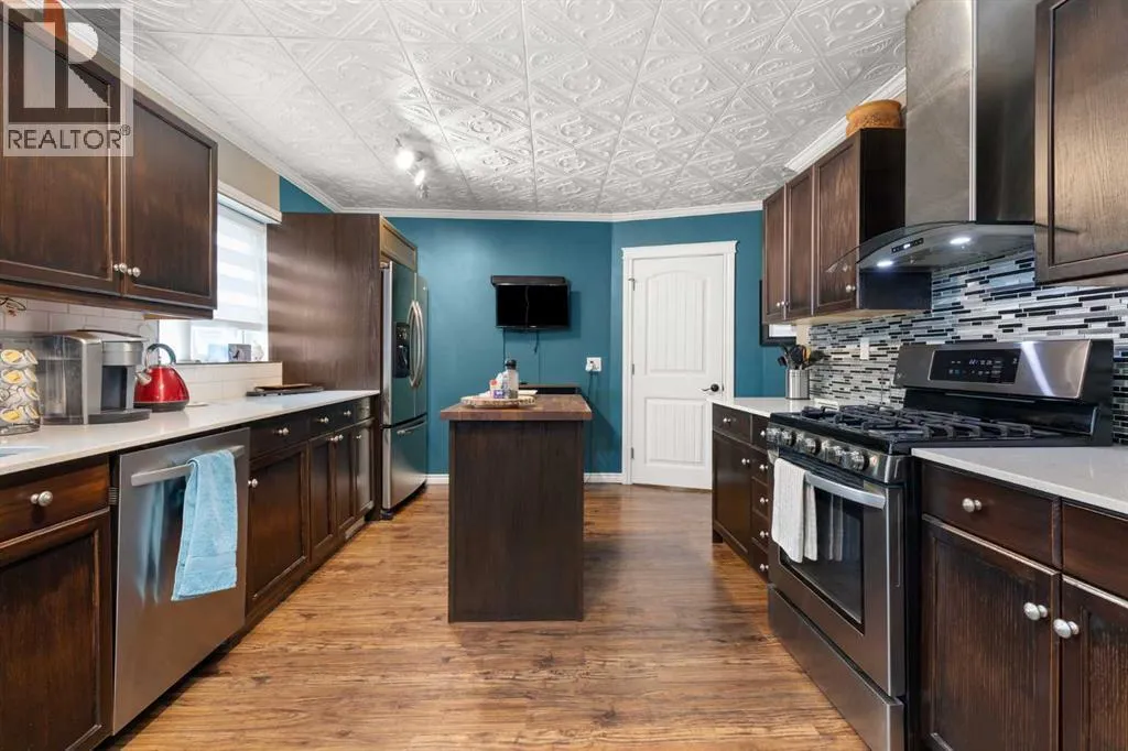 Rare opportunity to own a beautifully updated bungalow tucked away in a quiet and private location in Dunmore, set on a sprawling 0.5 acre lot offering the perfect blend of space, functionality, and lifestyle. The main floor features a bright open concept layout with the living room at the front of the home, highlighted by a wood burning fireplace with a custom stone mantel, flowing seamlessly into the dining area and renovated kitchen complete with quartz countertops, updated finishes, fresh paint, and new baseboards. The kitchen is ideal for entertaining with ample prep space and storage, plus a versatile room just off the kitchen that could serve as a large pantry, additional storage area, or small office space. Beyond the kitchen youâll find a private primary bedroom wing â the only bedroom on the main floor â offering excellent separation and comfort. This spacious retreat includes a walk-in closet, laundry room, full 4-piece ensuite bathroom, and private patio doors leading directly to the deck, creating a true indoor-outdoor connection. Downstairs, the fully developed basement provides two additional bedrooms, a spacious family room, a dedicated workout area that could easily be converted into a third basement bedroom if desired, and a 4-piece bathroom with heated floors, adding a touch of everyday luxury. Outside, the backyard truly shines as a private oasis with a large patio area, outdoor kitchenette, underground sprinklers, and ample space to host family and friends. For those needing serious shop space, this property delivers with a massive 32x36 detached shop that is fully finished and heated, along with an additional 20x22 structure that was previously a garage and now sits on a dirt pad, offering excellent storage or the potential to be converted back into a functional shop with some work. This is a standout property offering quiet acreage-style living with exceptional shop space just minutes from the city. (id:27476)