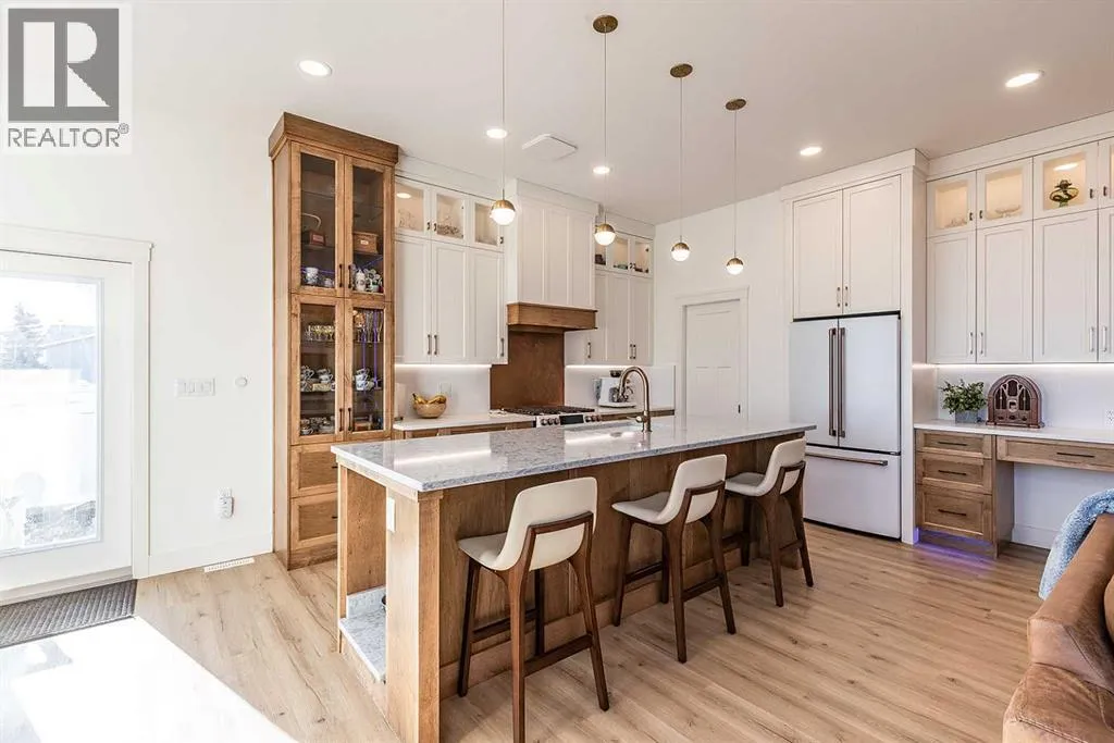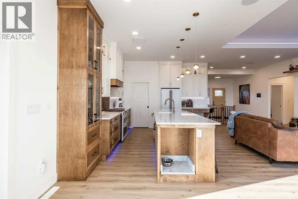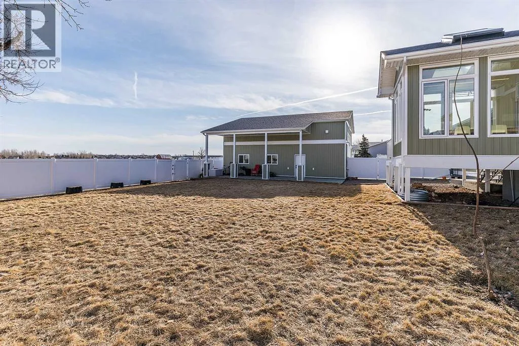 Welcome to this stunning 2022-built bungalow in the heart of Dunmore, where modern luxury meets small-town charm. Offering 1,541 sqft above grade plus a fully developed basement, this 2+2 bedroom home plus fitness room was thoughtfully designed with comfort, function, and style in mind. From the moment you arrive, the curb appeal is undeniable: beautiful exterior finishes, a triple attached garage (36 x 29), expansive driveway, RV parking with plug, and a 30x40 shop with in-floor heat, oversized door, and future hanging shelving support. Step inside the house and youâre greeted by a bright, open, and welcoming interior with tall ceilings and durable vinyl plank flooring throughout. The living room is a true showpiece, featuring a tray ceiling with inset lighting, custom built-ins with floating shelves, decorative wood detailing, and a striking wood-burning fireplace that adds warmth and character. Large windows flood the space with natural light. The custom kitchen is equally impressive featuring ceiling-height cabinetry with upper lighting, a contrasting maple island with seating, stunning copper backsplash, and high-end Café appliances including a gas stove. The spacious dining area is surrounded by windows and enhanced by vaulted ceilings and skylights, creating an airy, light-filled atmosphere with direct access to the back deck. A walk-through butlerâs pantry provides exceptional storage and prep space, seamlessly connecting to the laundry/mudroom complete with built-in cabinetry and sink. The primary suite offers a peaceful retreat with a walk-in closet and beautiful 3 pc ensuite. A second bedroom and full 4 pc bathroom complete the main floor. Downstairs, the fully developed basement remains bright and spacious with a large rec room, dedicated fitness area, and two additional bedrooms. One bedroom features stunning built-in shelving with under-cabinet lighting â perfect for a plant enthusiast or curated display space. The oversized triple garage is a standout feature, complete with a convenient dog wash station and ample room for vehicles, toys, and hobbies. A gas line for your BBQ and an additional line for a fire table make outdoor entertaining effortless. The yard is expansive, landscaped, and primarily grassed, offering a clean, open feel with endless potential for future customization while remaining fully finished and move-in ready. The covered patio off the shop adds yet another inviting outdoor space. The property is also equipped with 200-amp service, hot tub wiring, two exterior hot water bibs, Gemstone lighting on both the house and shop, and a well that can be used for irrigation. Located in the quiet, family-friendly community of Dunmore, youâll love the larger lots, peaceful surroundings, and welcoming small-town atmosphere, all just minutes from city conveniences. This is a truly exceptional property offering space, quality craftsmanship, and incredible value. (id:27476)