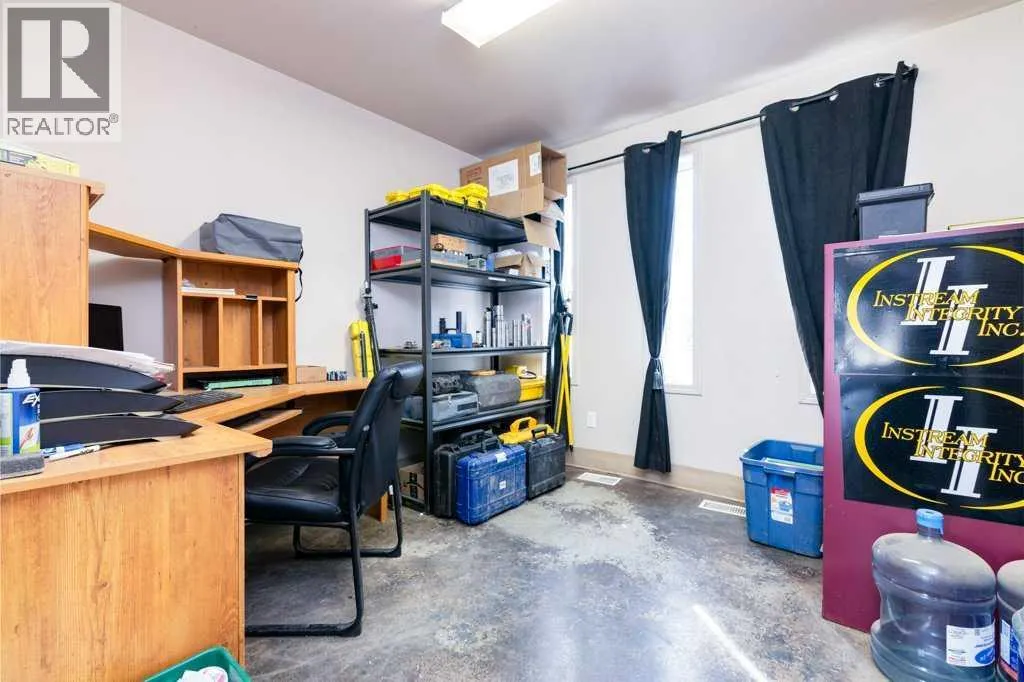 Calling all small business owners! Here's a great opportunity in Eckville for a commercial shop and office space with a fenced yard and parking area. The 2009 building features a 32 x 40' shop, with a 16' overhead door and radiant heat, front reception area and one office on the main floor plus two additional offices on the second level, accessible from both the front area and the shop side. The overhead hoist, pressure washer and air compressor are included and office furniture is negotiable. The almost mirror image of this property is also available, mls A2211262 on a separate title. If you need a little more space consider buying both! Owner will also consider leasing. (id:27476)