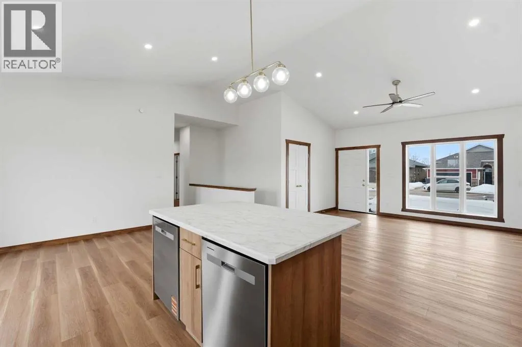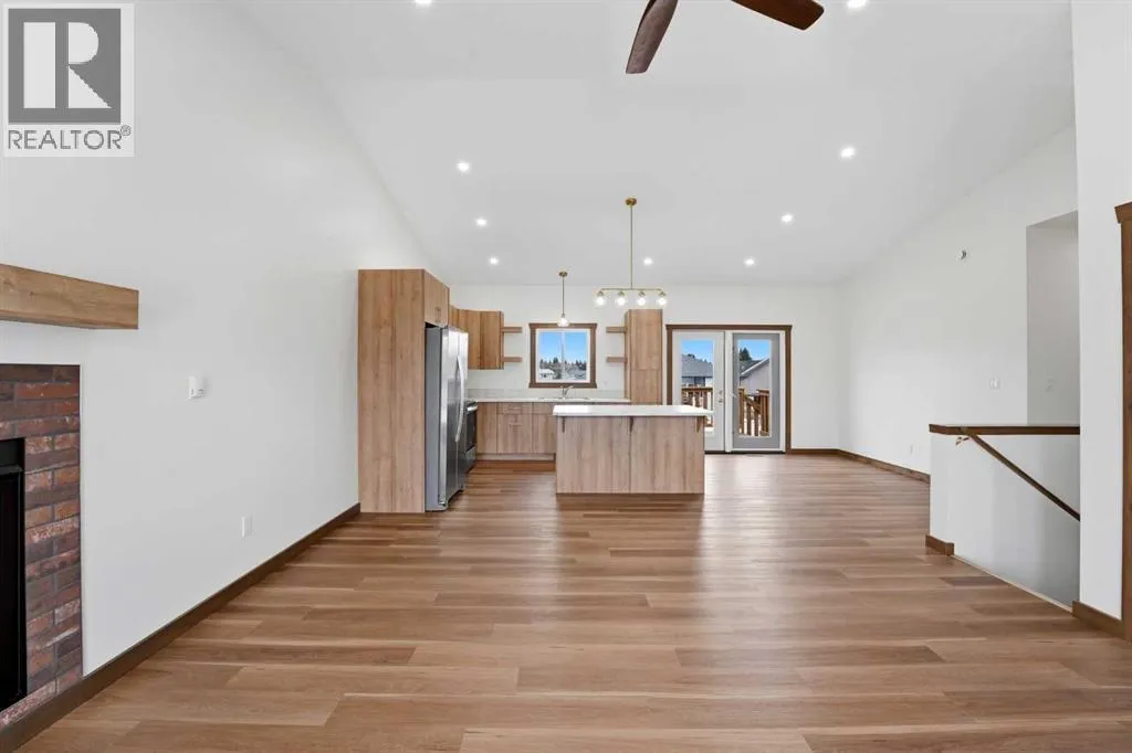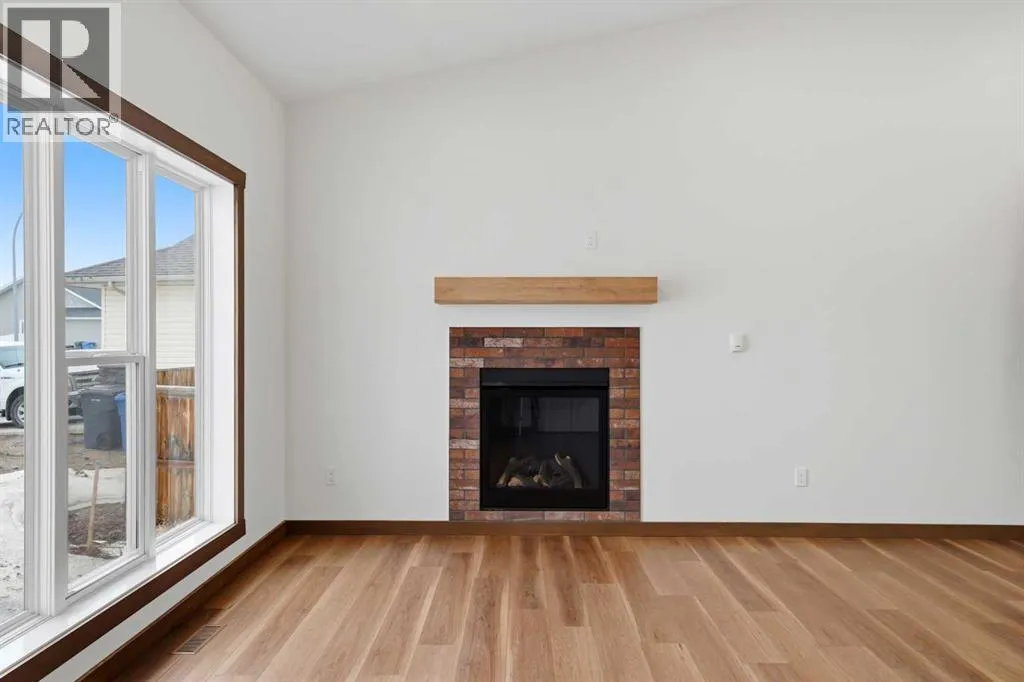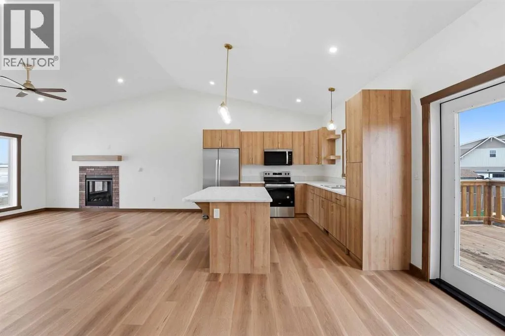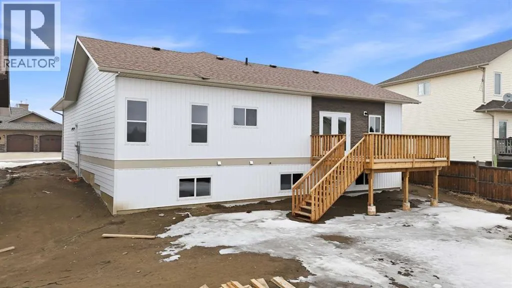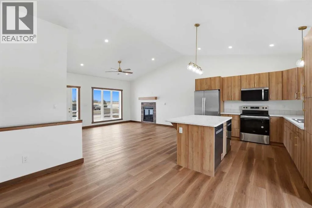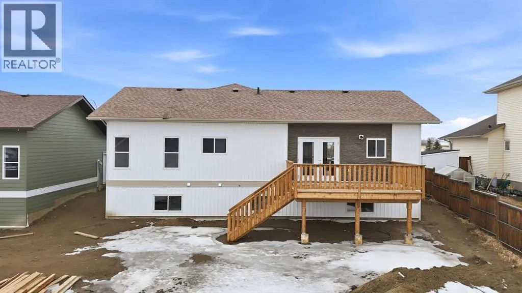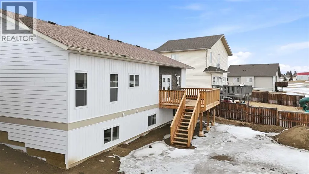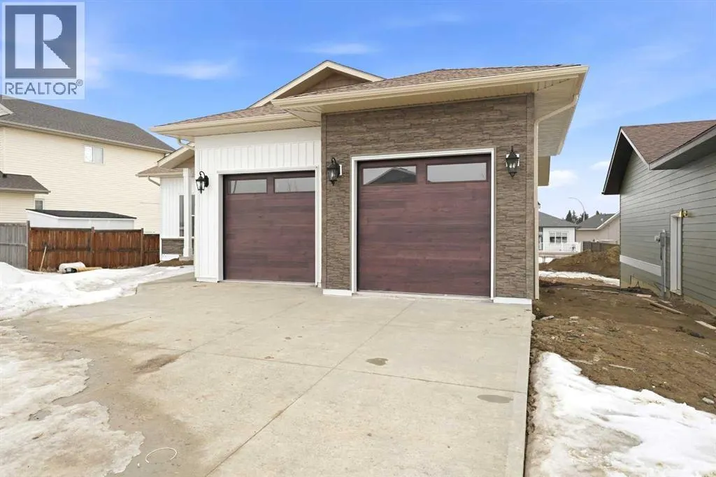 Welcome to this beautiful brand-new bungalow by Larchwood Homes, built this year and perfectly located on the outskirts of town in the charming community of Eckville - just 15 minutes from Sylvan Lake and half hour from Red Deer. From the moment you arrive, youâll be impressed by the stunning curb appeal and double attached garage. Step inside to a bright and inviting main floor featuring vaulted ceilings, modern light fixtures, a cozy gas fireplace, and patio doors leading to the massive backyardâperfect for entertaining or enjoying peaceful outdoor space. The kitchen offers beautiful laminate countertops, a large island, modern oak cabinetry and even two dishwashers, making it an ideal setup for busy families or those who love to host. Venture down the hall and youâll find two good-sized bedrooms and a full 4-piece bathroom with storage. The laundry is conveniently located in the boot room, complete with a spacious coat closet and direct access to the garage. The garage features soaring ceilings and is roughed-in for in-floor heat. The primary bedroom retreat offers a massive walk-in closet and a private 4-piece ensuite, providing a comfortable and functional space to unwind. The unfinished basement is ready for your future development, featuring large windows, roughed in for in floor heat, and a bright, open layout that doesnât feel like a typical basement. Donât waitâthis beautiful new home could be the perfect fit for you! (id:27476)