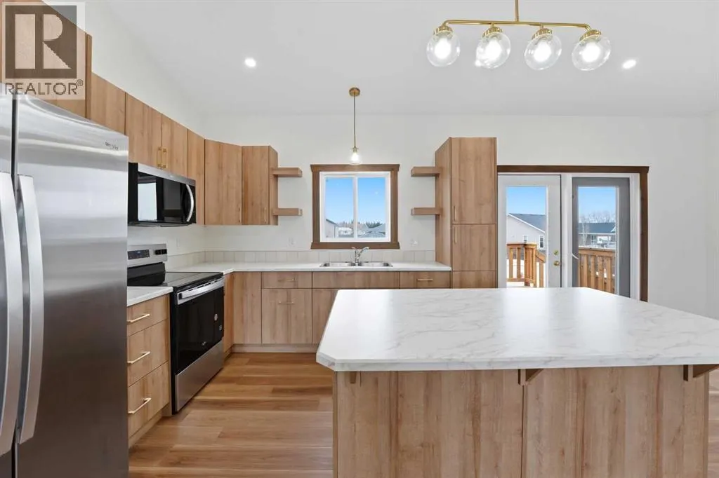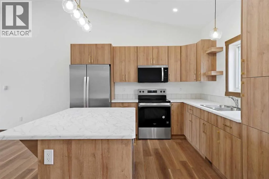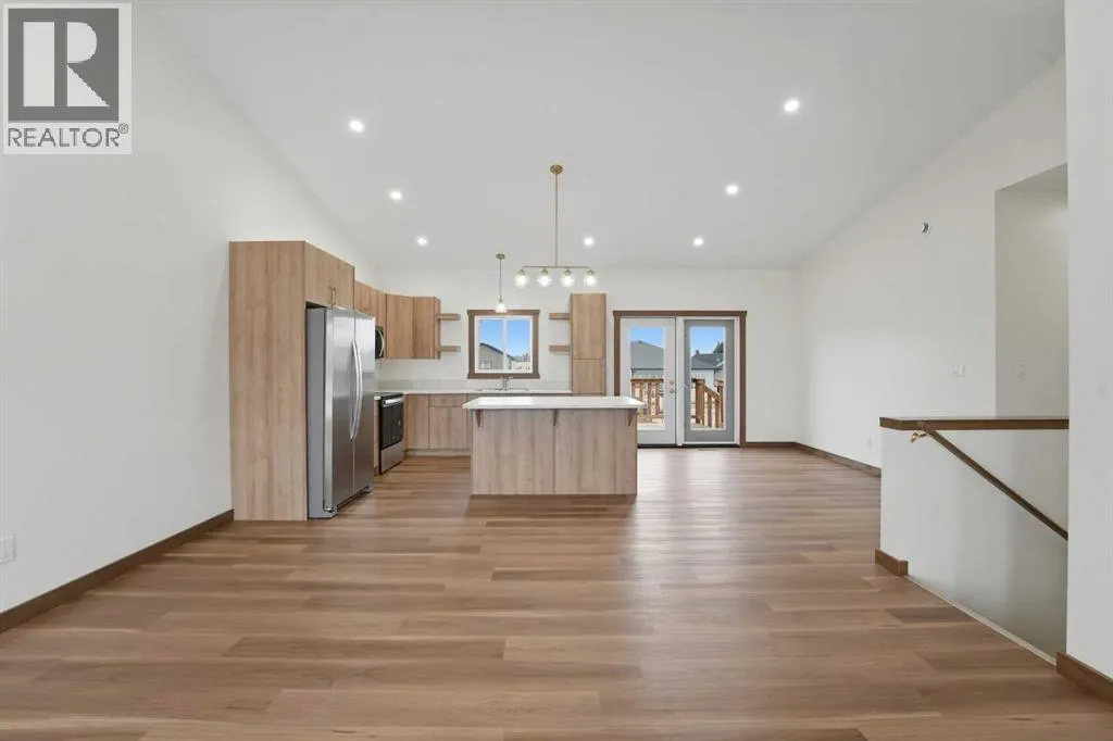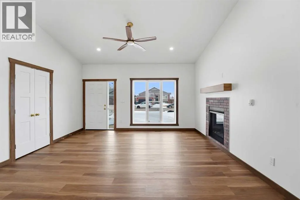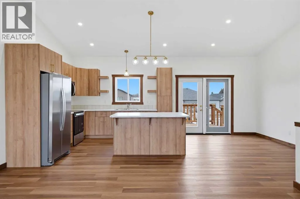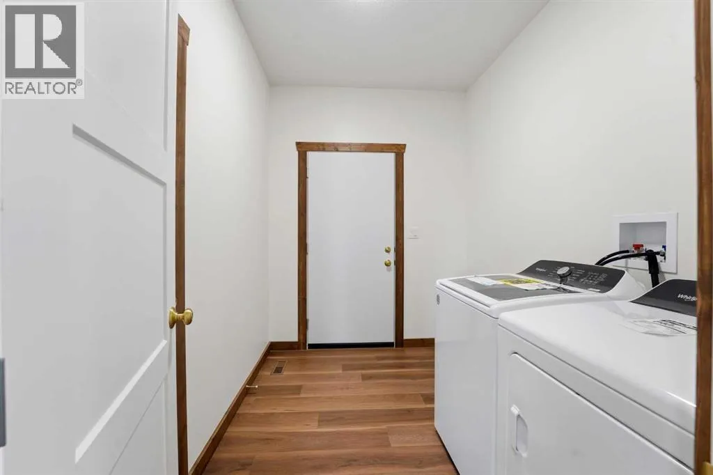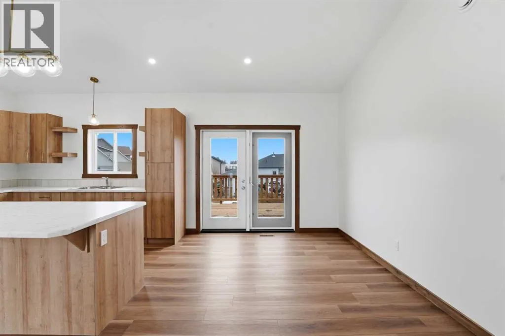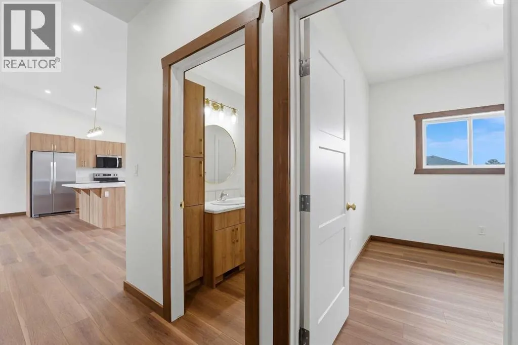 Welcome to this beautiful brand-new bungalow by Larchwood Homes, built this year and perfectly located on the outskirts of town in the charming community of Eckville - just 15 minutes from Sylvan Lake and half hour from Red Deer. From the moment you arrive, youâll be impressed by the stunning curb appeal and double attached garage. Step inside to a bright and inviting main floor featuring vaulted ceilings, modern light fixtures, a cozy gas fireplace, and patio doors leading to the massive backyardâperfect for entertaining or enjoying peaceful outdoor space. The kitchen offers beautiful laminate countertops, a large island, modern oak cabinetry and even two dishwashers, making it an ideal setup for busy families or those who love to host. Venture down the hall and youâll find two good-sized bedrooms and a full 4-piece bathroom with storage. The laundry is conveniently located in the boot room, complete with a spacious coat closet and direct access to the garage. The garage features soaring ceilings and is roughed-in for in-floor heat. The primary bedroom retreat offers a massive walk-in closet and a private 4-piece ensuite, providing a comfortable and functional space to unwind. The unfinished basement is ready for your future development, featuring large windows, roughed in for in floor heat, and a bright, open layout that doesnât feel like a typical basement. Donât waitâthis beautiful new home could be the perfect fit for you! (id:27476)