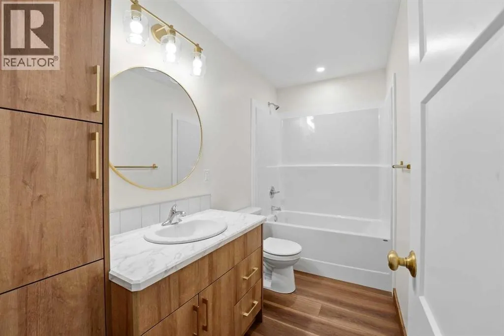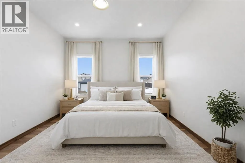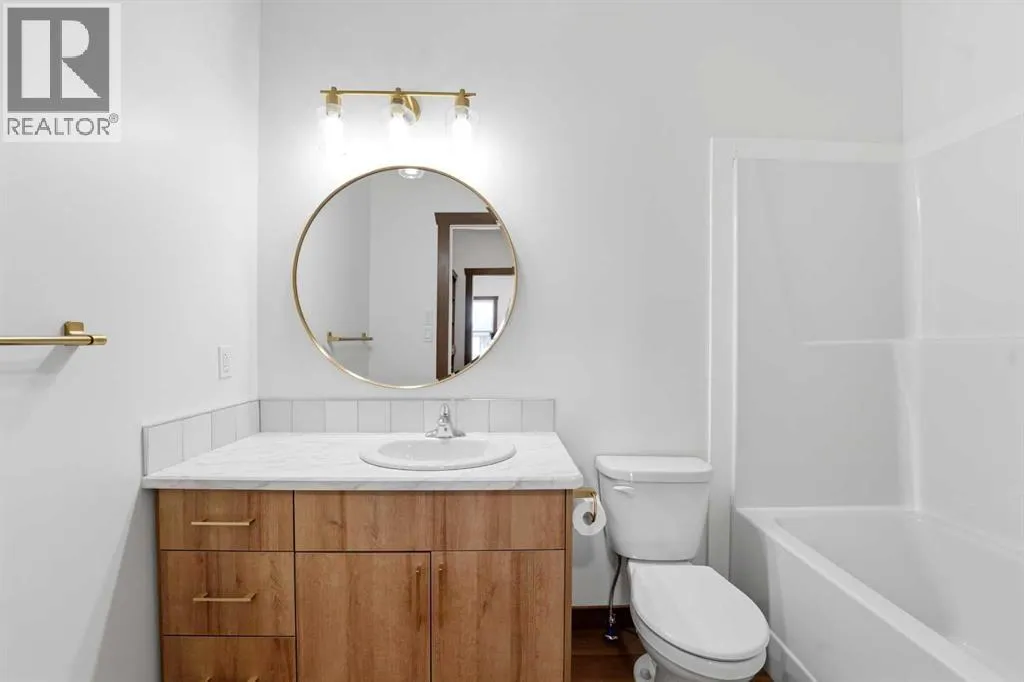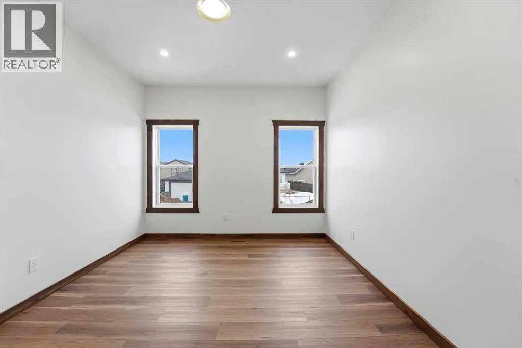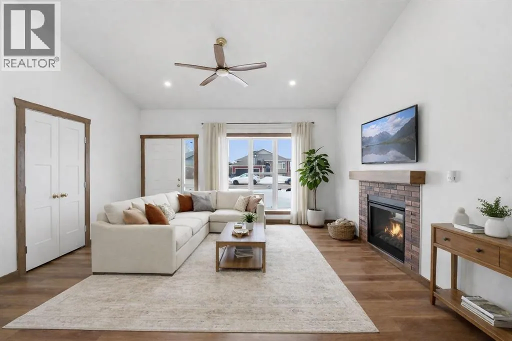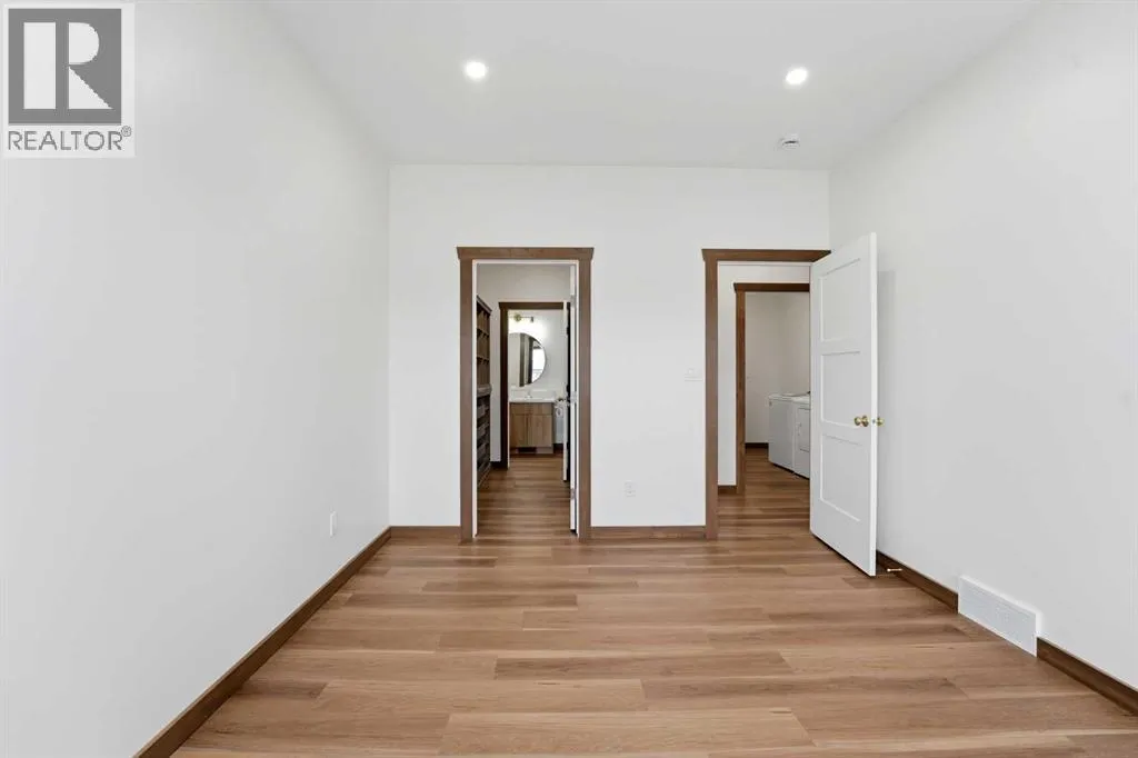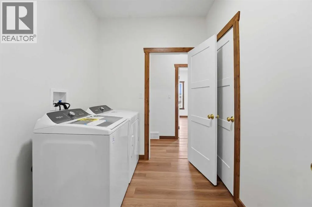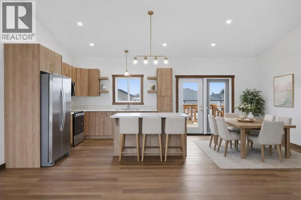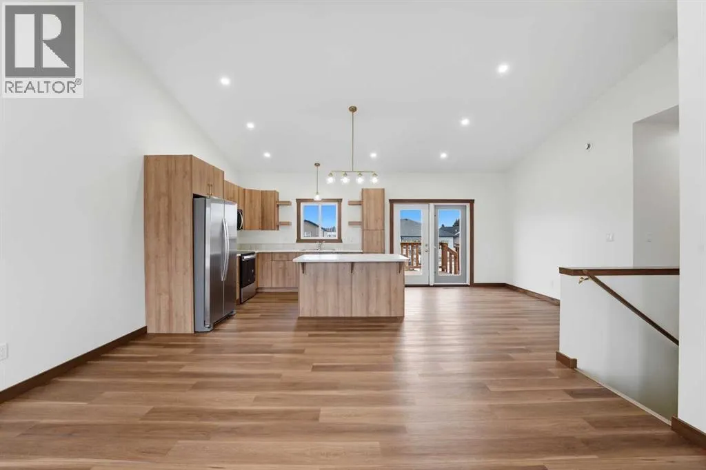 Welcome to this beautiful brand-new bungalow by Larchwood Homes, built this year and perfectly located on the outskirts of town in the charming community of Eckville - just 15 minutes from Sylvan Lake and half hour from Red Deer. From the moment you arrive, youâll be impressed by the stunning curb appeal and double attached garage. Step inside to a bright and inviting main floor featuring vaulted ceilings, modern light fixtures, a cozy gas fireplace, and patio doors leading to the massive backyardâperfect for entertaining or enjoying peaceful outdoor space. The kitchen offers beautiful laminate countertops, a large island, modern oak cabinetry and even two dishwashers, making it an ideal setup for busy families or those who love to host. Venture down the hall and youâll find two good-sized bedrooms and a full 4-piece bathroom with storage. The laundry is conveniently located in the boot room, complete with a spacious coat closet and direct access to the garage. The garage features soaring ceilings and is roughed-in for in-floor heat. The primary bedroom retreat offers a massive walk-in closet and a private 4-piece ensuite, providing a comfortable and functional space to unwind. The unfinished basement is ready for your future development, featuring large windows, roughed in for in floor heat, and a bright, open layout that doesnât feel like a typical basement. Donât waitâthis beautiful new home could be the perfect fit for you! (id:27476)