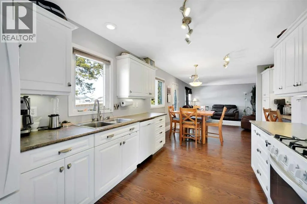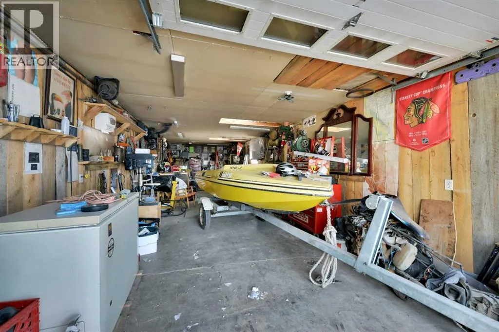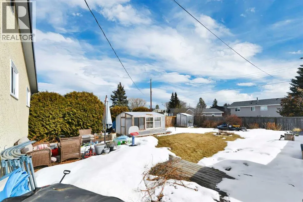 This beautiful Eckville bungalow delivers! Move in ready with a metal roof, newer windows, updated flooring, refreshed kitchen - with plenty of newer cabinets, and a lovely gas stove. Water softener in place, and the hot water tank is approximately 10 years old.The main floor offers three bedrooms and a full bathroom, with a functional living room / dining room layout. The fully finished basement adds a large rec room, a spacious den, a second full bathroom, and a dedicated mechanical room with laundry area.Outside, the large mature lot is fully fenced with a large rear deck and east facing exposure for great morning light. Green thumb? The little greenhouse in the backyard is a bonus!Then there's the detached garage. A long asphalt driveway leads to a tandem heated garage - it's insulated, boarded, and equipped with both a unit heater and a wood stove, plus skylights and extra storage for when you're tinkering on your projects. This is a workspace, a workshop... a year round hang out with lots of parking for your friends and family, or your toys. The heavy lifting has been done. This one is ready for its next owner. (id:27476)