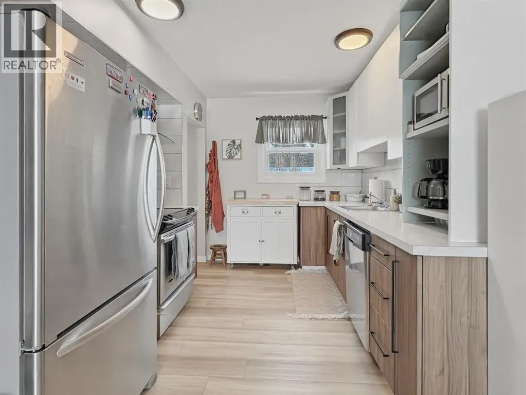 If you have been dreaming of a quieter pace without sacrificing convenience, this well built and substantially renovated home in the community of Eckville might be the perfect fit! This home offers simplicity, affordability and peace of mind with modern finishes and upgrades throughout - paired with a solid and well maintained structure. The open main living area offers a large front living room over looking the quiet close and green space/park. There are so many fun ways to furnish and set this space up as a living room, dining room or a combination. A functional and modern kitchen with stainless appliances and well thought out storage. The main floor offers two nice sized bedrooms and a well set up, renovated full bathroom with a storage closet. The rear entry offers access to the large back deck which makes an amazing extension of your living space and will certainly be enjoyed throughout the summer months! The basement has high ceilings and a large second living area, two additional bedrooms and a utility/laundry/storage room. Extensive upgrades over the years include vinyl windows, electrical panel, attic insulation, interior and exterior paint, soffit/fascia, flooring, kitchen and bathroom renovations, doors, sewer line and the added bonus of central air conditioning. Plenty of parking options from the front driveway, back alley access and the detached 14x22â garage. The back yard is a rare find in town being private and a great size. There is a large deck plus a fire pit patio area and even room for a garden and play areas! The desirable community of Eckville offers a peaceful quality of life with local amenities while being centrally located to the larger centres of Sylvan Lake, Red Deer and Rocky Mountain House. A short drive to the golf course, grocery store, school and more. This home is solid, updated and offers a great location making it a comfortable place to call home. (id:27476)