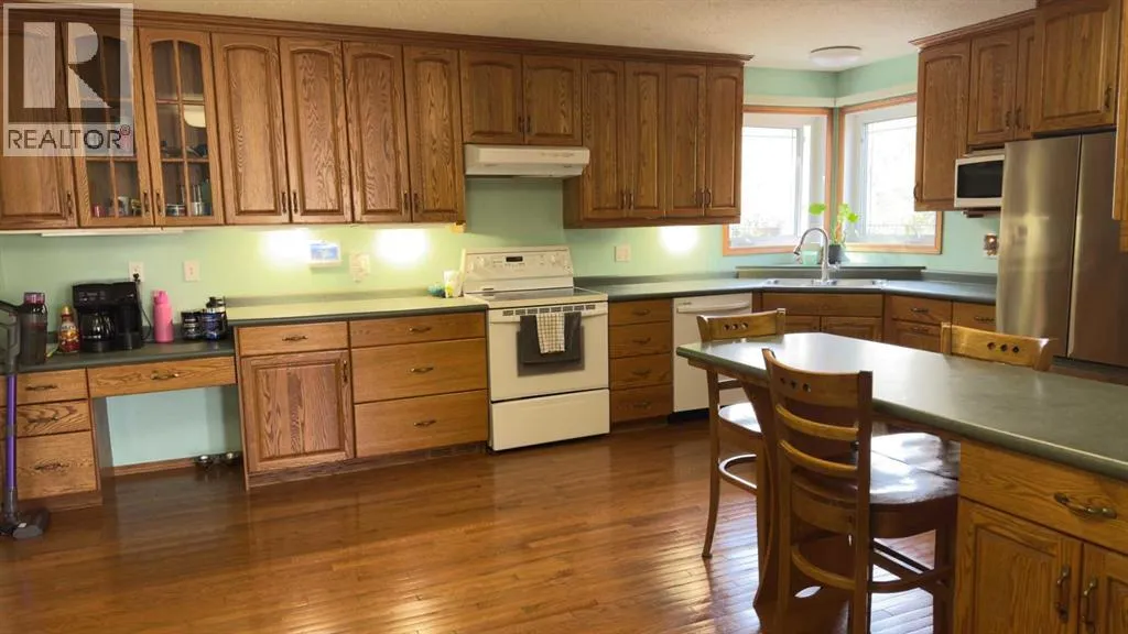 Set on a generous lot in the welcoming community of Edgerton, this well-maintained bungalow offers plenty of space both inside and out for your family to enjoy. The main floor features beautiful hardwood floors, three comfortable bedrooms, a full bathroom, and a large primary bedroom complete with a walk-in closet and an ensuite with dual showerheads. The bright kitchen is highlighted by rich oak cabinetry, a walk-in pantry, and an eat-in island that opens to the spacious dining and living areaâperfect for family gatherings.Outside, youâll love the awesome outdoor bar and barbecue area built around the firepit, creating the ideal space for entertaining and relaxing. The large yard offers lots of room for anything you may chooseâgardening, play, or future expansion. A detached double garage and large shop provide great storage and workspace options.The owner is also planning to replace the shingles on the house and install a wood-burning stove in the shop, offering even greater comfort and value for the next owner.This property is an excellent opportunity to enjoy small-town living with space, privacy, and charm in the heart of Edgerton. (id:27476)