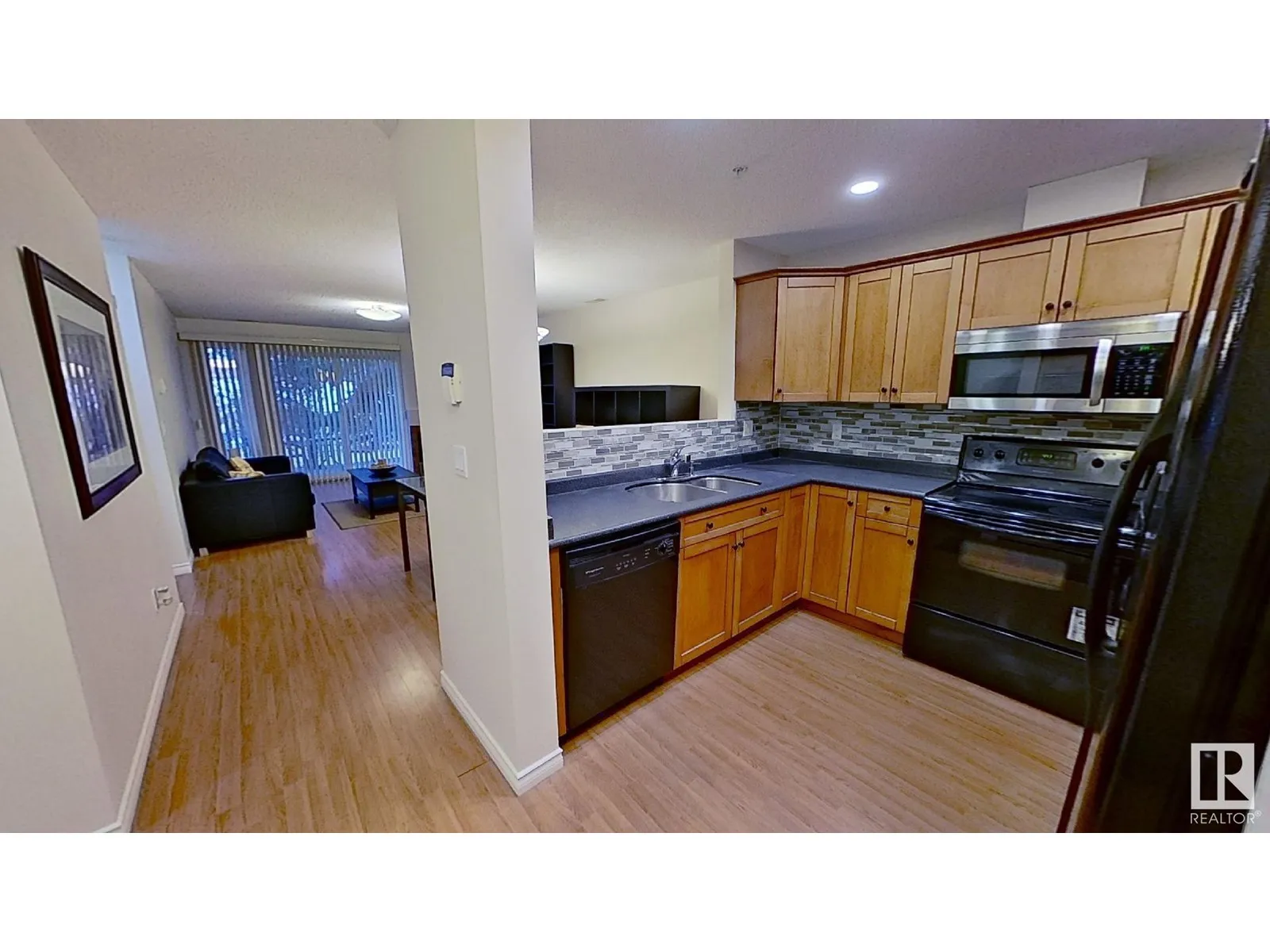Welcome to Glenora Mansion. This fully furnished condo unit located on the main floor with two bedrooms, one bathroom is move-in ready. Newly painted walls, laminated flooring with ensuite washer and dryer and corner gas fireplace. Includes one surface covered car parking space. Amenities include an exercise room, underground carwash and ample visitor parking area. Conveniently located near the Grant McEwan University, Brewery Shopping District and Manchester Square, this unit will impress you. (id:27476)