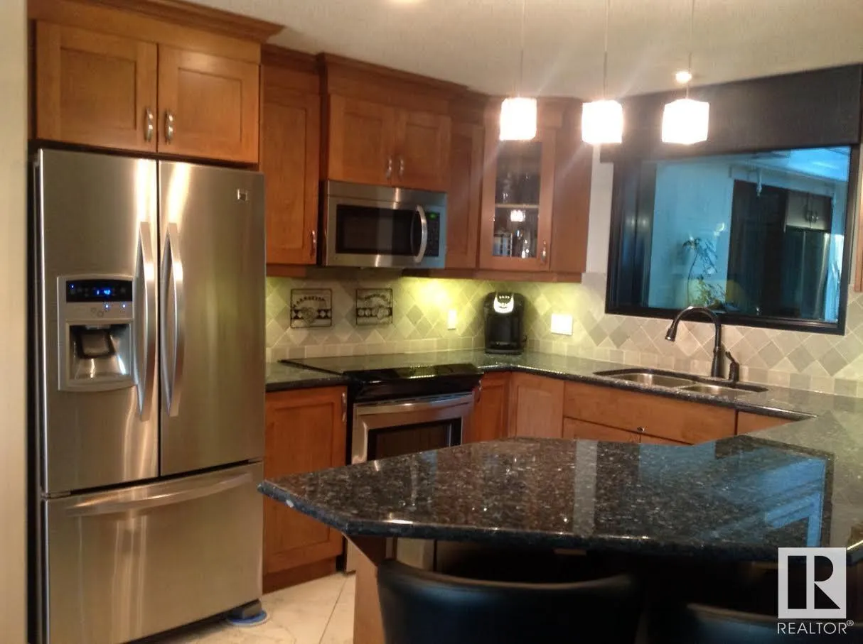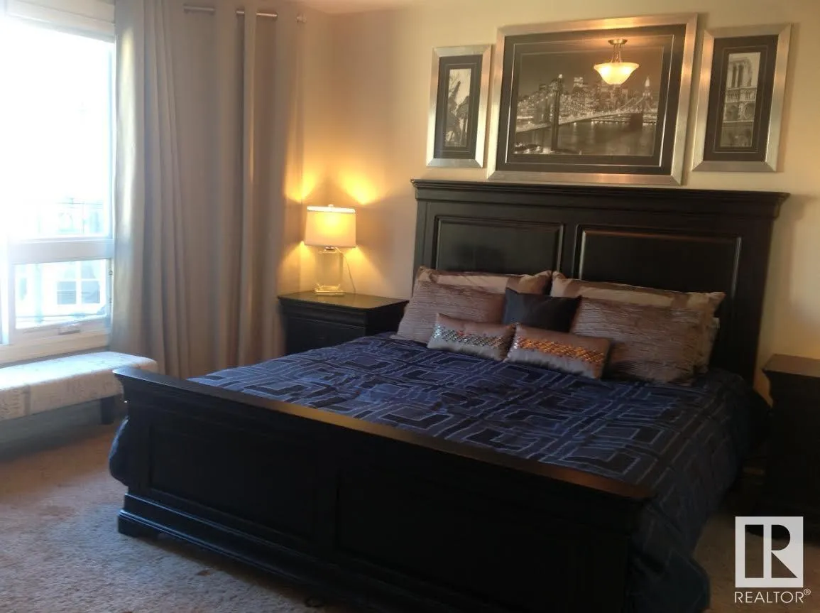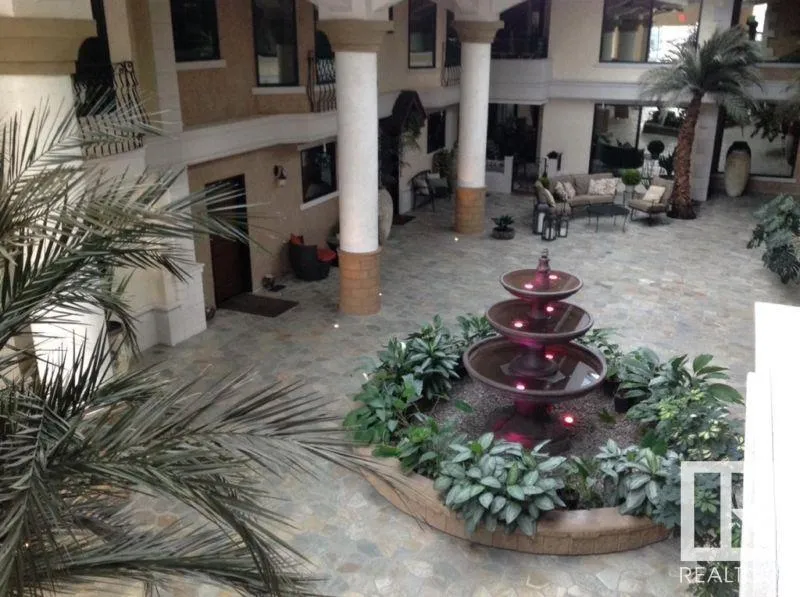 5 star living in Meridian Plaza- executive luxury with unsurpassed amenities. Your front door opens to a beautiful tropical atrium with palm trees & water fountain. This quiet 2 story condo is loaded with features- gourmet kitchen with granite counters, stainless appliances, Delton cabinetry, espresso hardwood, Spanish floor tile, marble backsplash, gas fireplace, gas BBQ, A/C, king sized bedrooms, closet organizers, French doors, custom window coverings, insuite stacked laundry, built in vacuum, assigned titled indoor parking stall. The complex has a breathtaking marble lobby with grand staircase, fireplace, owners lounge, business centre, banquet facility, guest suite, exercise room, bike storage room, ample visitor parking & video monitored security. Conveniently located close to downtown shopping, restaurants, LRT, river valley trails, McEwan University & just 8 blocks from the Ice District Arena. (id:27476)