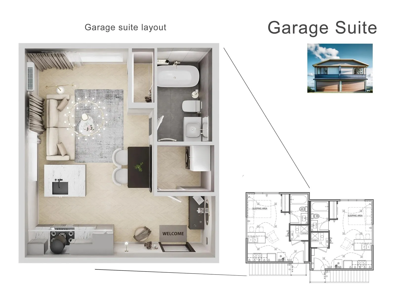 Total 6 units Side-by-Side Duplex in the Allendale, University of Alberta area. Great investment project with potential to split the land titles. 2 duplex units, 2 basement suites, and 2 garage suites. Each Duplex size is around 1426 sqft. and Basement secondary suite is about 667 sqft., and each Garage suite is around 360 sqft. Highlights: Main floor full bath, Main floor Den, Upstairs bonus room, Two good size bedrooms in the basement suite. CMHC MLI Select financing is available. Cap rate is 4.65%. Photos are 3D rendering and for illustration purpose only. Project is schedule to complete October 2025. (id:27476)