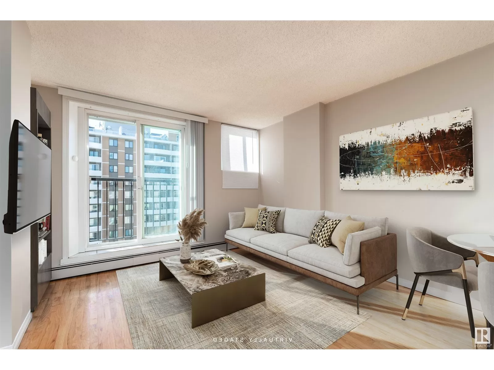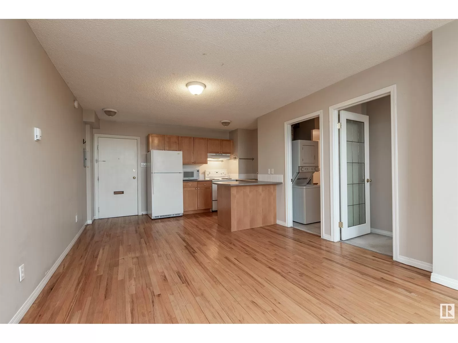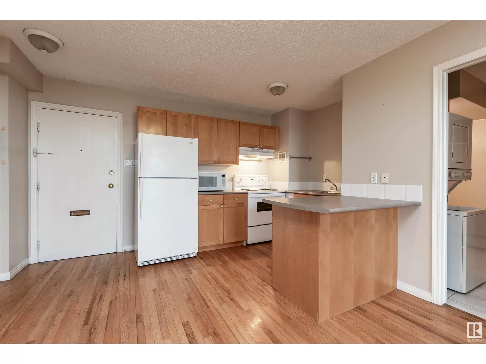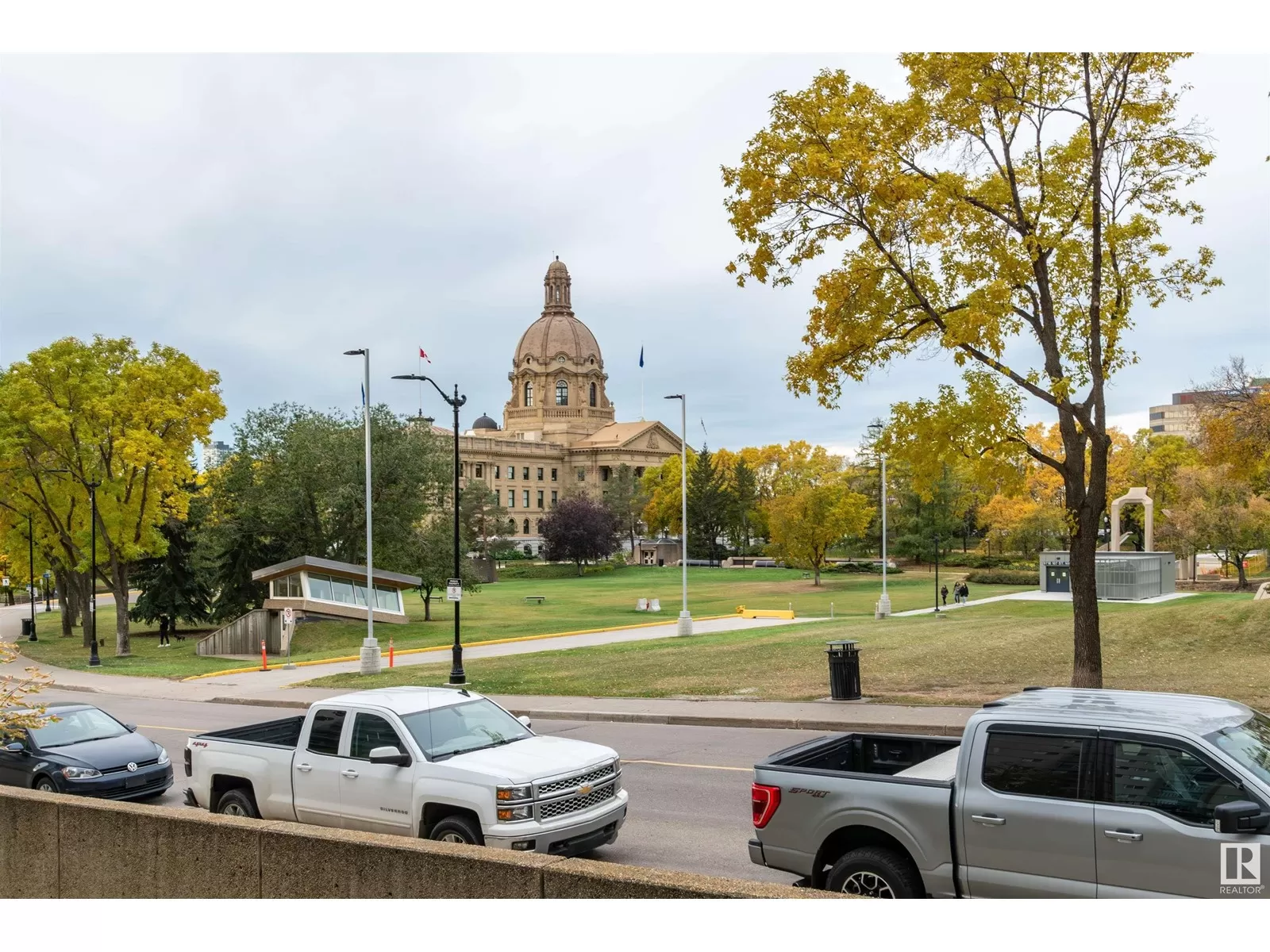 LOCATION, LOCATION, LOCATION!! Welcome to this one-bedroom unit in The Residence WITH A GREAT VIEW OF THE LEGISLATURE in the heart of downtown and all it has to offer. The unit features an open floor plan with hardwood floors throughout the kitchen, living and dining room, and a 4-pc bath with in-suite laundry. Reasonable condo fees include heat, water and power. Concrete building, with 24-hour surveillance, digital key fob access and an on-site resident manager with an office in the lobby entrance. Close to all downtown amenities, restaurants, shopping, public transportation, schools, MacEwan, U of A, Rogers Place, Royal Alex, Remax field (for the baseball enthusiast), walking distance to our beautiful River valley, and a 5 min walk to the LRT. Ideal for a first-time buyer; why pay rent at this price? Or purchase as an investment property; easy to rent with an option to join the rental pool if desired. Assigned parking through the Management Company. Welcome Home!! (id:27476)