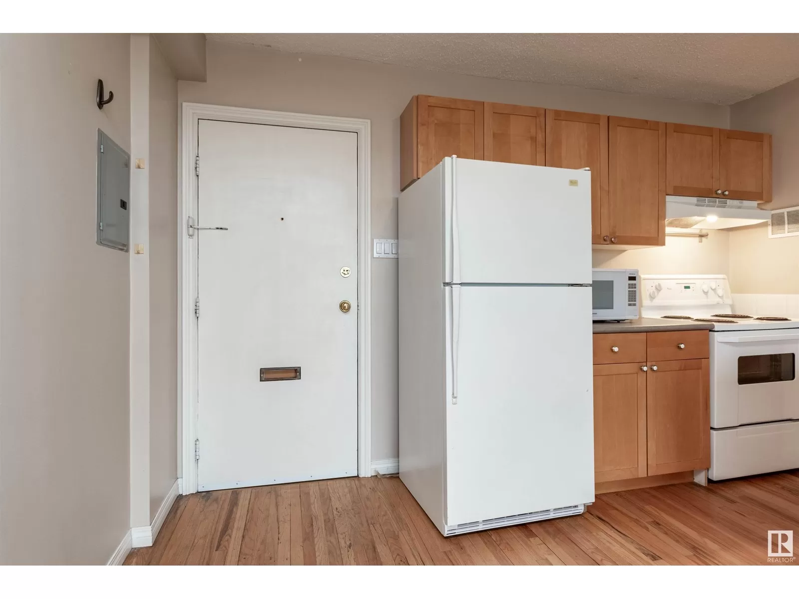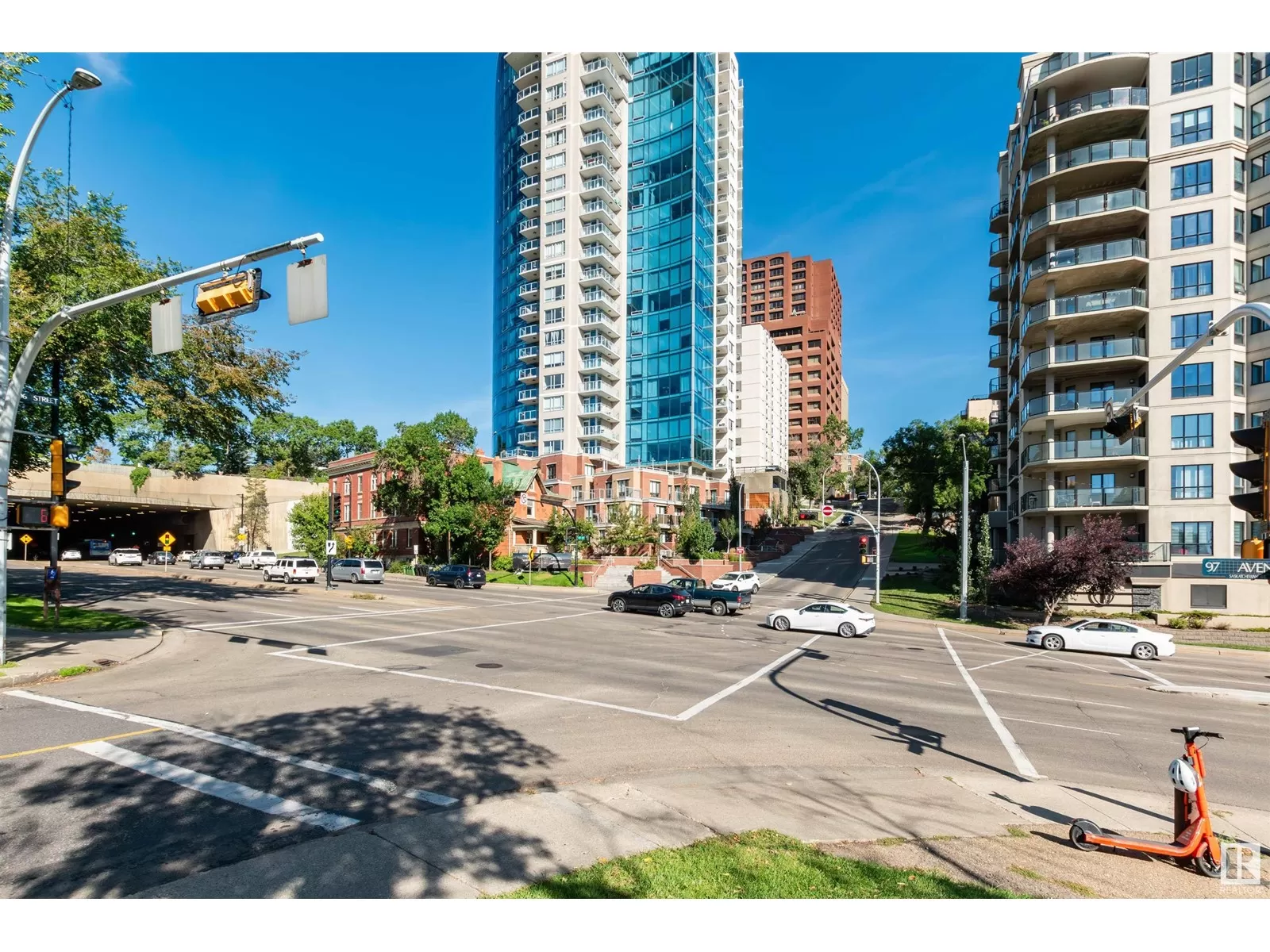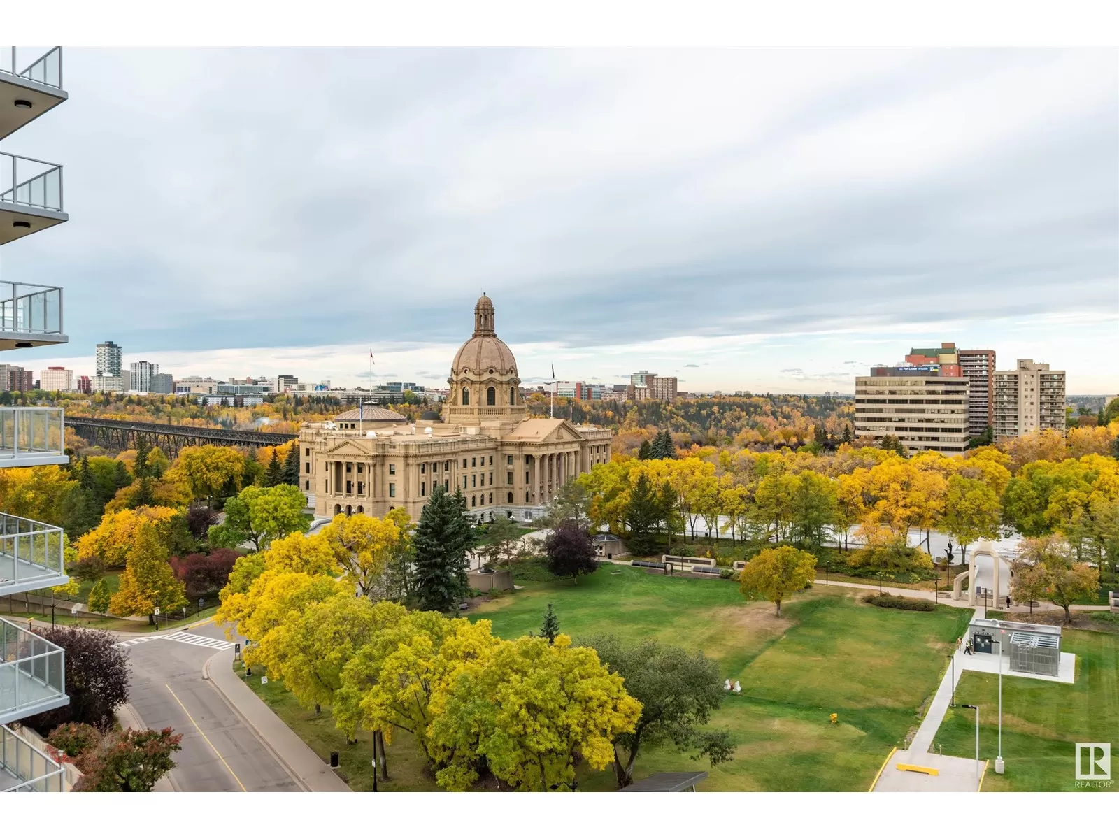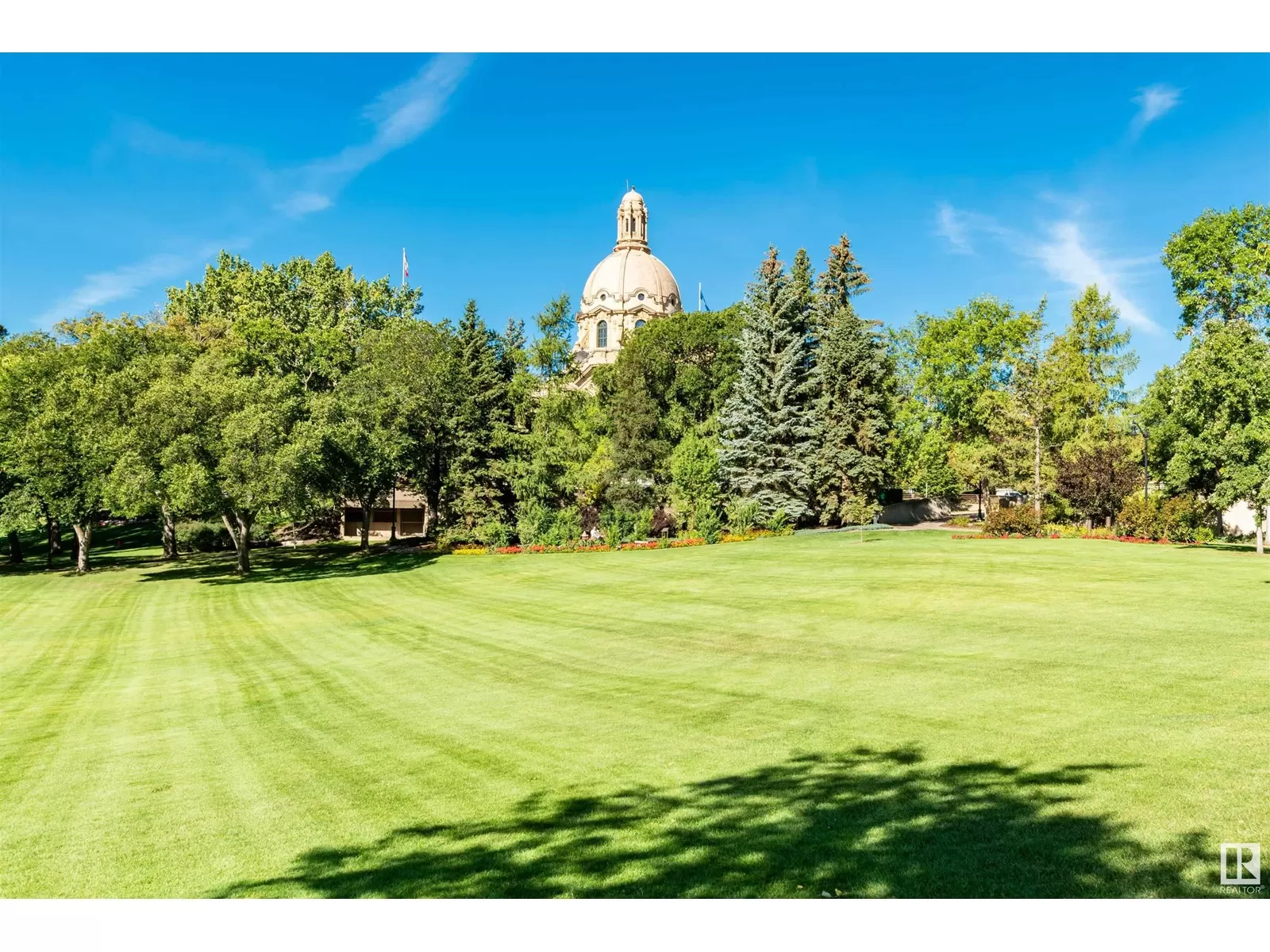 LOCATION, LOCATION, LOCATION!! Welcome to this one-bedroom unit in The Residence WITH A GREAT VIEW OF THE LEGISLATURE in the heart of downtown and all it has to offer. The unit features an open floor plan with hardwood floors throughout the kitchen, living and dining room, and a 4-pc bath with in-suite laundry. Reasonable condo fees include heat, water and power. Concrete building, with 24-hour surveillance, digital key fob access and an on-site resident manager with an office in the lobby entrance. Close to all downtown amenities, restaurants, shopping, public transportation, schools, MacEwan, U of A, Rogers Place, Royal Alex, Remax field (for the baseball enthusiast), walking distance to our beautiful River valley, and a 5 min walk to the LRT. Ideal for a first-time buyer; why pay rent at this price? Or purchase as an investment property; easy to rent with an option to join the rental pool if desired. Assigned parking through the Management Company. Welcome Home!! (id:27476)