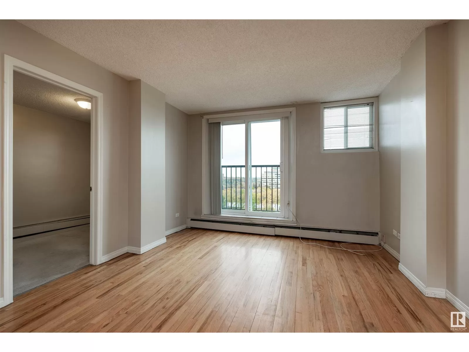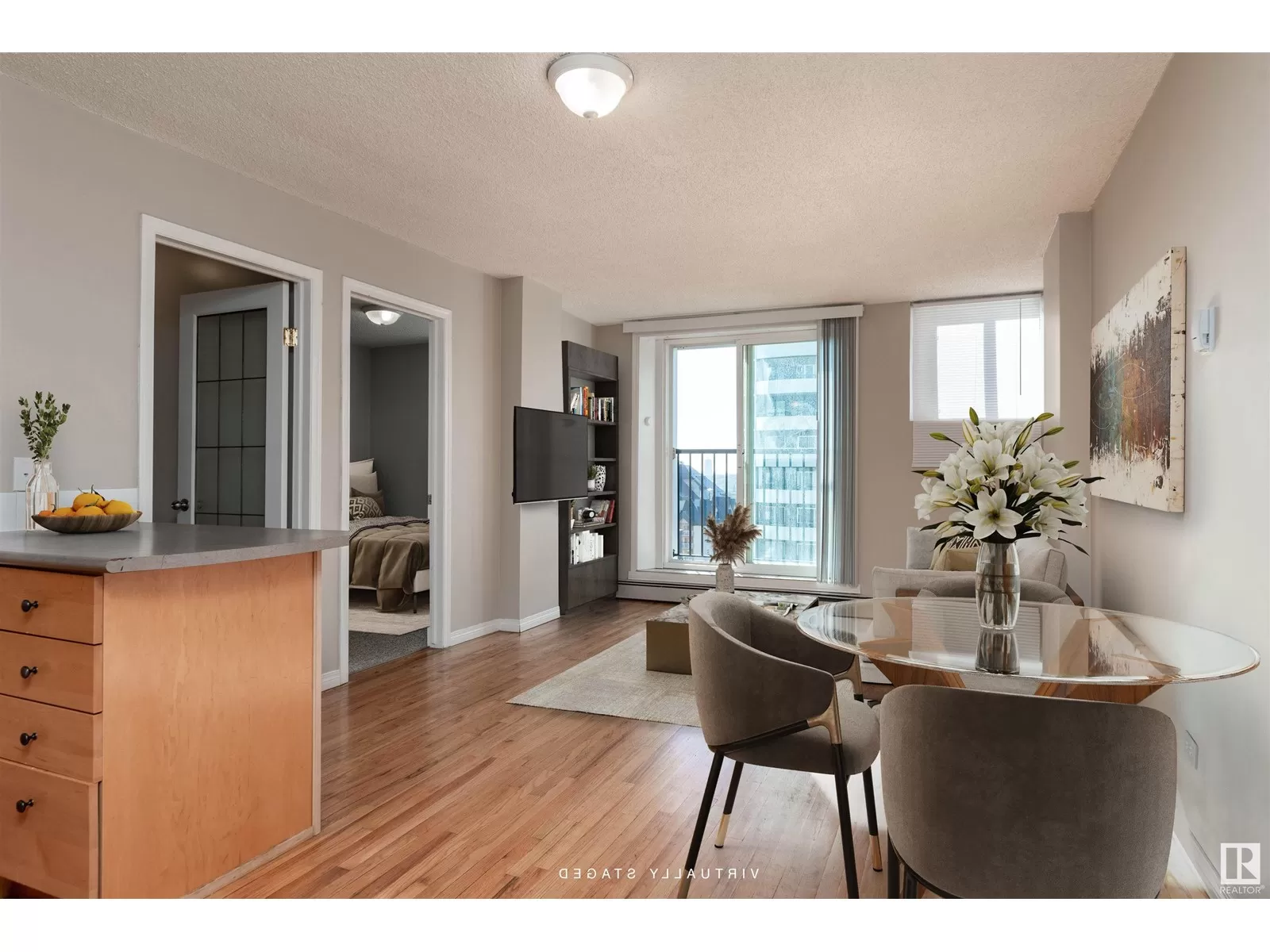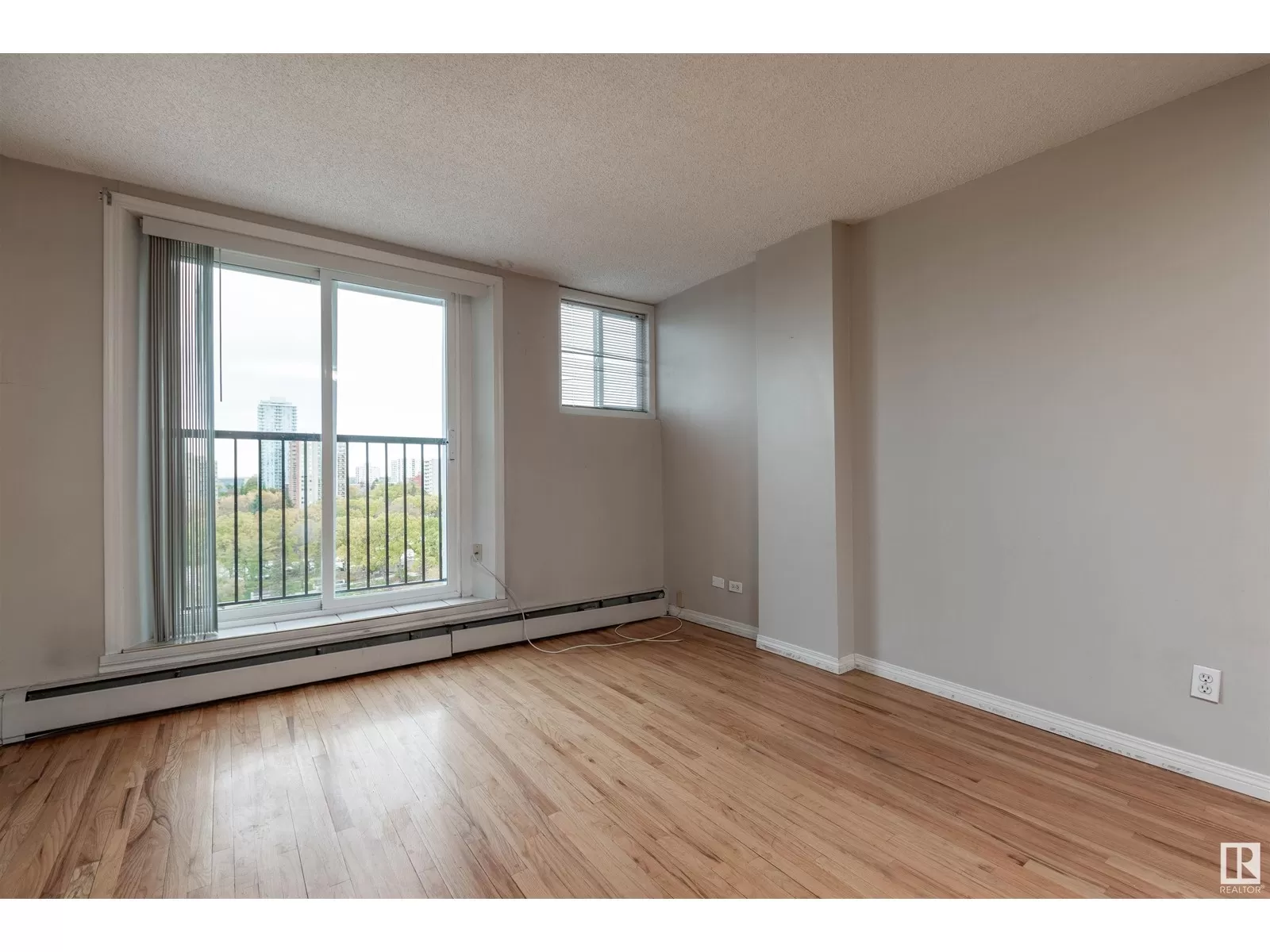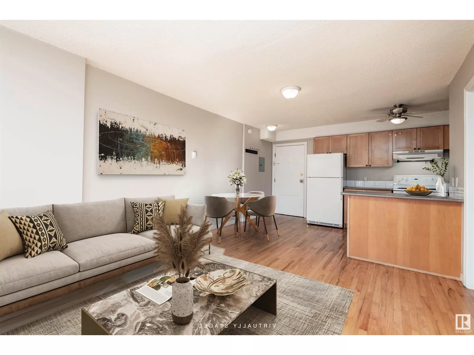 LOCATION, LOCATION, LOCATION!! Welcome to this one-bedroom unit in The Residence WITH A GREAT VIEW OF THE LEGISLATURE in the heart of downtown and all it has to offer. The unit features an open floor plan with hardwood floors throughout the kitchen, living and dining room, and a 4-pc bath with in-suite laundry. Reasonable condo fees include heat, water and power. Concrete building, with 24-hour surveillance, digital key fob access and an on-site resident manager with an office in the lobby entrance. Close to all downtown amenities, restaurants, shopping, public transportation, schools, MacEwan, U of A, Rogers Place, Royal Alex, Remax field (for the baseball enthusiast), walking distance to our beautiful River valley, and a 5 min walk to the LRT. Ideal for a first-time buyer; why pay rent at this price? Or purchase as an investment property; easy to rent with an option to join the rental pool if desired. Assigned parking through the Management Company. Welcome Home!! (id:27476)