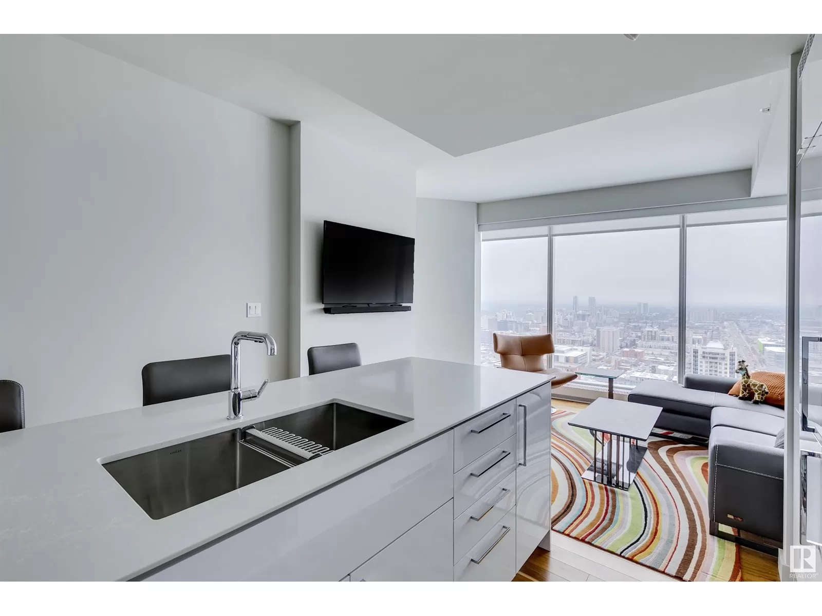 This turnkey property isnât just about space, itâs about lifestyle! Experience the perfect fusion of style, comfort, and convenience in this stunning 1-bedroom plus den, 1-bath suite with breathtaking views and a titled parking spot. Perched above the JW Marriott, The Legends Private Residences offer world-class amenities, including a pool, hot tub, steam room, conference room, fitness centre, billiards lounge, rooftop patio with BBQ area, pet walk, and 24/7 concierge service. Monthly fees cover heat, water, and access to all these exceptional features. With direct access to Rogers Place, the LRT, top-tier restaurants, and shopping via the Pedway System, every convenience is at your doorstep. The Legends redefine elegance, offering an elevated lifestyle with personalized service, ensuring luxury and comfort in the heart of the Ice District. (id:27476)