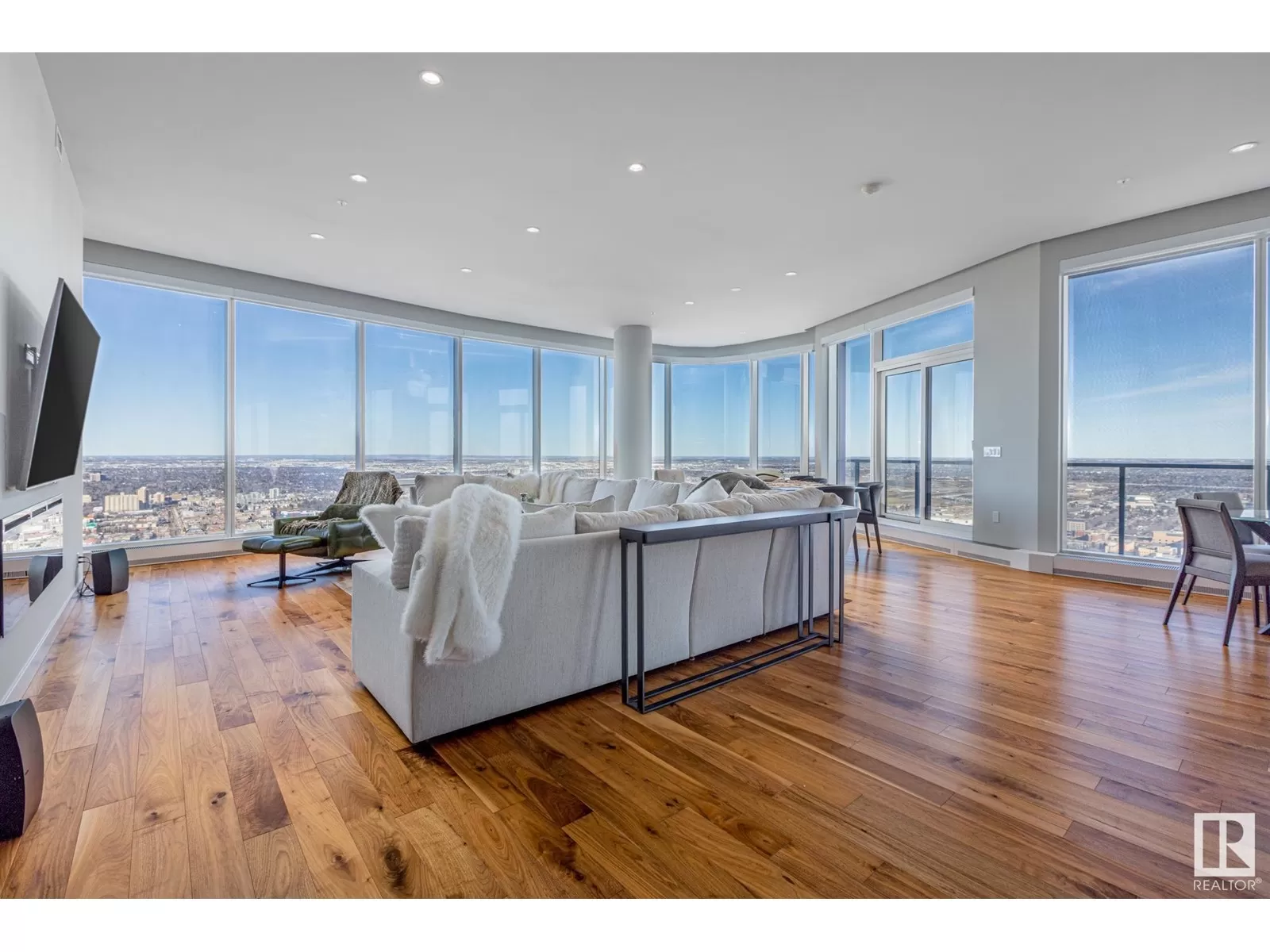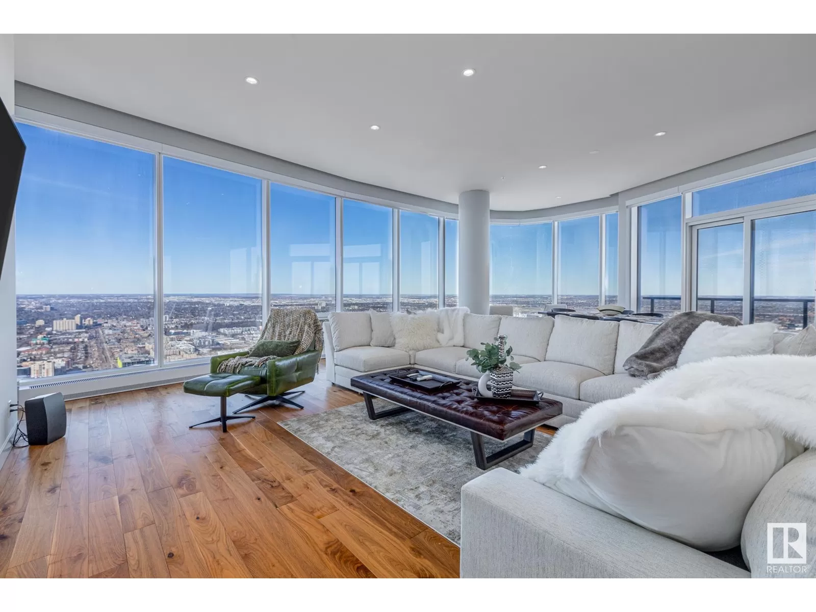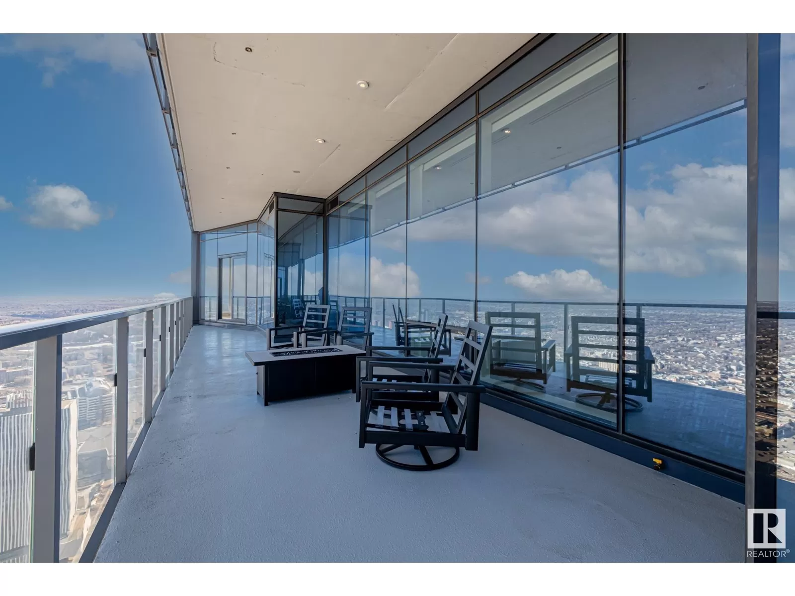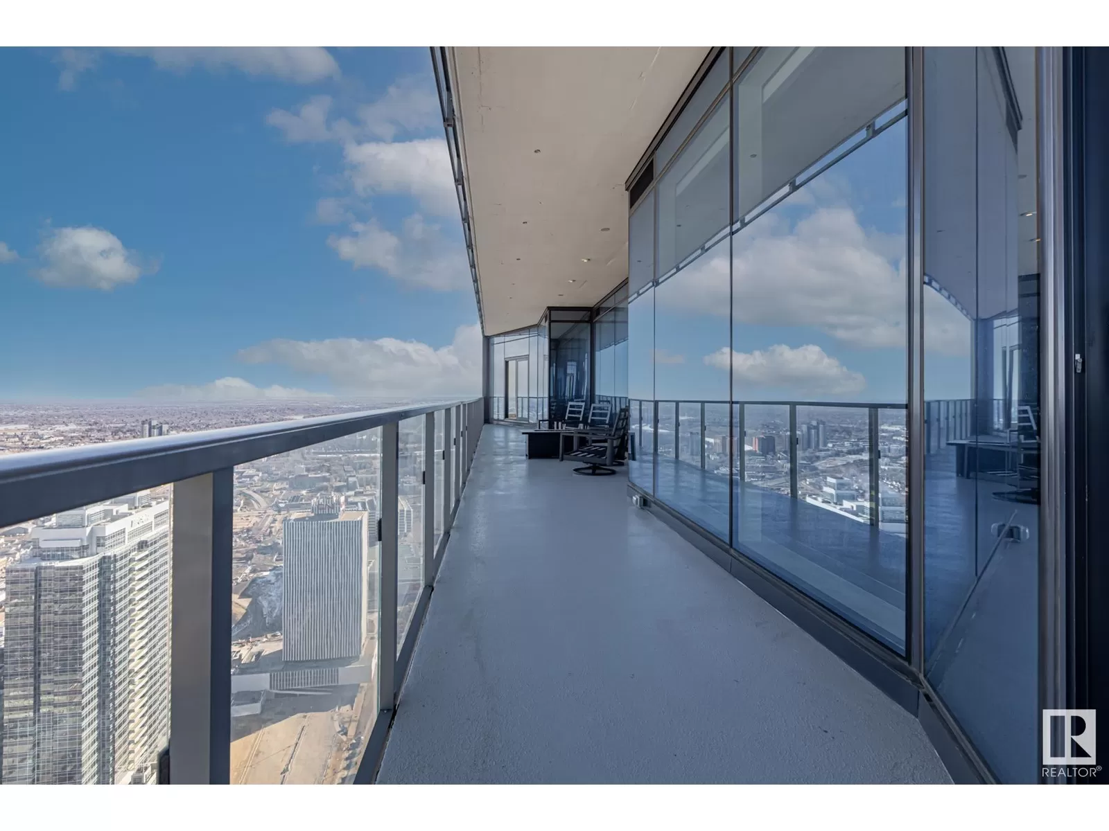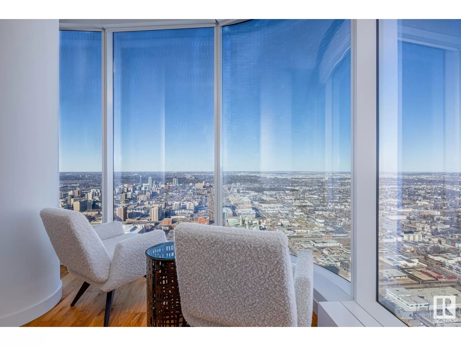 Amazing opportunity to own this fully furnished 52nd floor penthouse in Edmonton's most exclusive condo development, The Legends Private Residences. This spacious & well-designed floorplan has over 3,300 sf of living space which extends to a 730 sf covered terrace. Expansive window walls throughout allows light to cascade through this incredible suite. 270 degree view! Premium features include; 10 ft ceilings, hardwood flooring, 2 primary bedrooms with ensuites, spacious den with wet bar, roomy office space, 2 & 1/2 baths, premium appliance package, power window coverings and much more!! 3 underground parking stalls & storage space included! Located in the heart of ICE District with a walk-indoor experience pedway directly to Rogers Place. World class JW Marriott shared facilities include; relaxing spa with indoor pool & steam room, ARCHETYPE fitness membership, 24/7 concierge & security, valet and dining services available. Truly a living experience that is unmatched in the City of Edmonton! (id:27476)