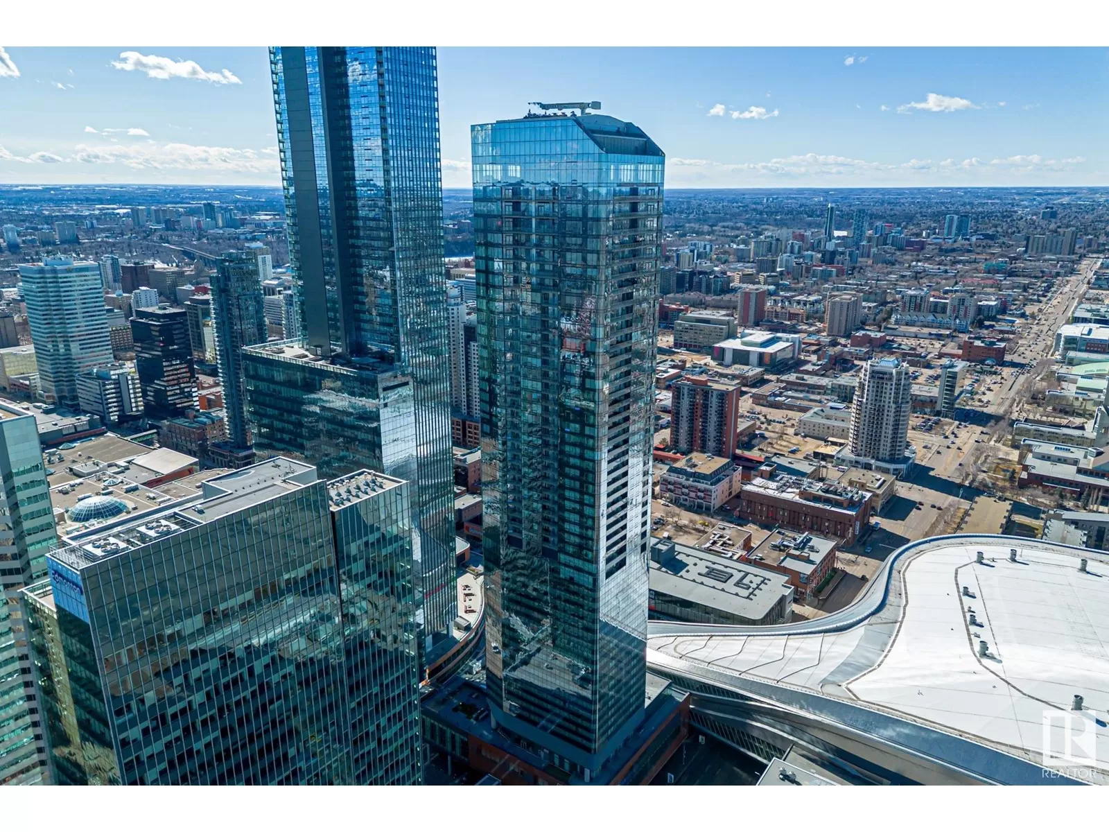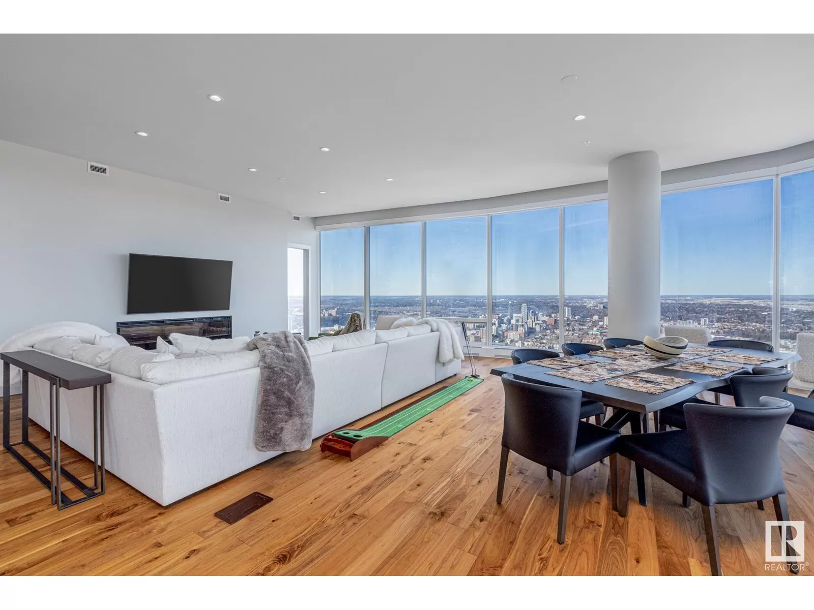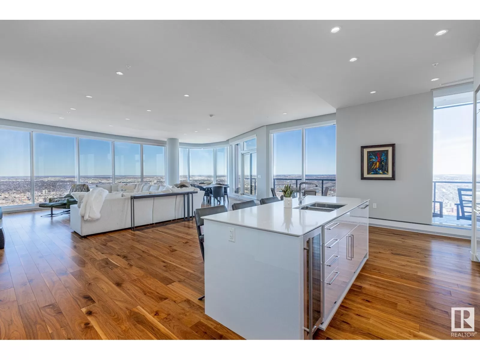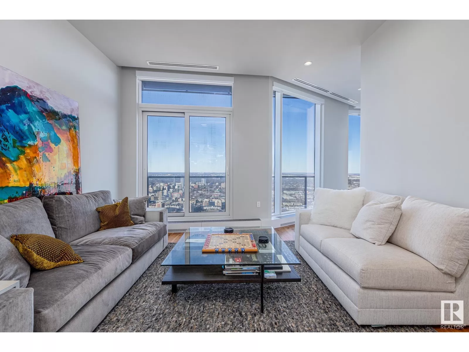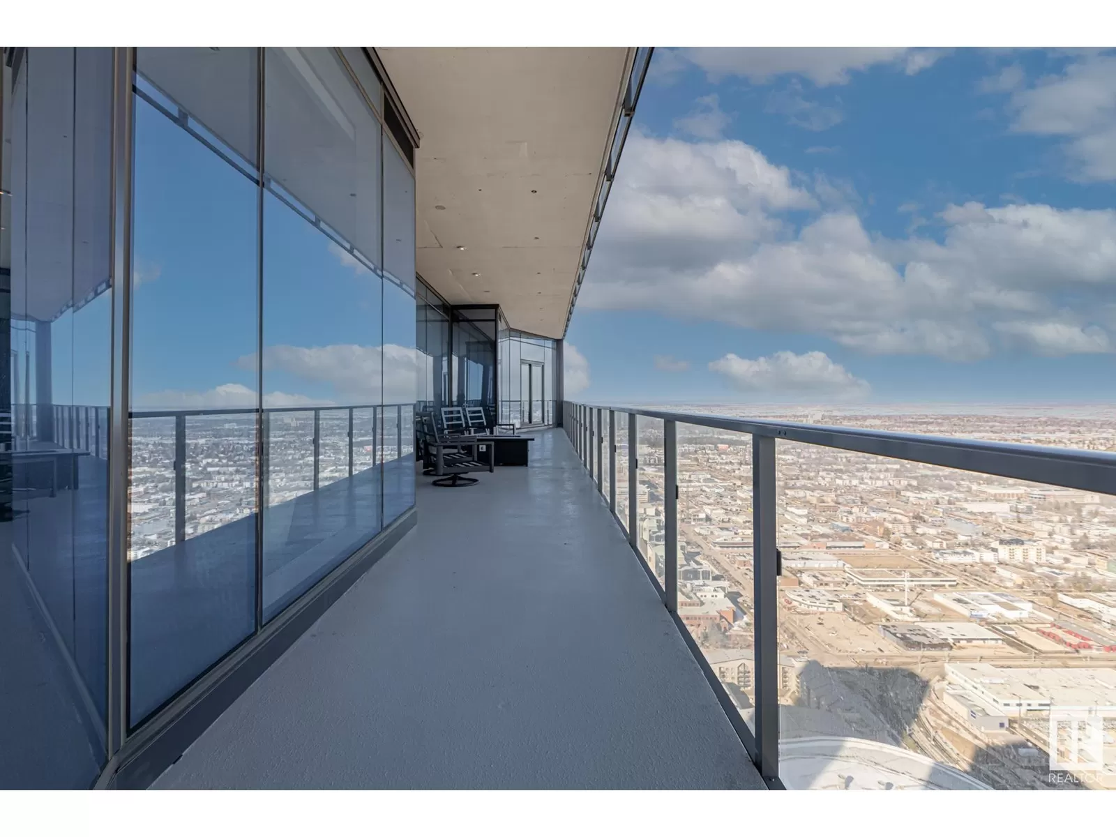 Amazing opportunity to own this fully furnished 52nd floor penthouse in Edmonton's most exclusive condo development, The Legends Private Residences. This spacious & well-designed floorplan has over 3,300 sf of living space which extends to a 730 sf covered terrace. Expansive window walls throughout allows light to cascade through this incredible suite. 270 degree view! Premium features include; 10 ft ceilings, hardwood flooring, 2 primary bedrooms with ensuites, spacious den with wet bar, roomy office space, 2 & 1/2 baths, premium appliance package, power window coverings and much more!! 3 underground parking stalls & storage space included! Located in the heart of ICE District with a walk-indoor experience pedway directly to Rogers Place. World class JW Marriott shared facilities include; relaxing spa with indoor pool & steam room, ARCHETYPE fitness membership, 24/7 concierge & security, valet and dining services available. Truly a living experience that is unmatched in the City of Edmonton! (id:27476)