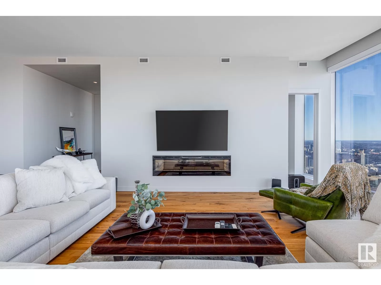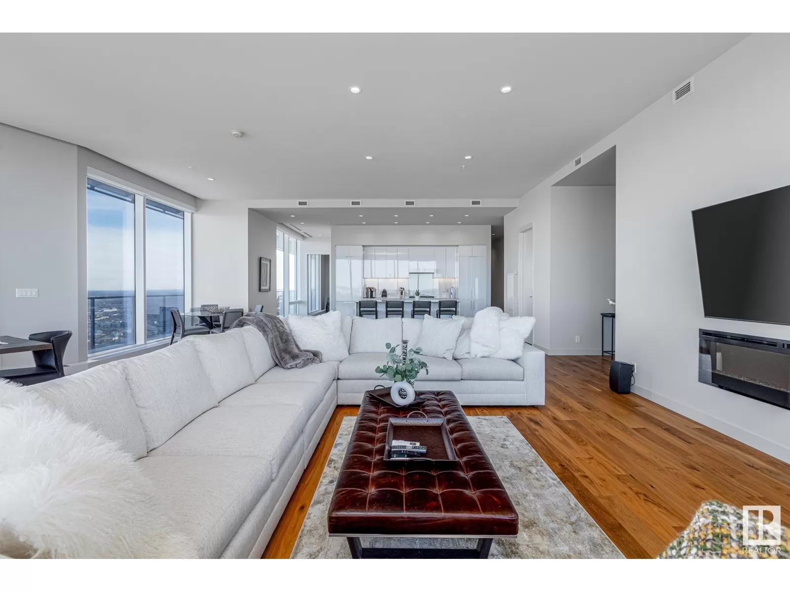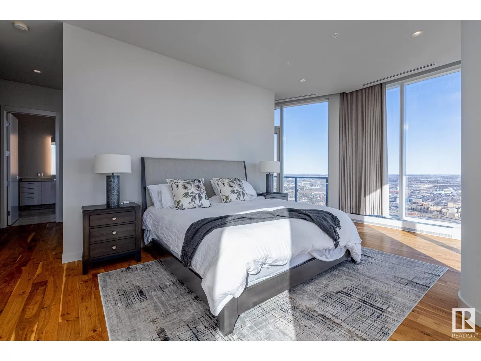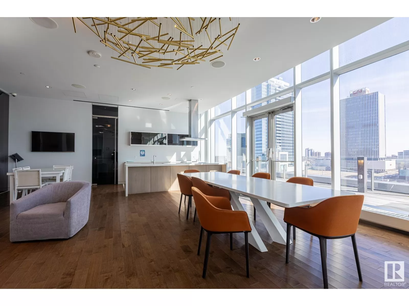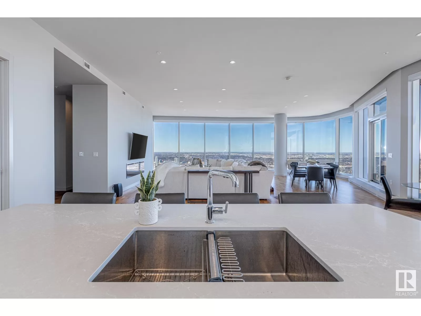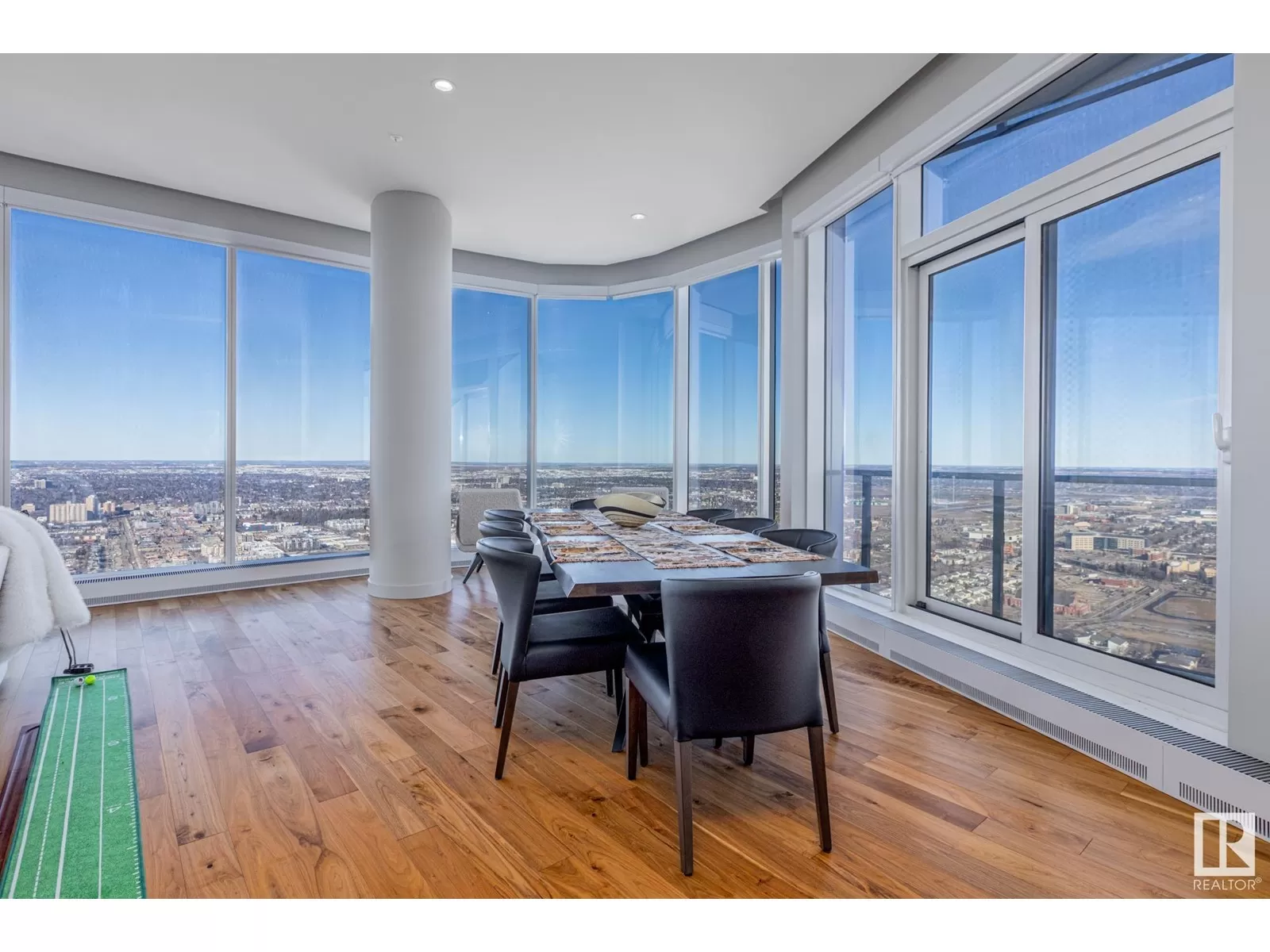 Amazing opportunity to own this fully furnished 52nd floor penthouse in Edmonton's most exclusive condo development, The Legends Private Residences. This spacious & well-designed floorplan has over 3,300 sf of living space which extends to a 730 sf covered terrace. Expansive window walls throughout allows light to cascade through this incredible suite. 270 degree view! Premium features include; 10 ft ceilings, hardwood flooring, 2 primary bedrooms with ensuites, spacious den with wet bar, roomy office space, 2 & 1/2 baths, premium appliance package, power window coverings and much more!! 3 underground parking stalls & storage space included! Located in the heart of ICE District with a walk-indoor experience pedway directly to Rogers Place. World class JW Marriott shared facilities include; relaxing spa with indoor pool & steam room, ARCHETYPE fitness membership, 24/7 concierge & security, valet and dining services available. Truly a living experience that is unmatched in the City of Edmonton! (id:27476)