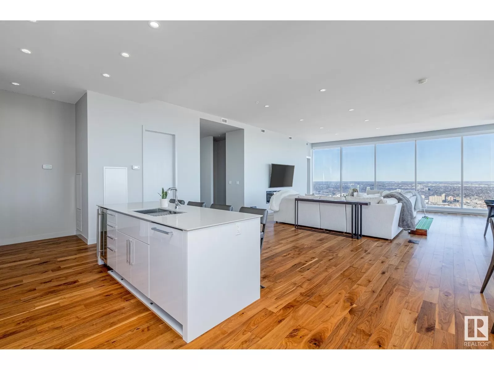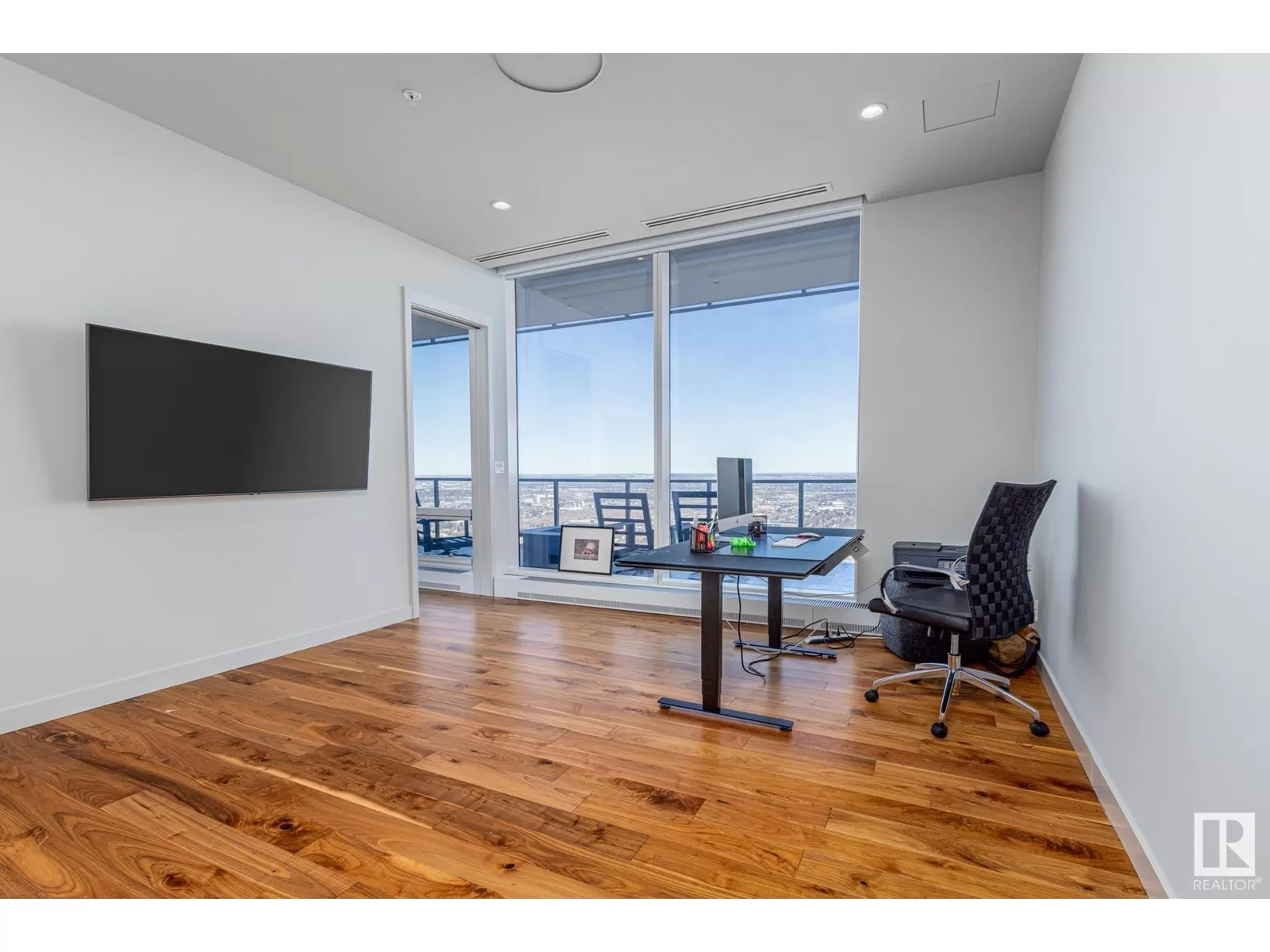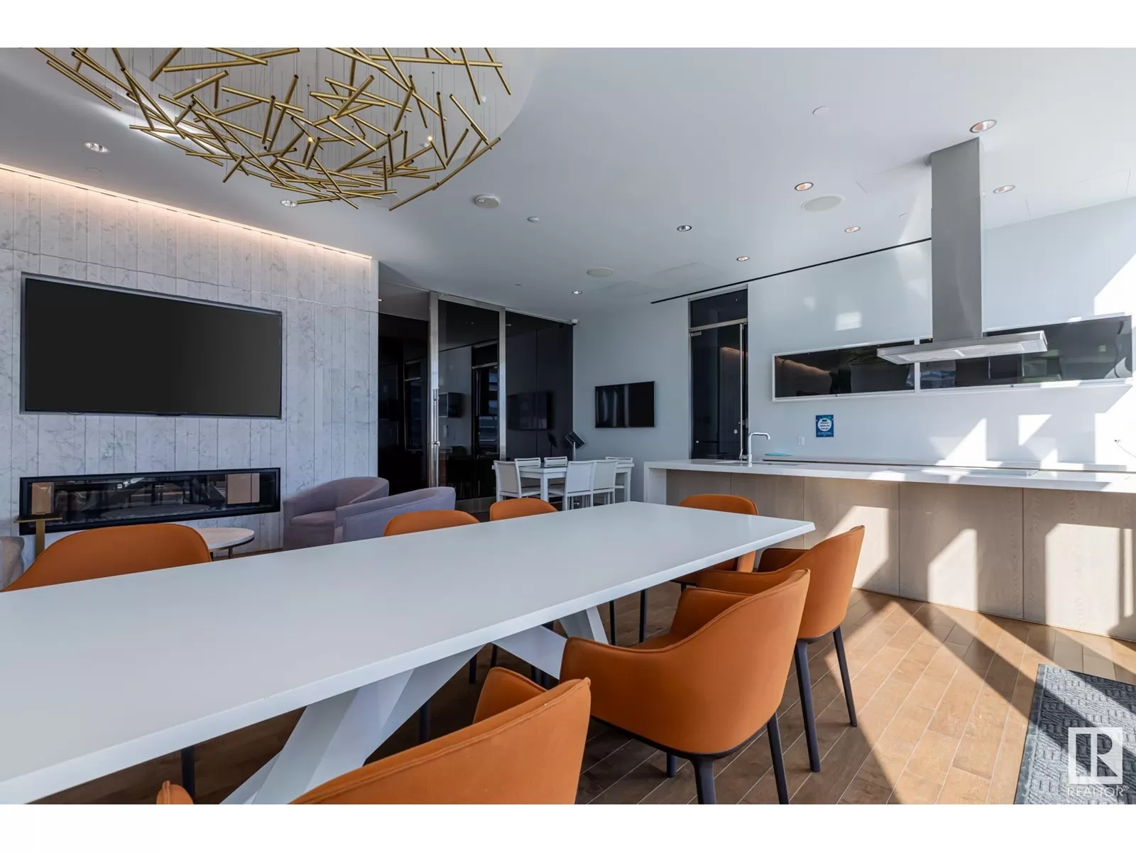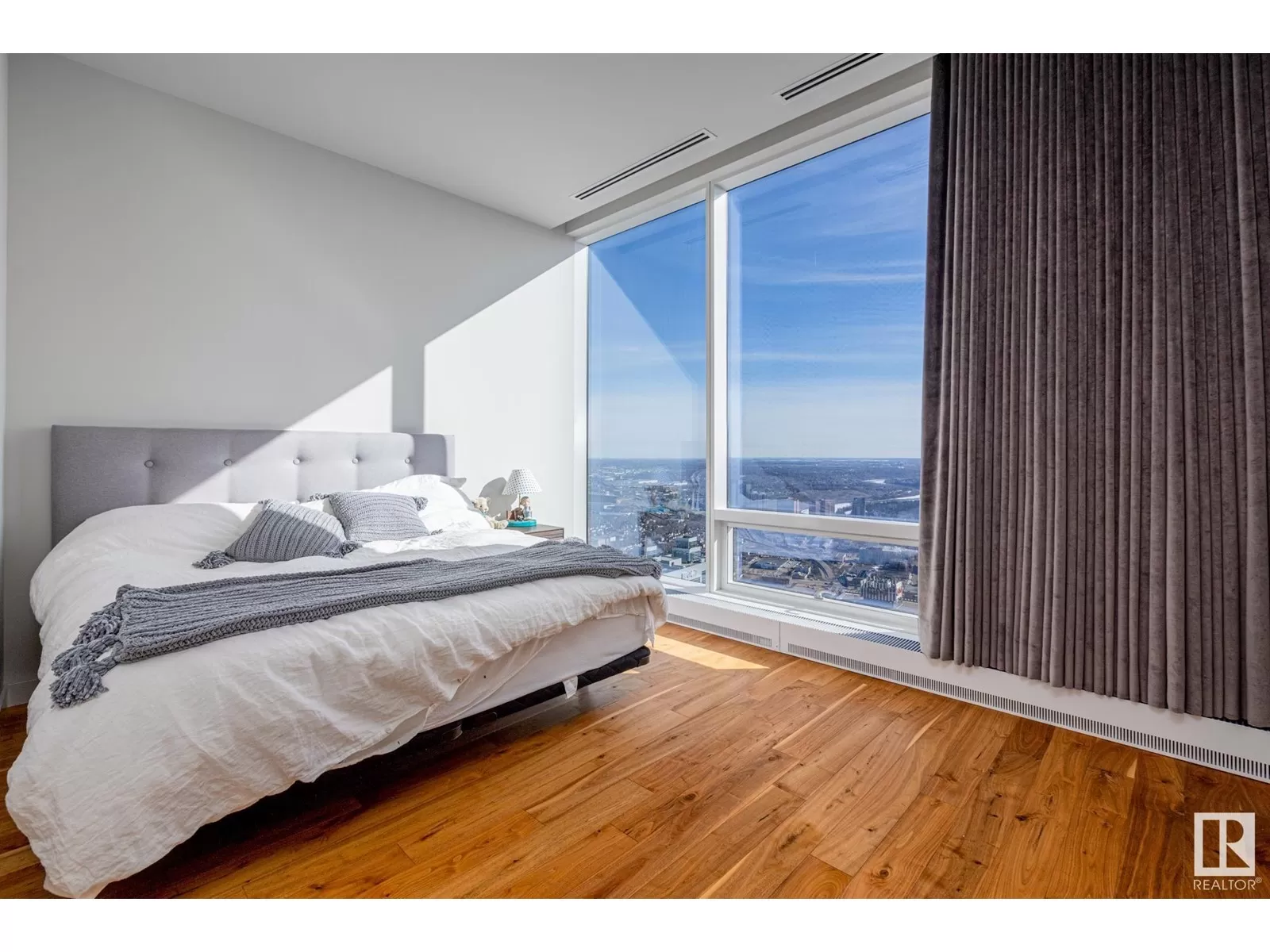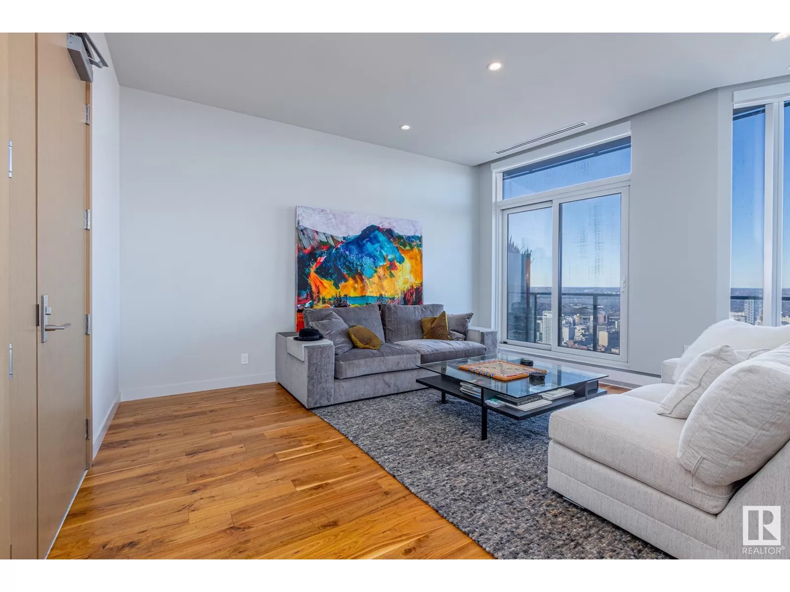 Amazing opportunity to own this fully furnished 52nd floor penthouse in Edmonton's most exclusive condo development, The Legends Private Residences. This spacious & well-designed floorplan has over 3,300 sf of living space which extends to a 730 sf covered terrace. Expansive window walls throughout allows light to cascade through this incredible suite. 270 degree view! Premium features include; 10 ft ceilings, hardwood flooring, 2 primary bedrooms with ensuites, spacious den with wet bar, roomy office space, 2 & 1/2 baths, premium appliance package, power window coverings and much more!! 3 underground parking stalls & storage space included! Located in the heart of ICE District with a walk-indoor experience pedway directly to Rogers Place. World class JW Marriott shared facilities include; relaxing spa with indoor pool & steam room, ARCHETYPE fitness membership, 24/7 concierge & security, valet and dining services available. Truly a living experience that is unmatched in the City of Edmonton! (id:27476)