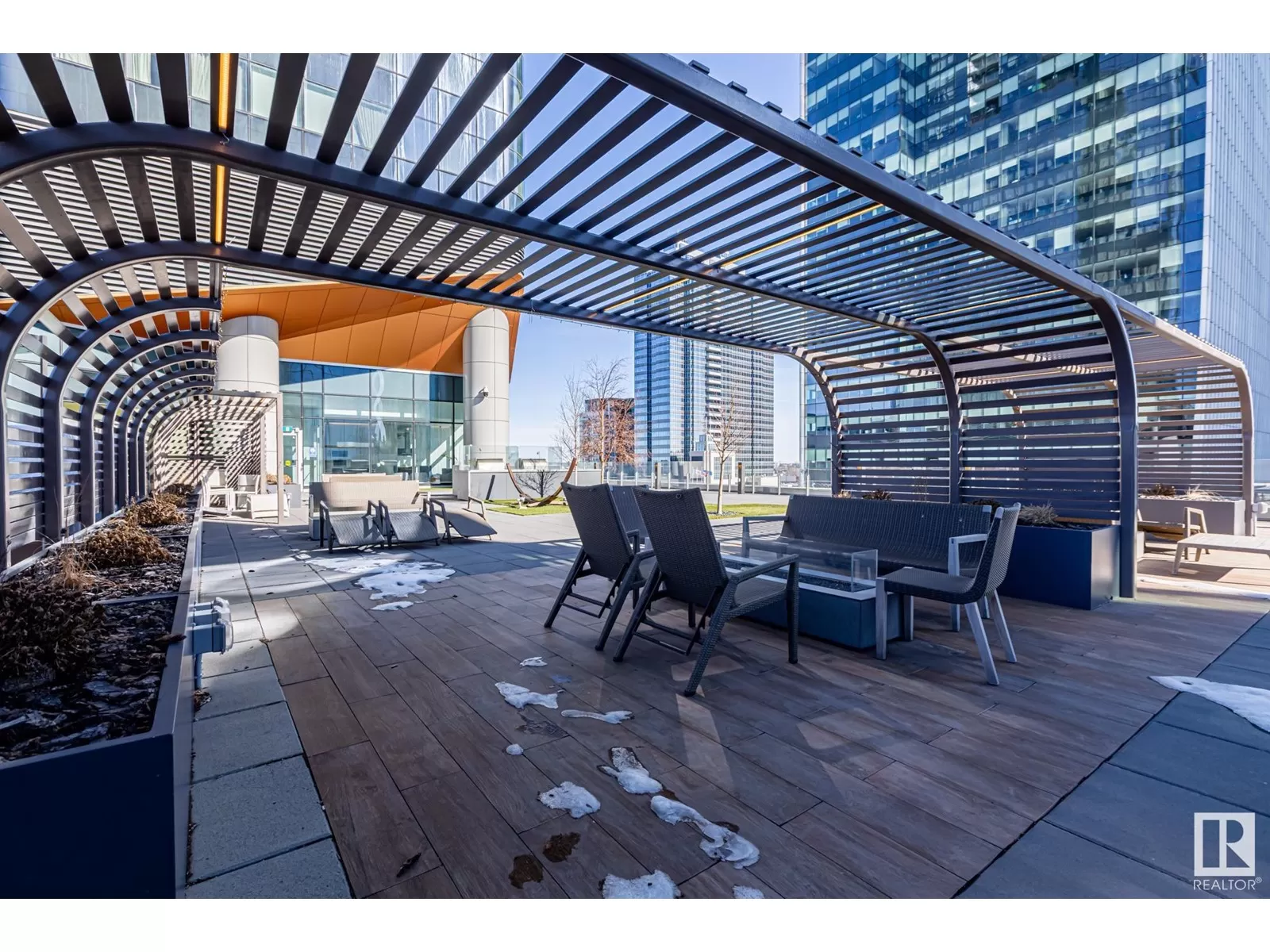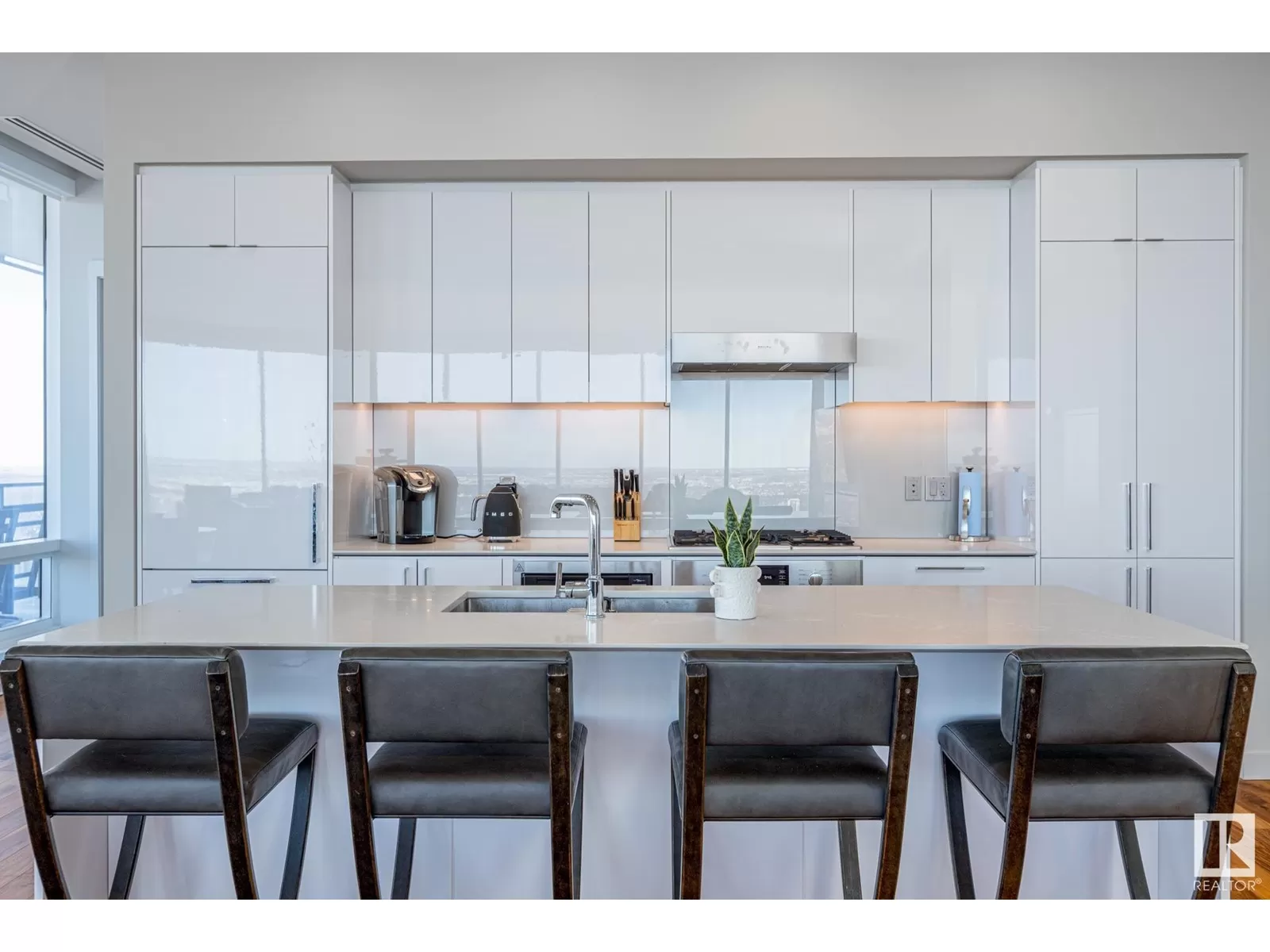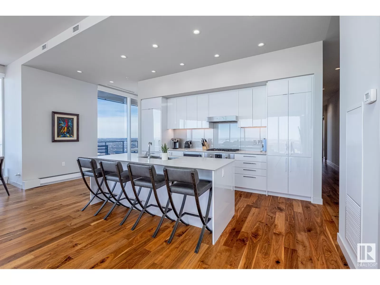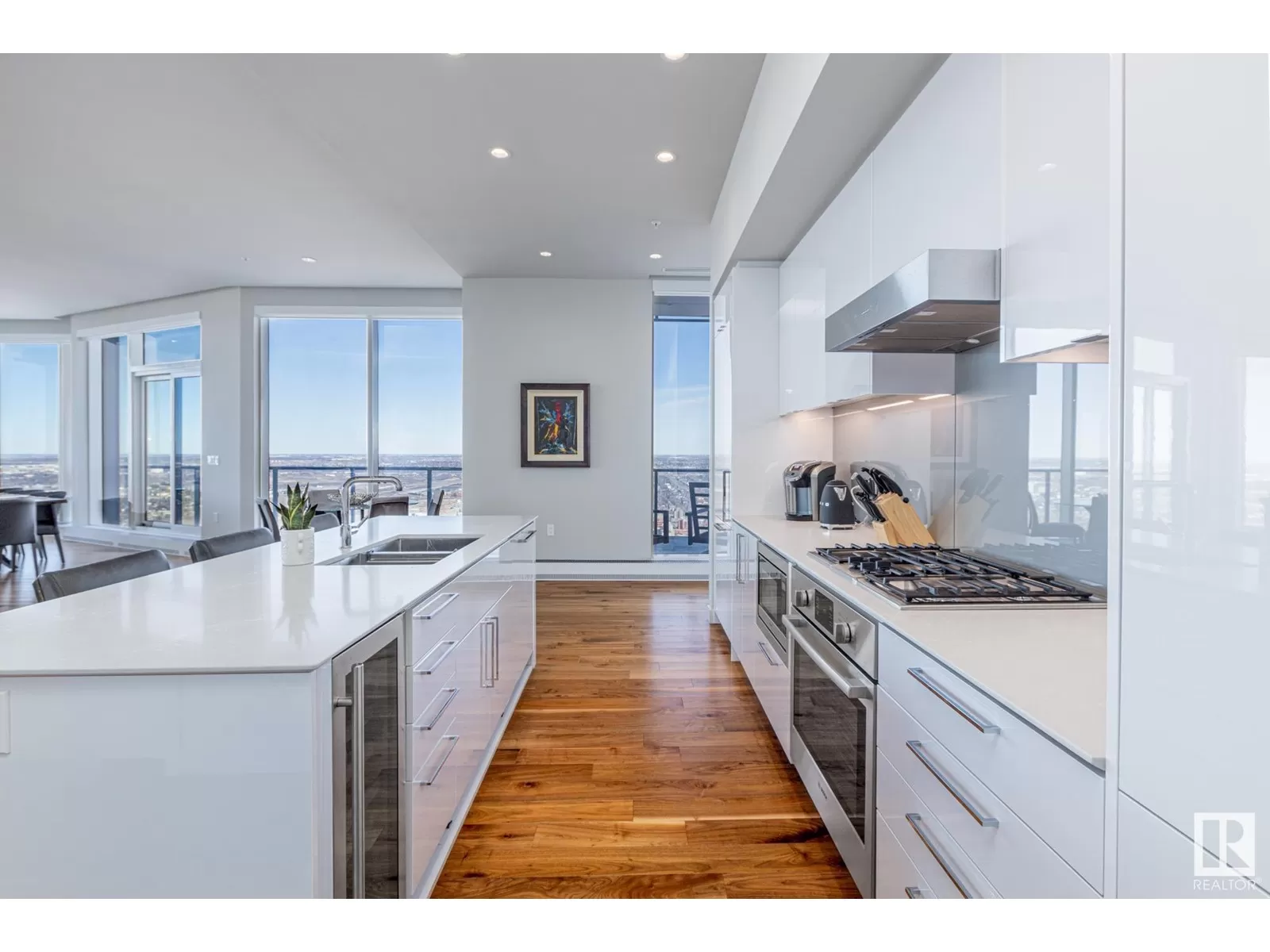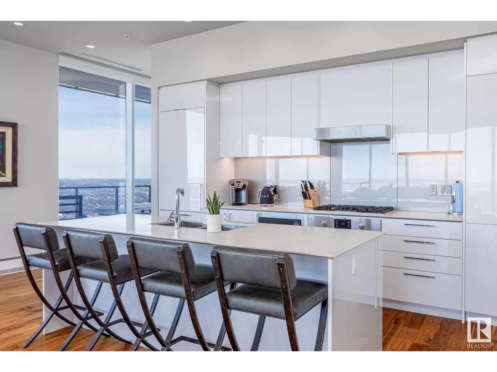 Amazing opportunity to own this fully furnished 52nd floor penthouse in Edmonton's most exclusive condo development, The Legends Private Residences. This spacious & well-designed floorplan has over 3,300 sf of living space which extends to a 730 sf covered terrace. Expansive window walls throughout allows light to cascade through this incredible suite. 270 degree view! Premium features include; 10 ft ceilings, hardwood flooring, 2 primary bedrooms with ensuites, spacious den with wet bar, roomy office space, 2 & 1/2 baths, premium appliance package, power window coverings and much more!! 3 underground parking stalls & storage space included! Located in the heart of ICE District with a walk-indoor experience pedway directly to Rogers Place. World class JW Marriott shared facilities include; relaxing spa with indoor pool & steam room, ARCHETYPE fitness membership, 24/7 concierge & security, valet and dining services available. Truly a living experience that is unmatched in the City of Edmonton! (id:27476)