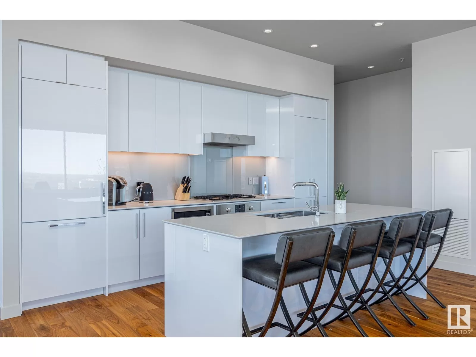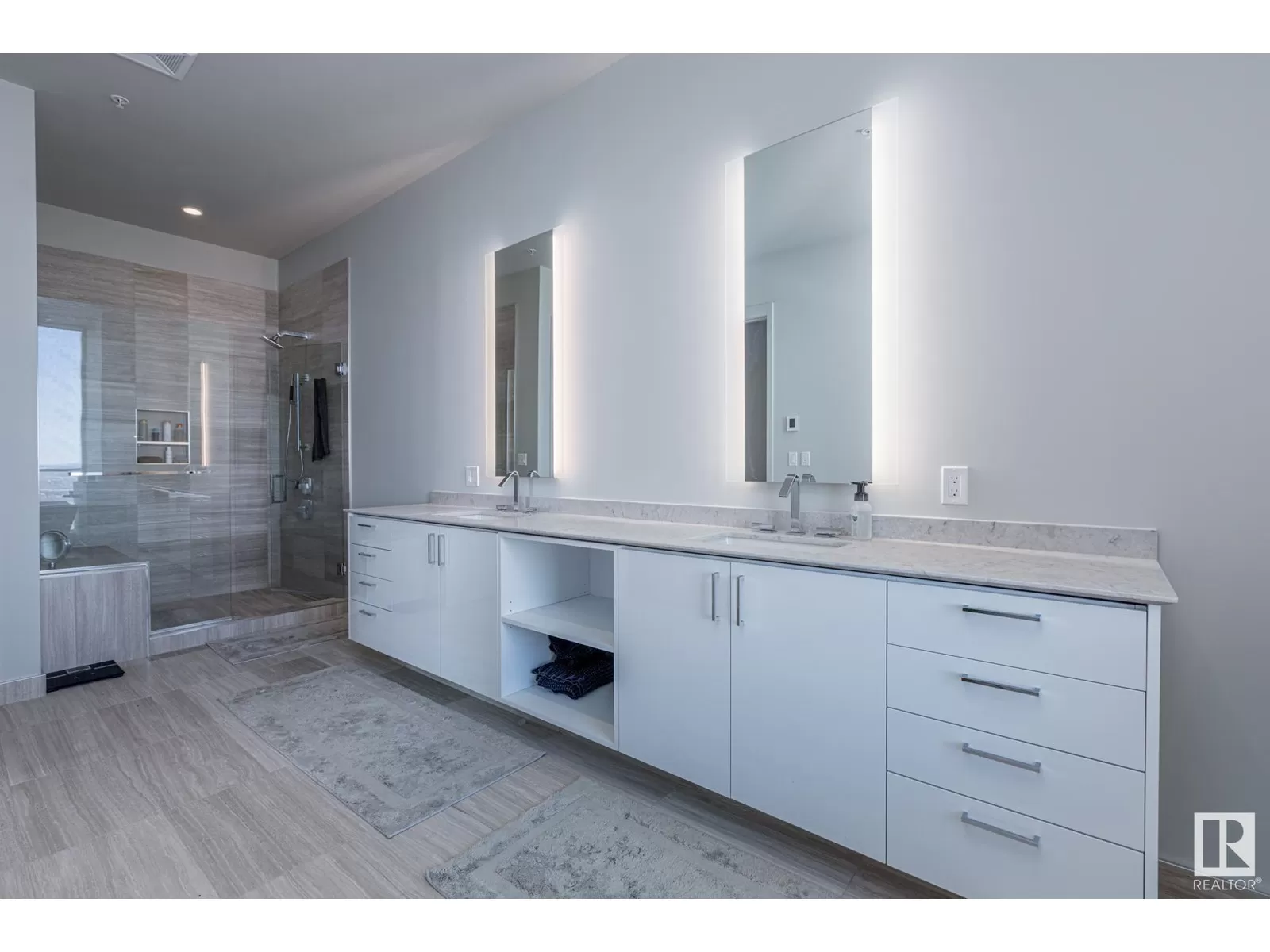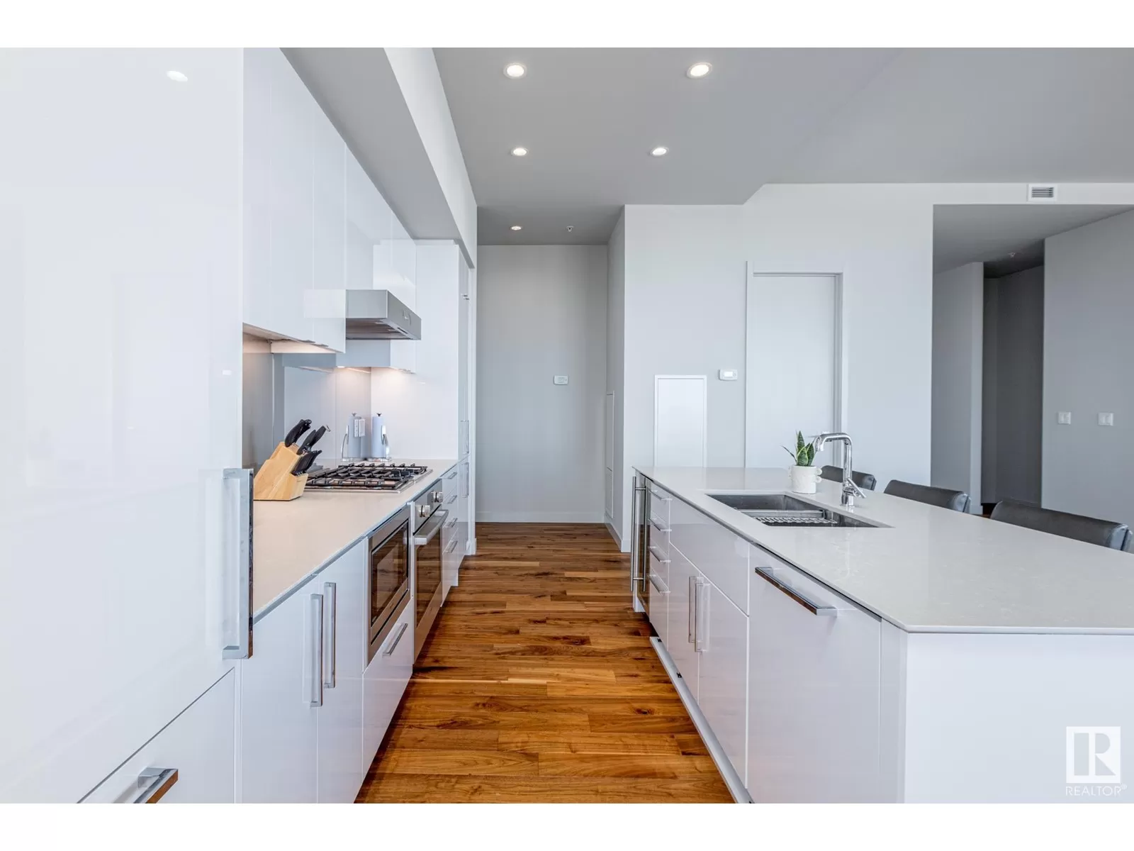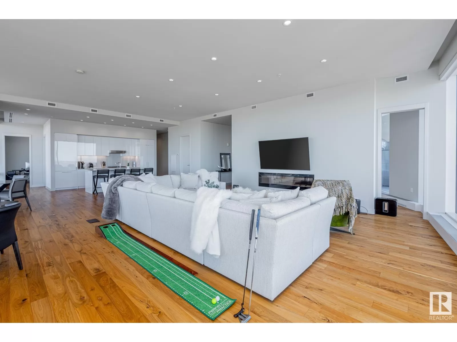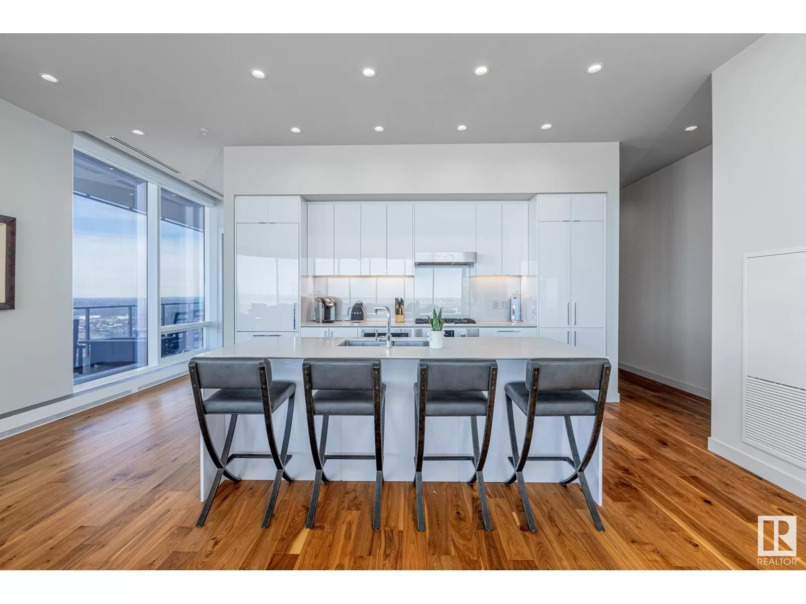 Amazing opportunity to own this fully furnished 52nd floor penthouse in Edmonton's most exclusive condo development, The Legends Private Residences. This spacious & well-designed floorplan has over 3,300 sf of living space which extends to a 730 sf covered terrace. Expansive window walls throughout allows light to cascade through this incredible suite. 270 degree view! Premium features include; 10 ft ceilings, hardwood flooring, 2 primary bedrooms with ensuites, spacious den with wet bar, roomy office space, 2 & 1/2 baths, premium appliance package, power window coverings and much more!! 3 underground parking stalls & storage space included! Located in the heart of ICE District with a walk-indoor experience pedway directly to Rogers Place. World class JW Marriott shared facilities include; relaxing spa with indoor pool & steam room, ARCHETYPE fitness membership, 24/7 concierge & security, valet and dining services available. Truly a living experience that is unmatched in the City of Edmonton! (id:27476)