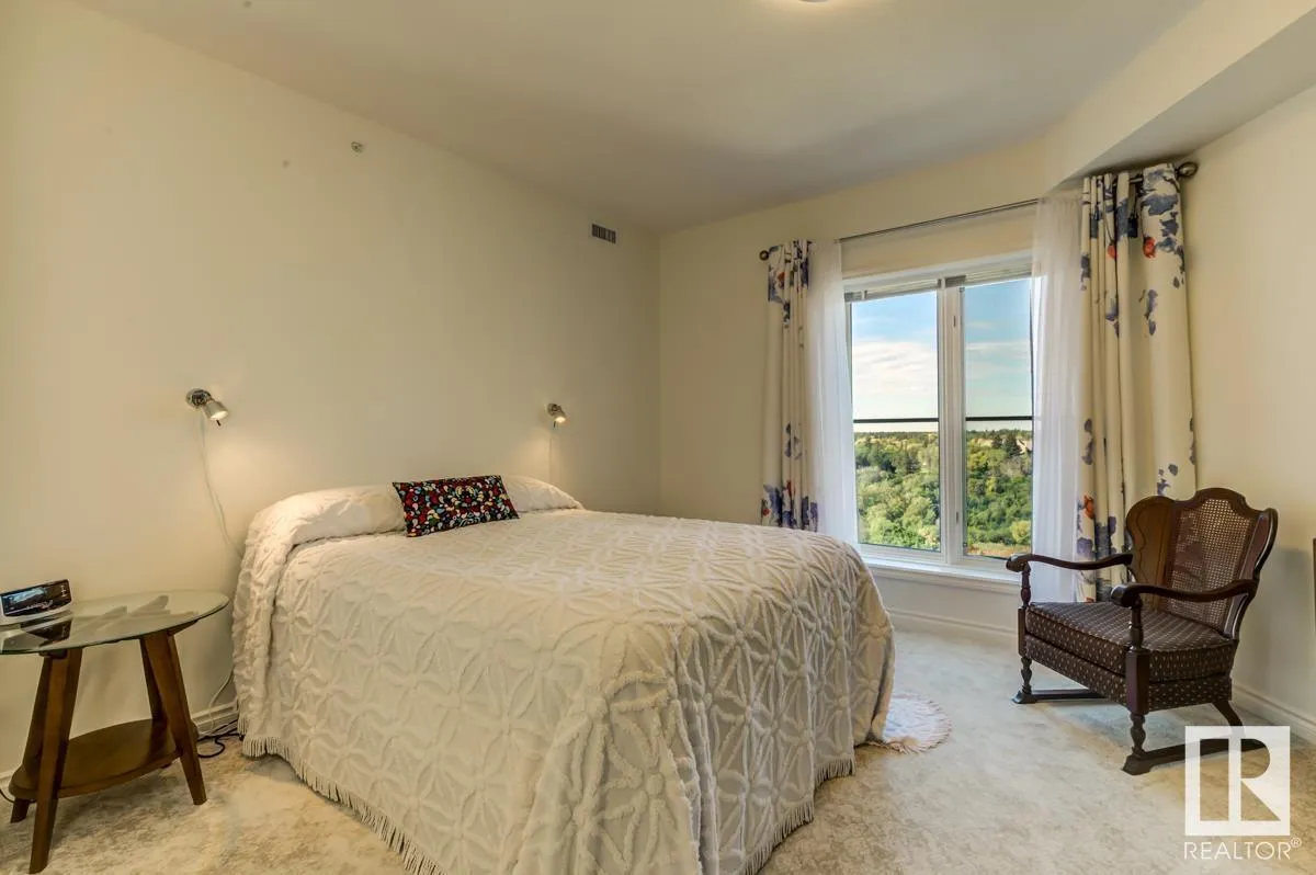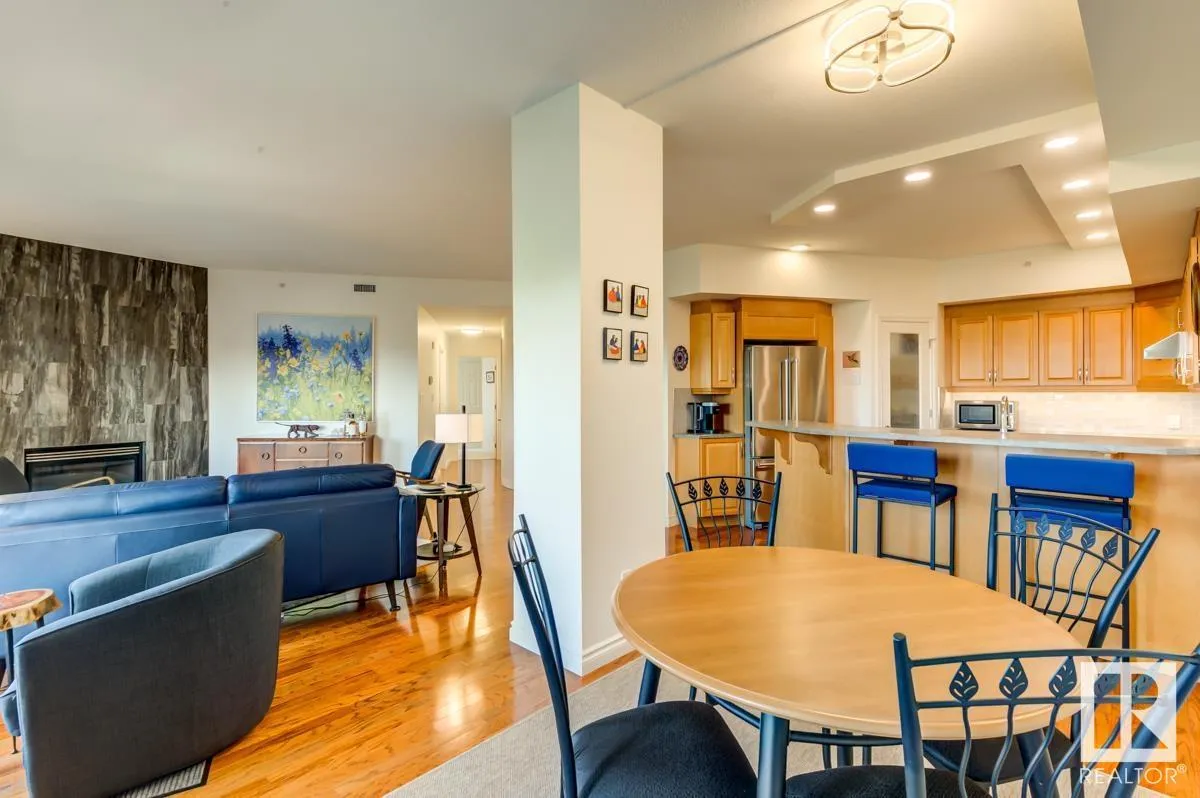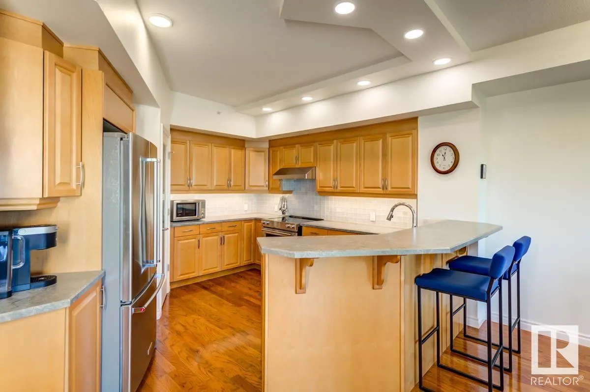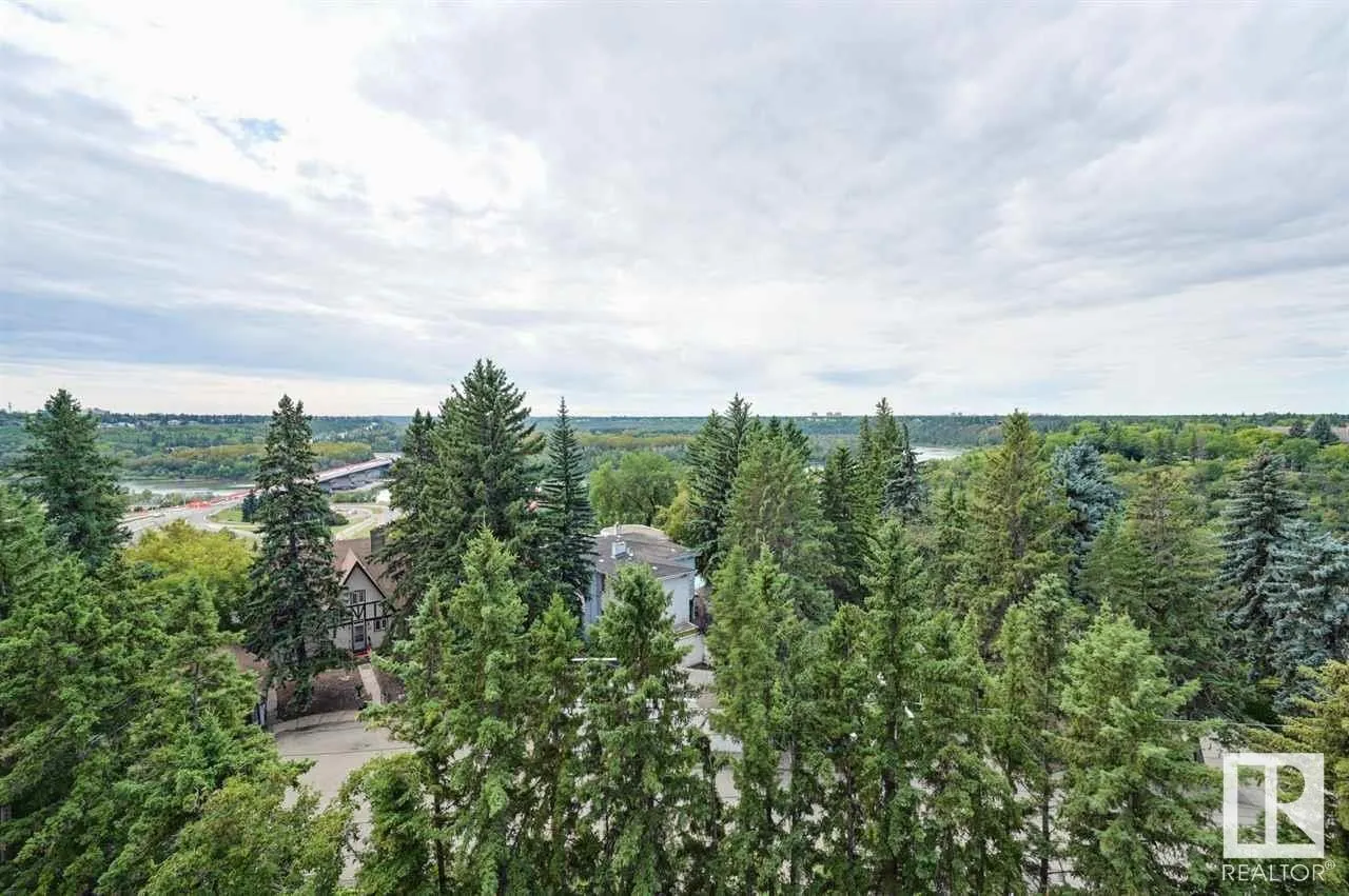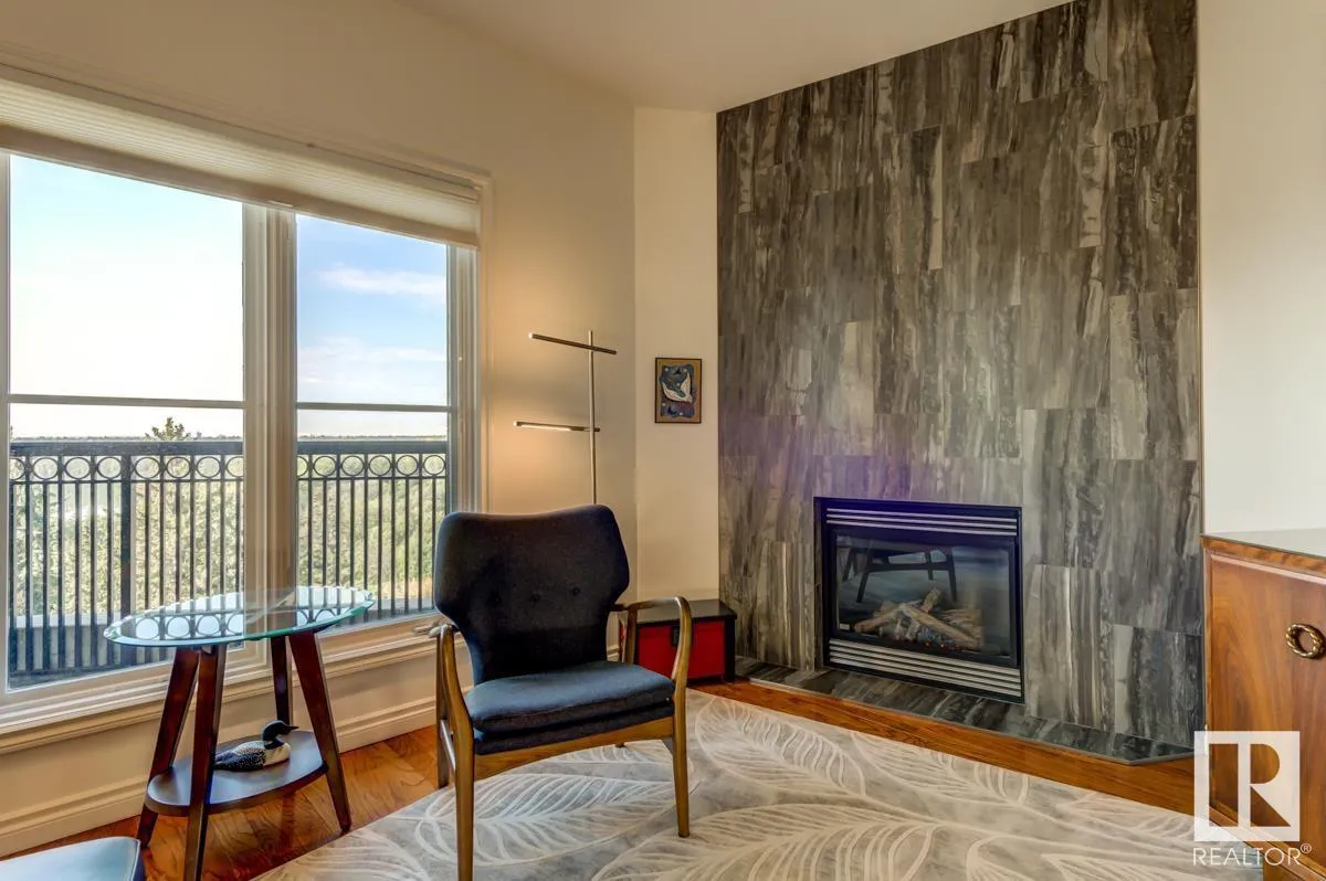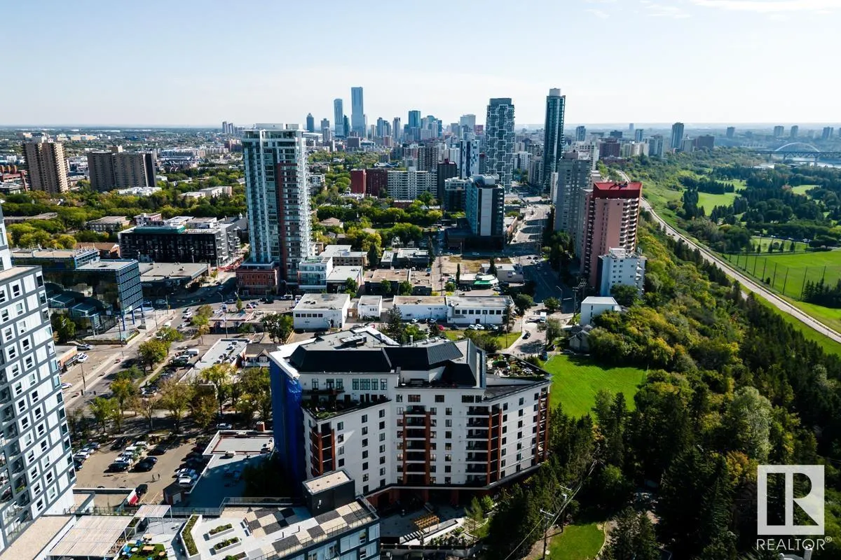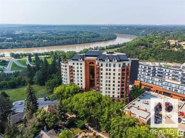 STUNNING RIVER VALLEY VIEW in this Professionally Renovated 2 bed - 2 bath property in Exclusive âProperties on High Streetâ Upon entry, youâre graced with 9-foot ceilings & an instant River Valley View that spans your entire living space! The gorgeous kitchen boasts extensive cabinets by Kitchen Craft, walk-in pantry, generous counter space & breakfast bar. No expense was spared in the renovations including both luxurious spa like bathrooms, Ceilings completely redone throughout, LED & pot lighting installed, glass tile backsplash, new countertops, under cupboard lighting, tiled fireplace feature wall, complete furnace & AC HVAC system replacement. Just steps to all the shops & restaurants 124th & High Street have to offer with Rogers Place Arena, Winspear Concert Hall & Citadel Theatre at your fingertips. Additionally, there is a gas BBQ outlet on your patio, plenty of visitor parking & amenities including an exercise room & spacious outdoor main floor patio area overlooking the River Valley (id:27476)