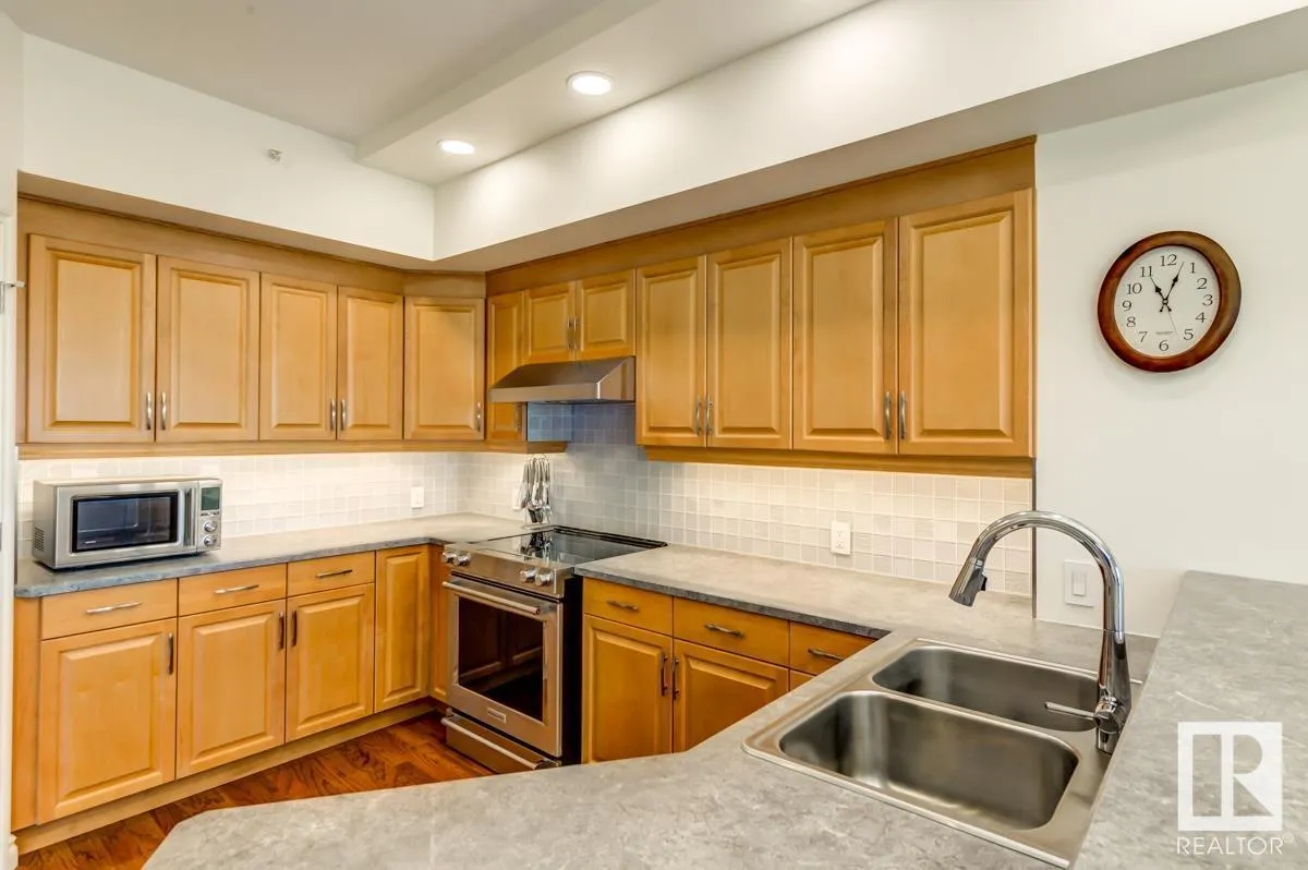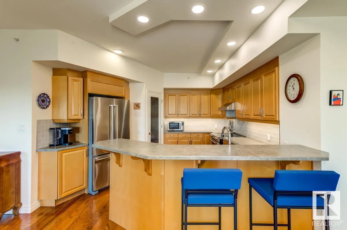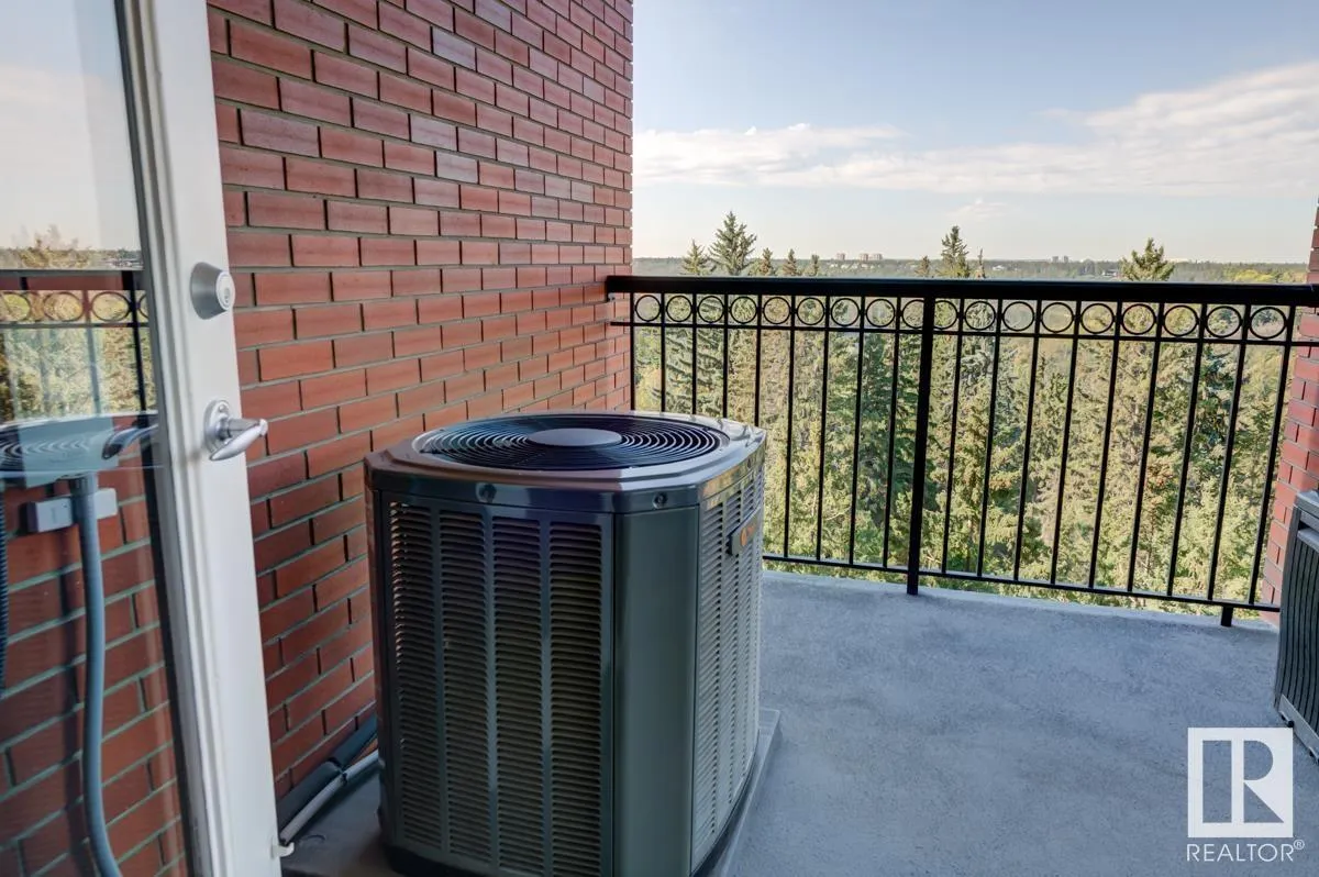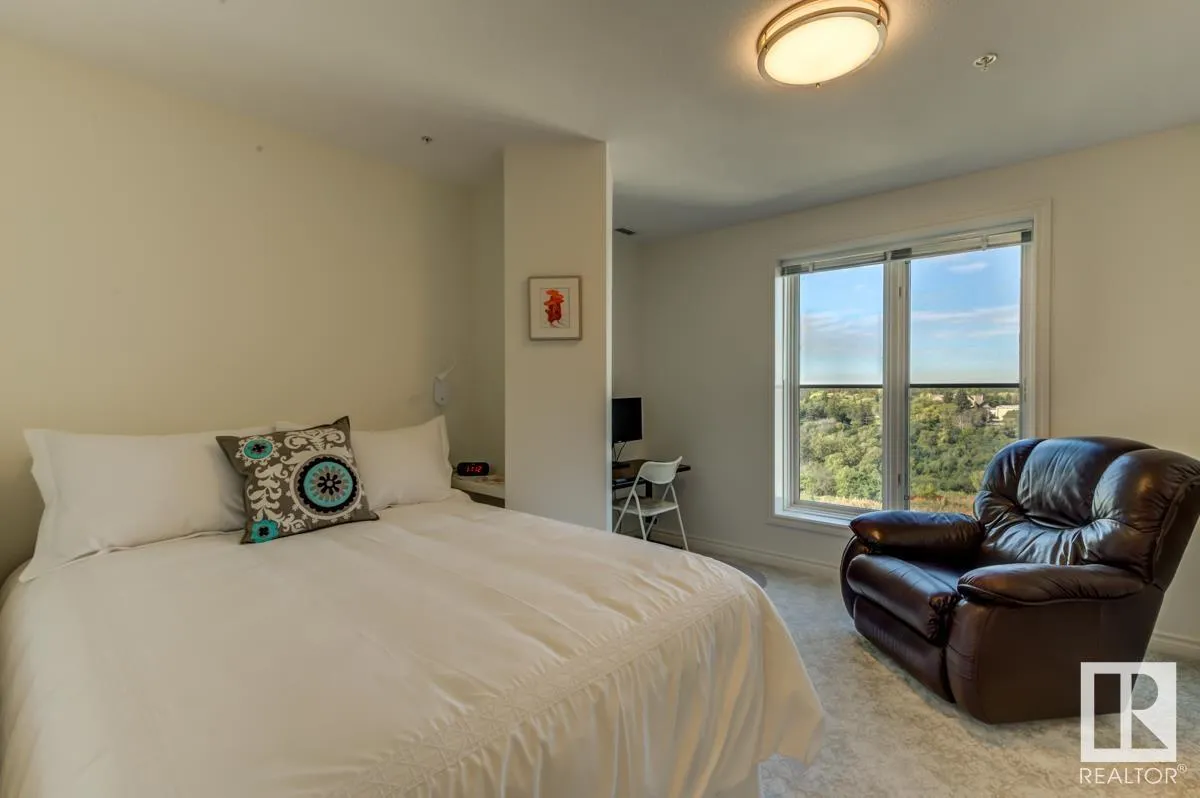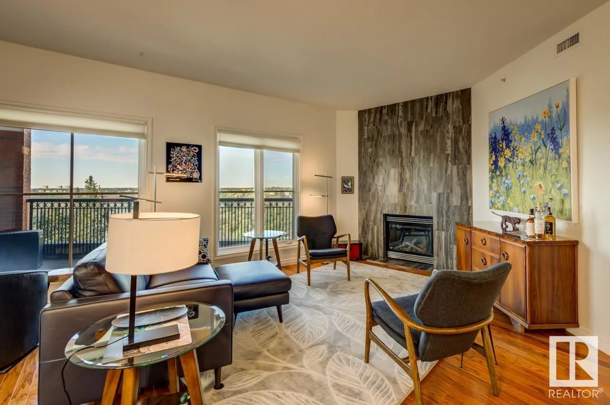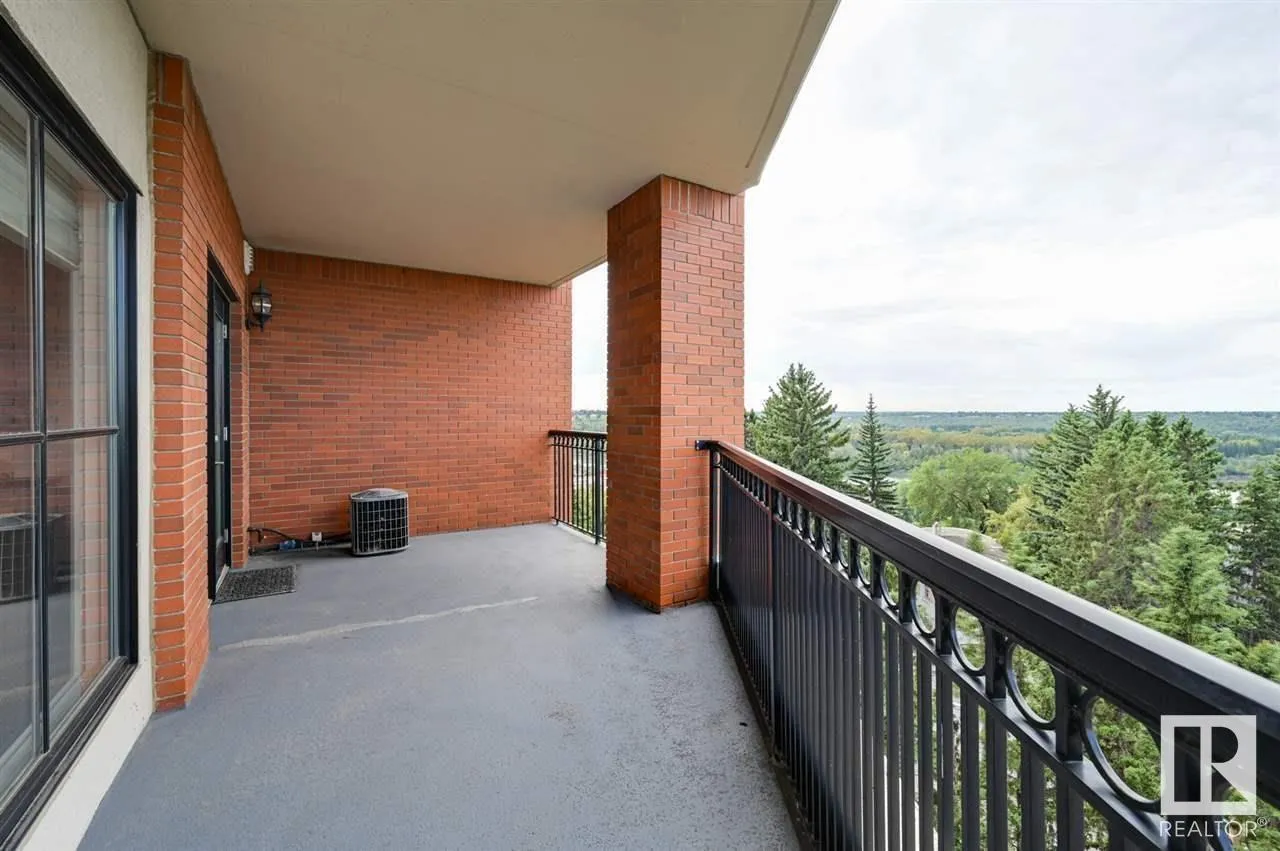 STUNNING RIVER VALLEY VIEW in this Professionally Renovated 2 bed - 2 bath property in Exclusive âProperties on High Streetâ Upon entry, youâre graced with 9-foot ceilings & an instant River Valley View that spans your entire living space! The gorgeous kitchen boasts extensive cabinets by Kitchen Craft, walk-in pantry, generous counter space & breakfast bar. No expense was spared in the renovations including both luxurious spa like bathrooms, Ceilings completely redone throughout, LED & pot lighting installed, glass tile backsplash, new countertops, under cupboard lighting, tiled fireplace feature wall, complete furnace & AC HVAC system replacement. Just steps to all the shops & restaurants 124th & High Street have to offer with Rogers Place Arena, Winspear Concert Hall & Citadel Theatre at your fingertips. Additionally, there is a gas BBQ outlet on your patio, plenty of visitor parking & amenities including an exercise room & spacious outdoor main floor patio area overlooking the River Valley (id:27476)