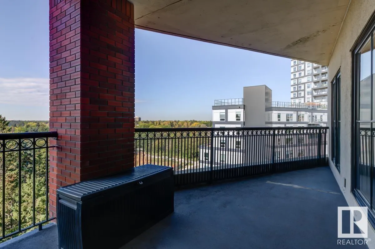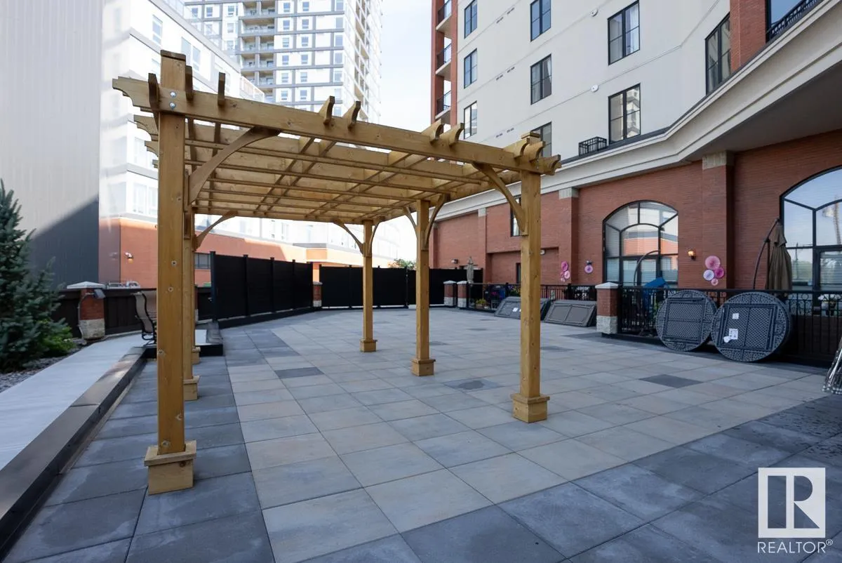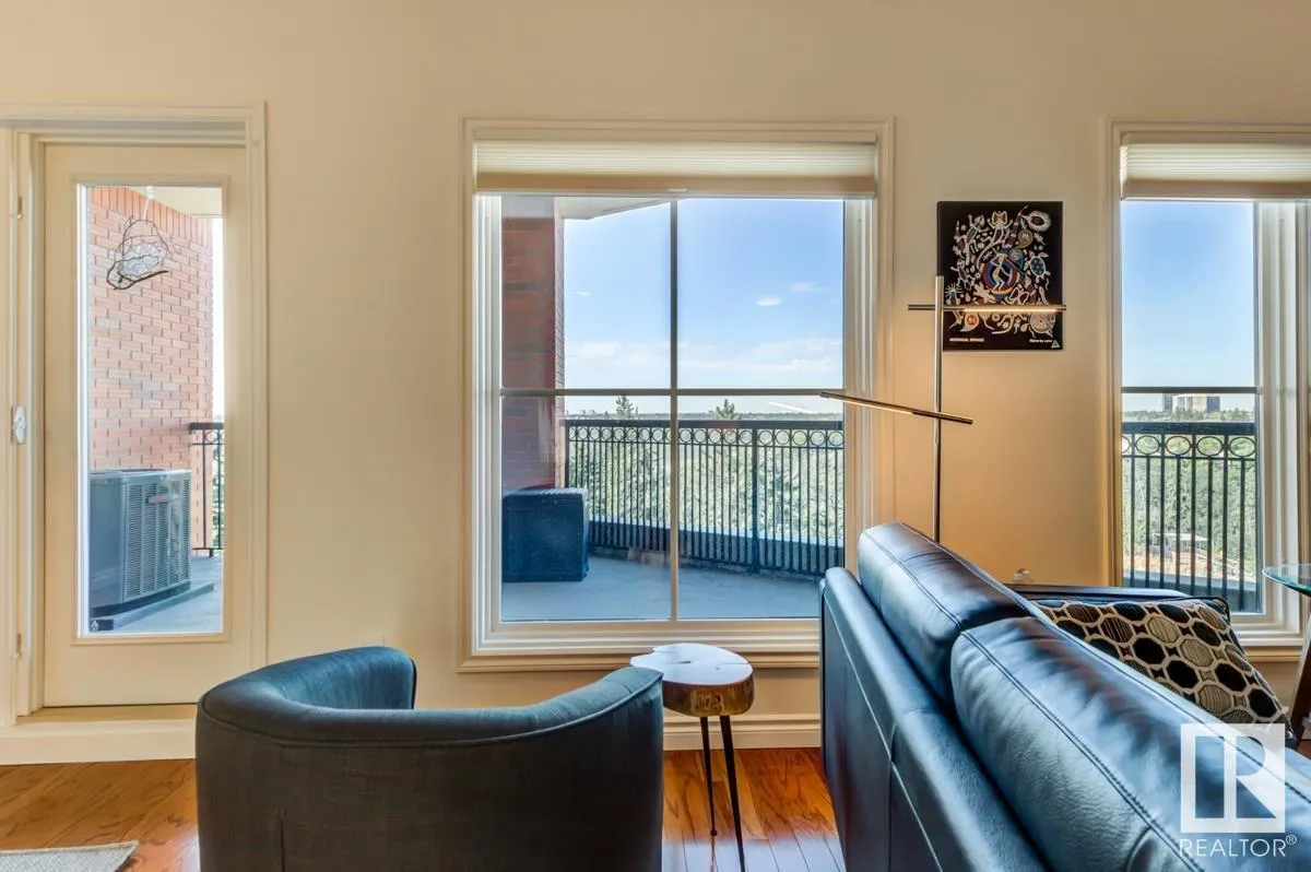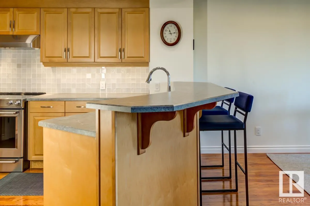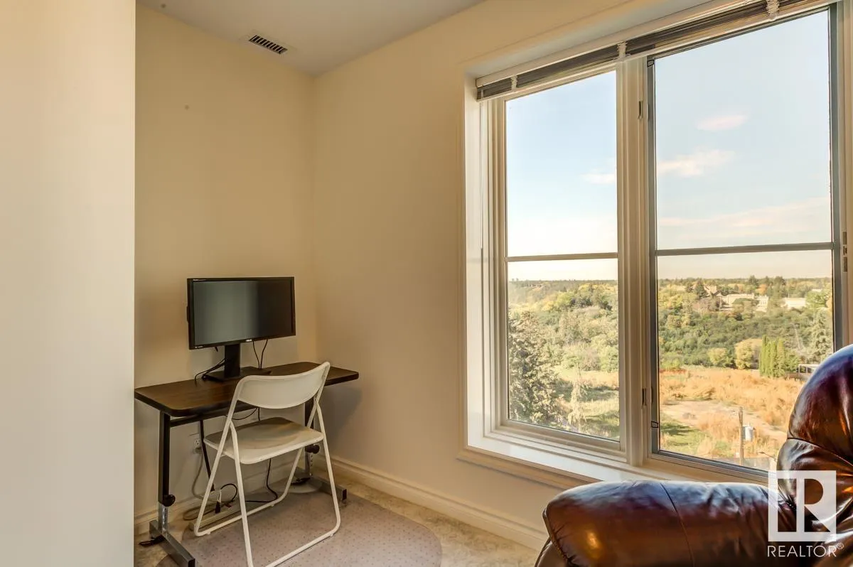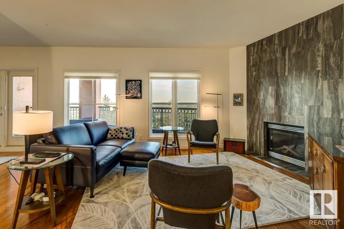STUNNING RIVER VALLEY VIEW in this Professionally Renovated 2 bed - 2 bath property in Exclusive âProperties on High Streetâ Upon entry, youâre graced with 9-foot ceilings & an instant River Valley View that spans your entire living space! The gorgeous kitchen boasts extensive cabinets by Kitchen Craft, walk-in pantry, generous counter space & breakfast bar. No expense was spared in the renovations including both luxurious spa like bathrooms, Ceilings completely redone throughout, LED & pot lighting installed, glass tile backsplash, new countertops, under cupboard lighting, tiled fireplace feature wall, complete furnace & AC HVAC system replacement. Just steps to all the shops & restaurants 124th & High Street have to offer with Rogers Place Arena, Winspear Concert Hall & Citadel Theatre at your fingertips. Additionally, there is a gas BBQ outlet on your patio, plenty of visitor parking & amenities including an exercise room & spacious outdoor main floor patio area overlooking the River Valley (id:27476)