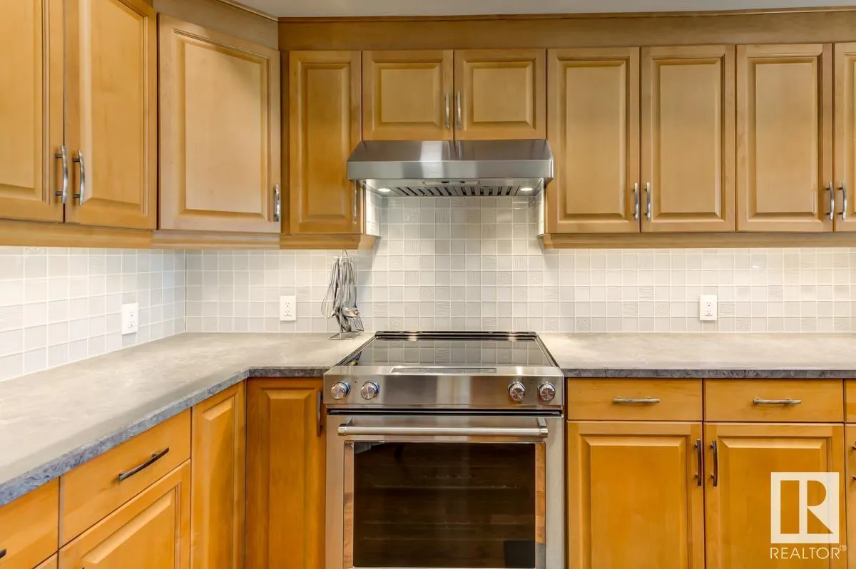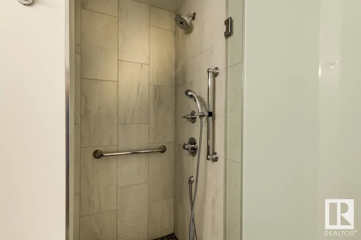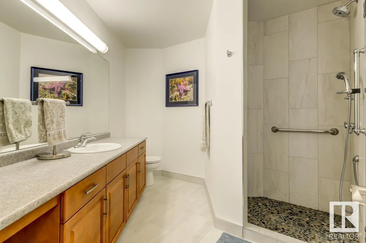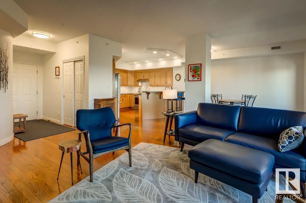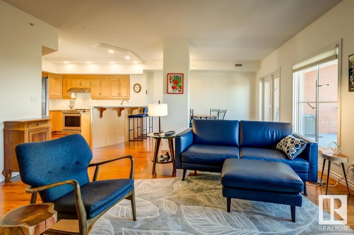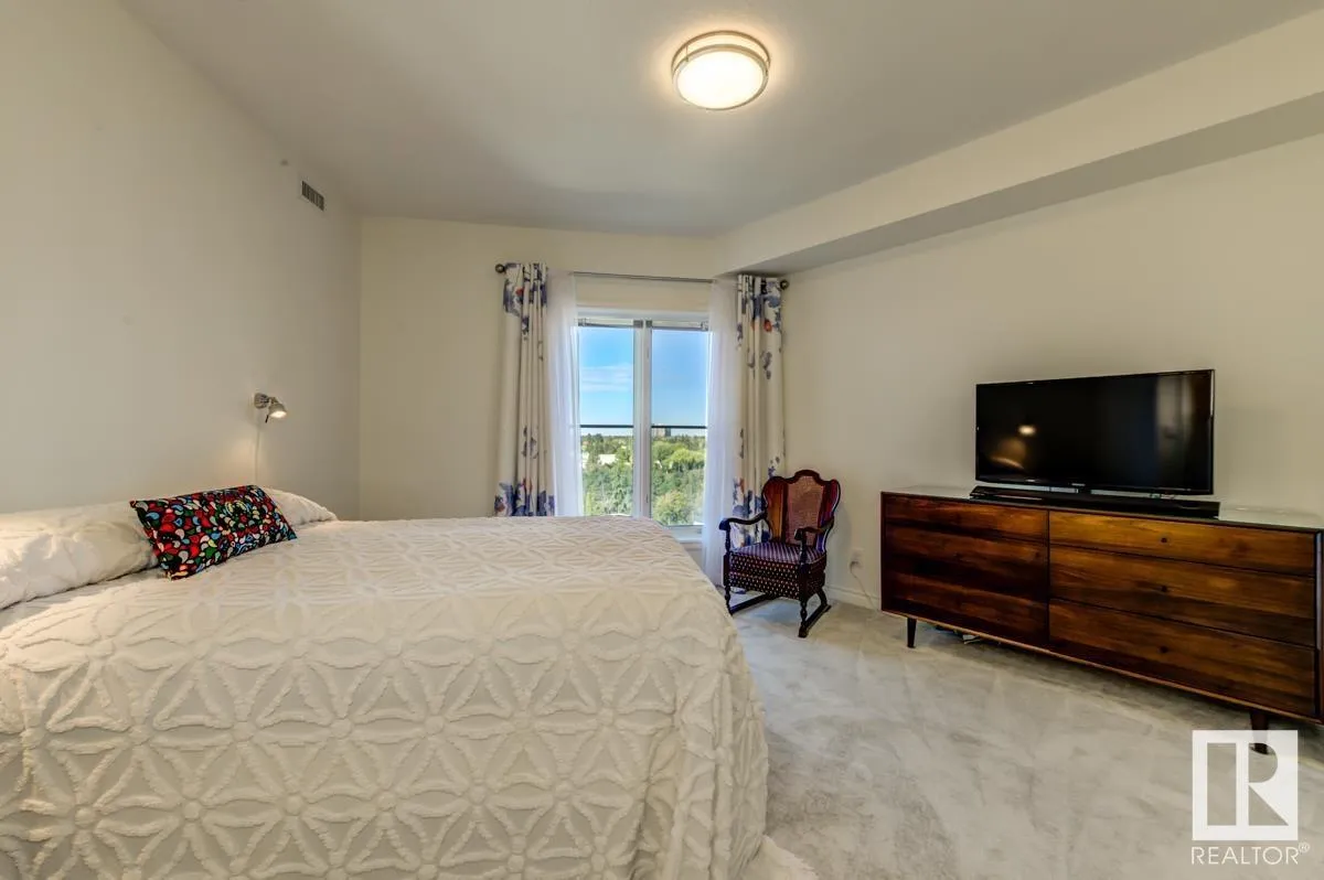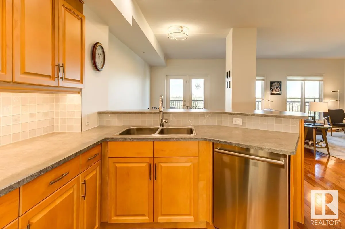 STUNNING RIVER VALLEY VIEW in this Professionally Renovated 2 bed - 2 bath property in Exclusive âProperties on High Streetâ Upon entry, youâre graced with 9-foot ceilings & an instant River Valley View that spans your entire living space! The gorgeous kitchen boasts extensive cabinets by Kitchen Craft, walk-in pantry, generous counter space & breakfast bar. No expense was spared in the renovations including both luxurious spa like bathrooms, Ceilings completely redone throughout, LED & pot lighting installed, glass tile backsplash, new countertops, under cupboard lighting, tiled fireplace feature wall, complete furnace & AC HVAC system replacement. Just steps to all the shops & restaurants 124th & High Street have to offer with Rogers Place Arena, Winspear Concert Hall & Citadel Theatre at your fingertips. Additionally, there is a gas BBQ outlet on your patio, plenty of visitor parking & amenities including an exercise room & spacious outdoor main floor patio area overlooking the River Valley (id:27476)
