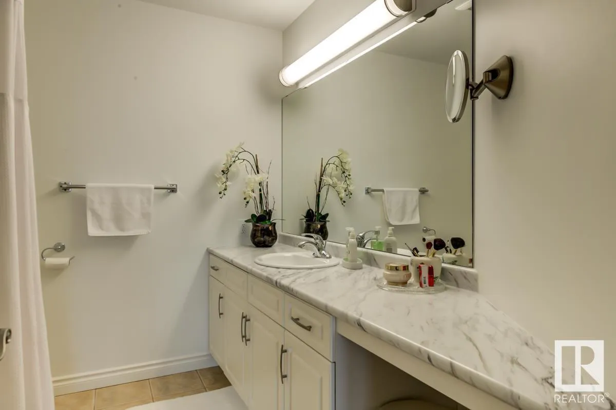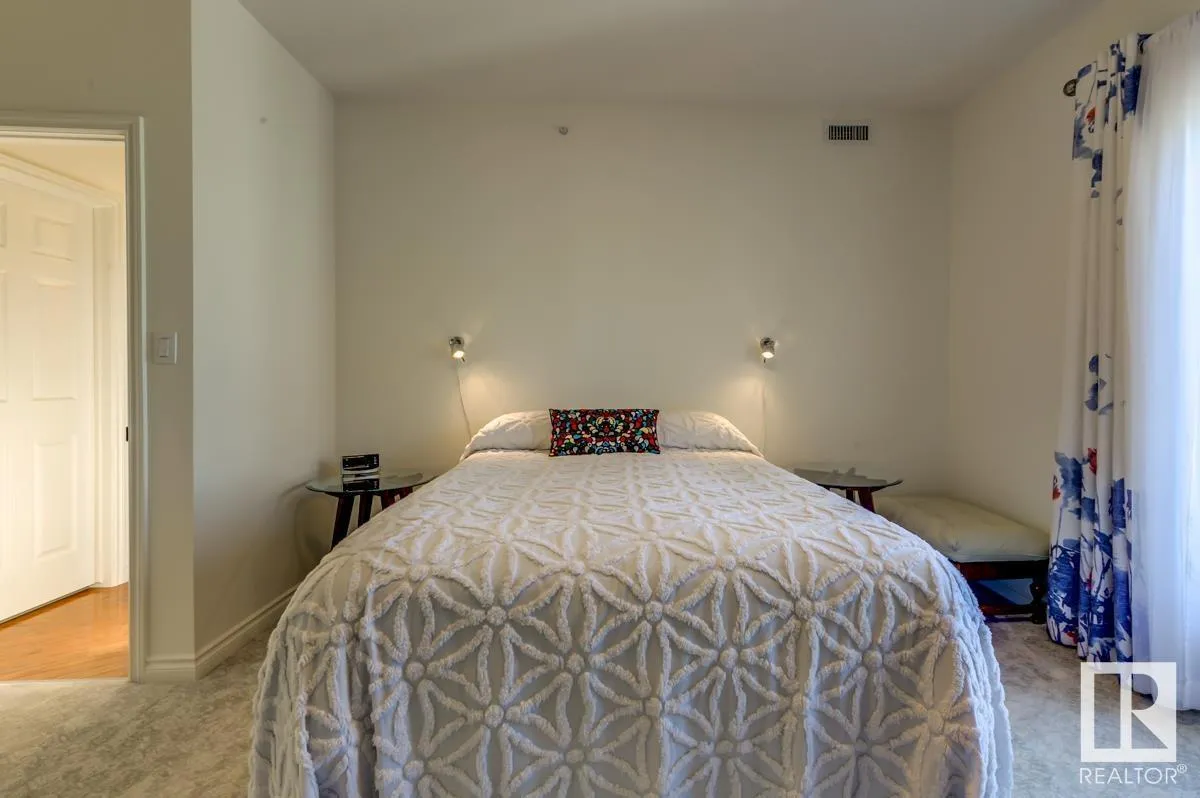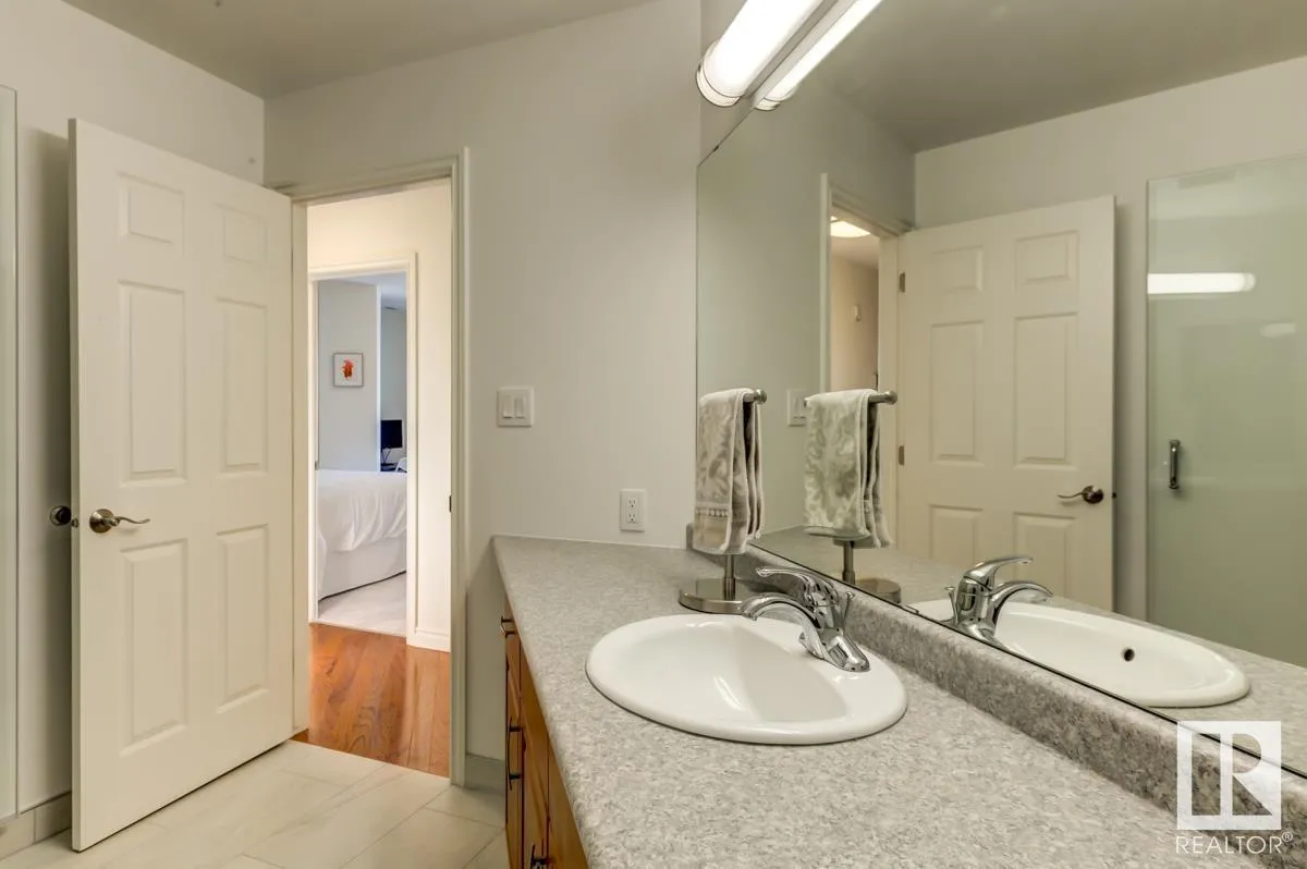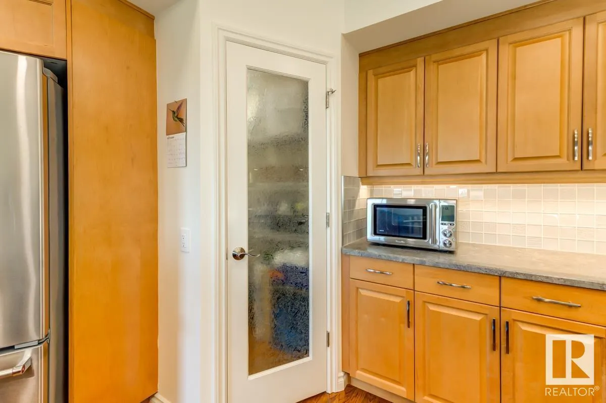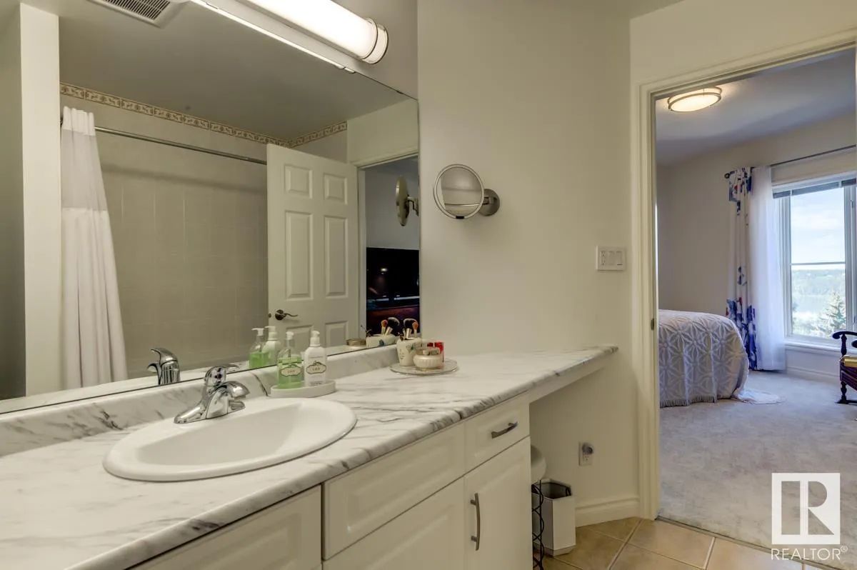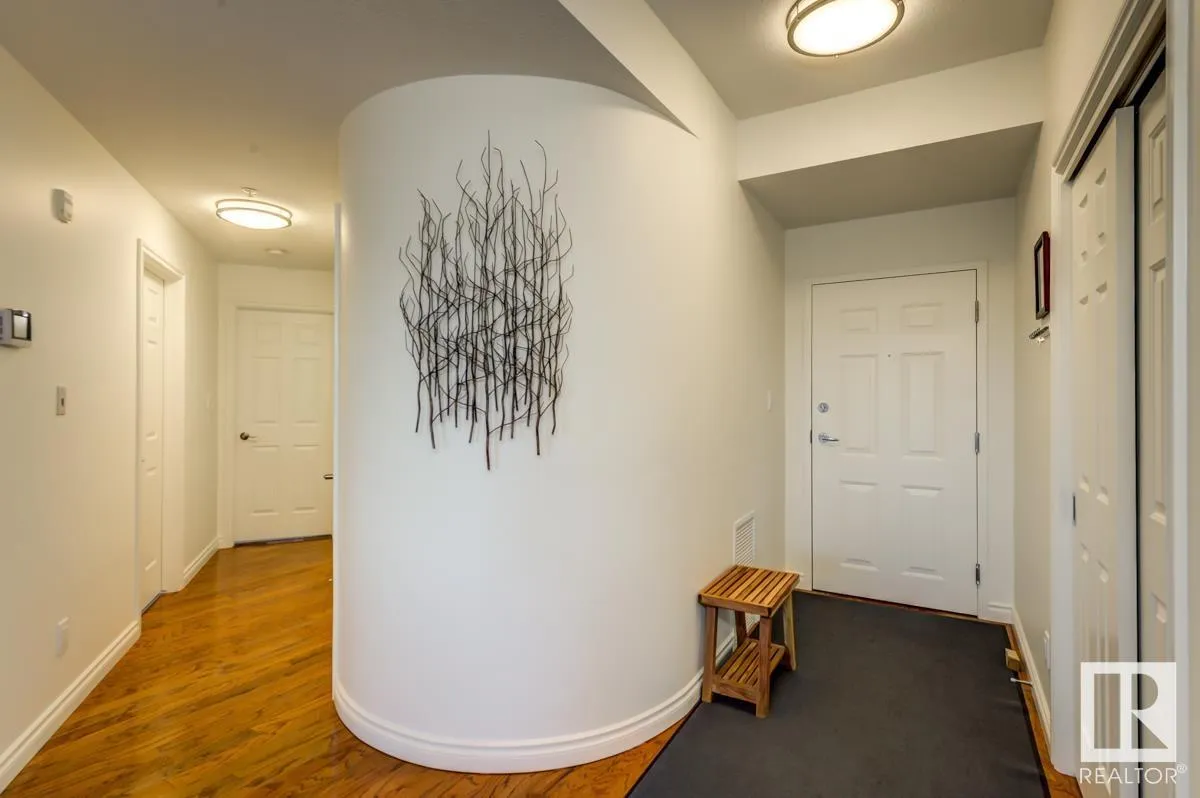 STUNNING RIVER VALLEY VIEW in this Professionally Renovated 2 bed - 2 bath property in Exclusive âProperties on High Streetâ Upon entry, youâre graced with 9-foot ceilings & an instant River Valley View that spans your entire living space! The gorgeous kitchen boasts extensive cabinets by Kitchen Craft, walk-in pantry, generous counter space & breakfast bar. No expense was spared in the renovations including both luxurious spa like bathrooms, Ceilings completely redone throughout, LED & pot lighting installed, glass tile backsplash, new countertops, under cupboard lighting, tiled fireplace feature wall, complete furnace & AC HVAC system replacement. Just steps to all the shops & restaurants 124th & High Street have to offer with Rogers Place Arena, Winspear Concert Hall & Citadel Theatre at your fingertips. Additionally, there is a gas BBQ outlet on your patio, plenty of visitor parking & amenities including an exercise room & spacious outdoor main floor patio area overlooking the River Valley (id:27476)
