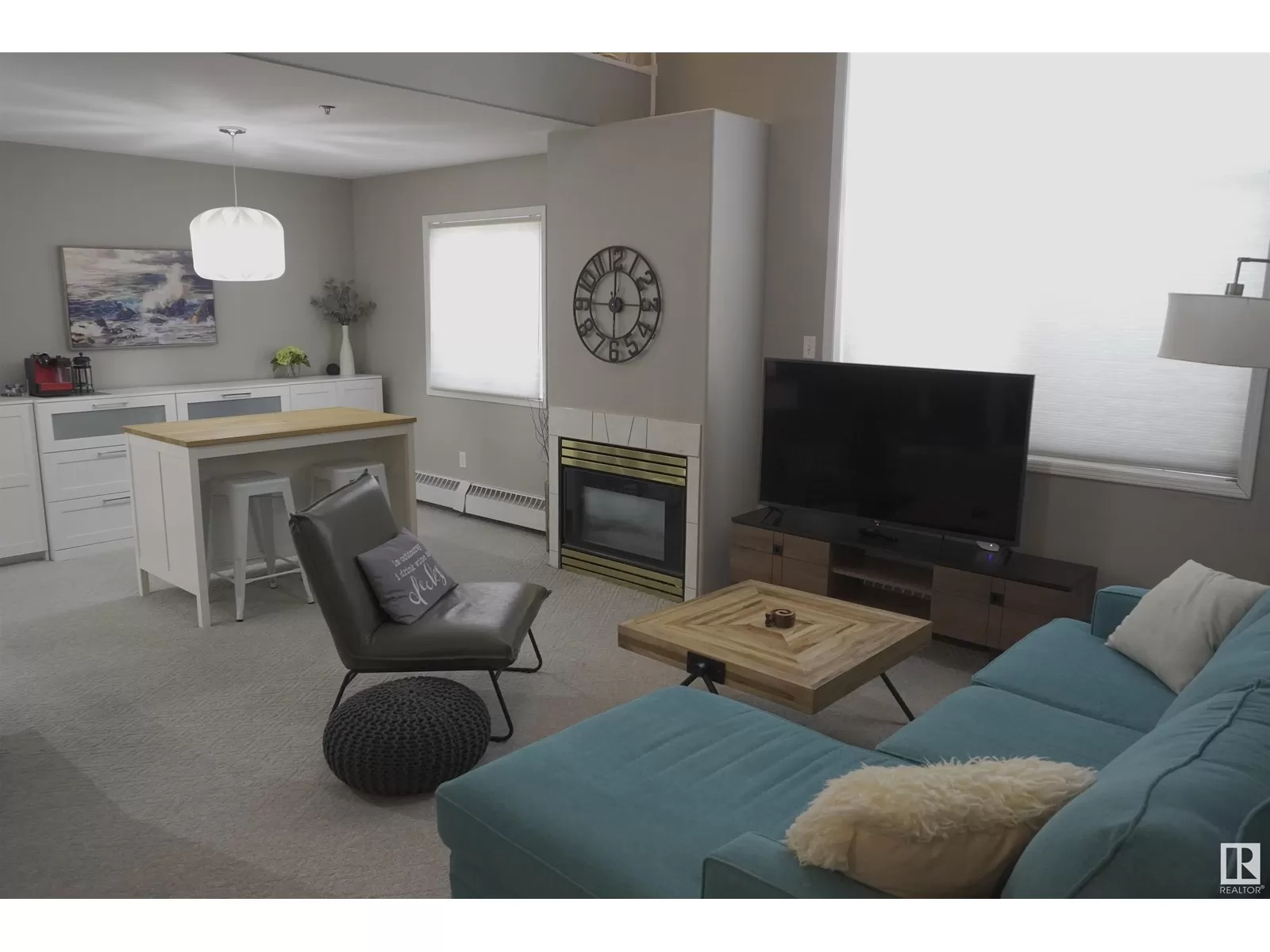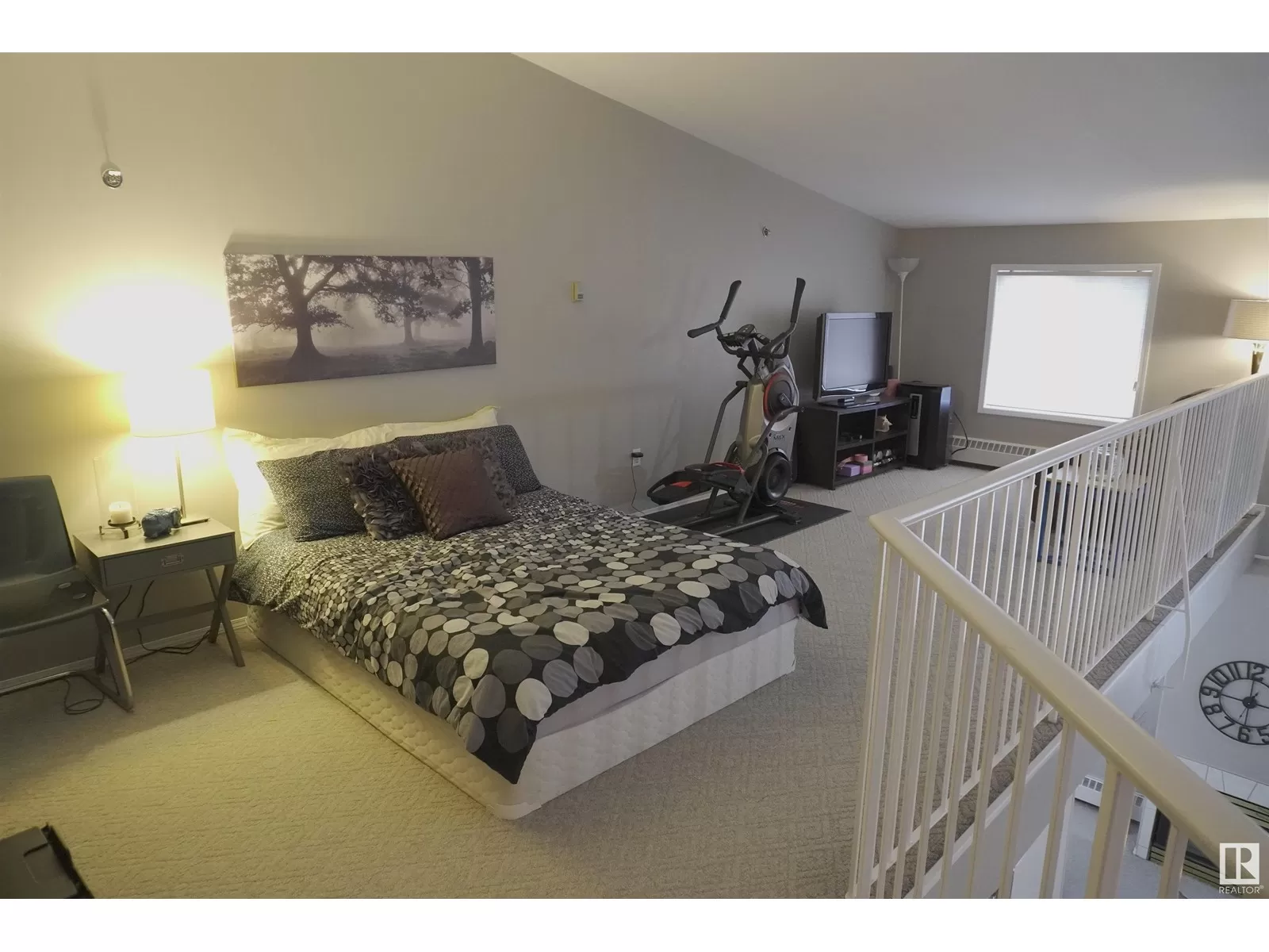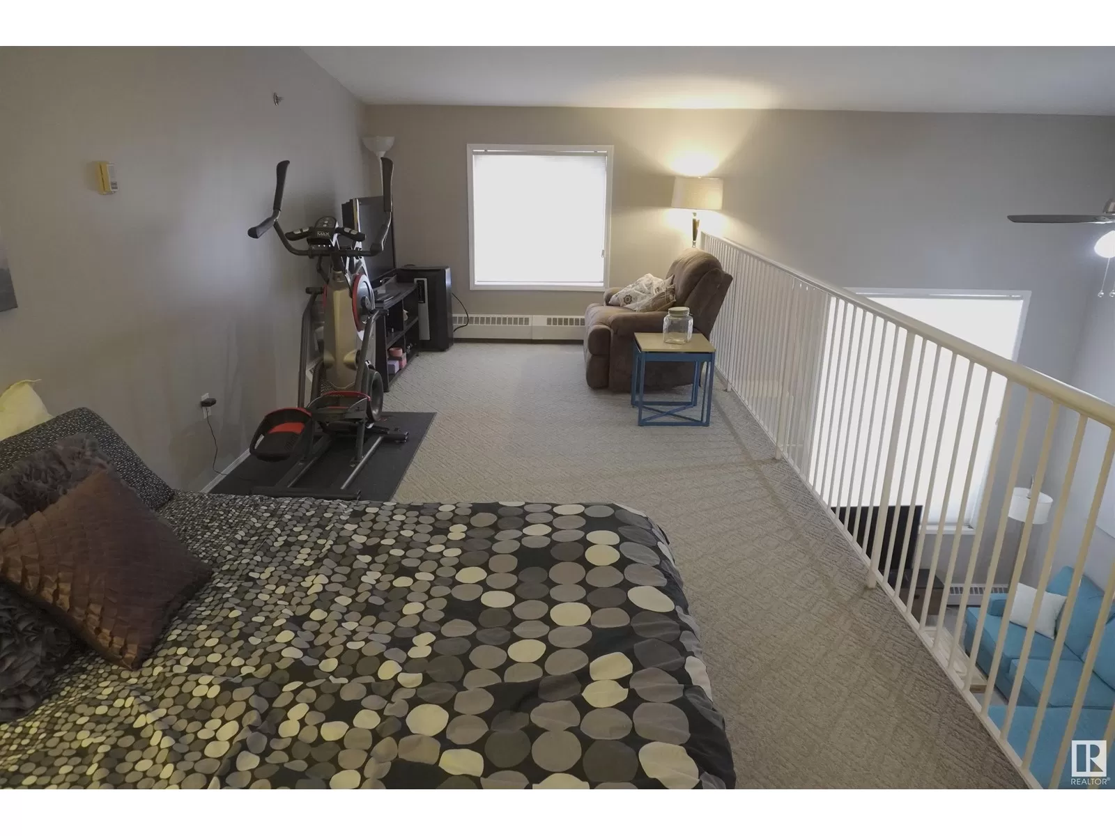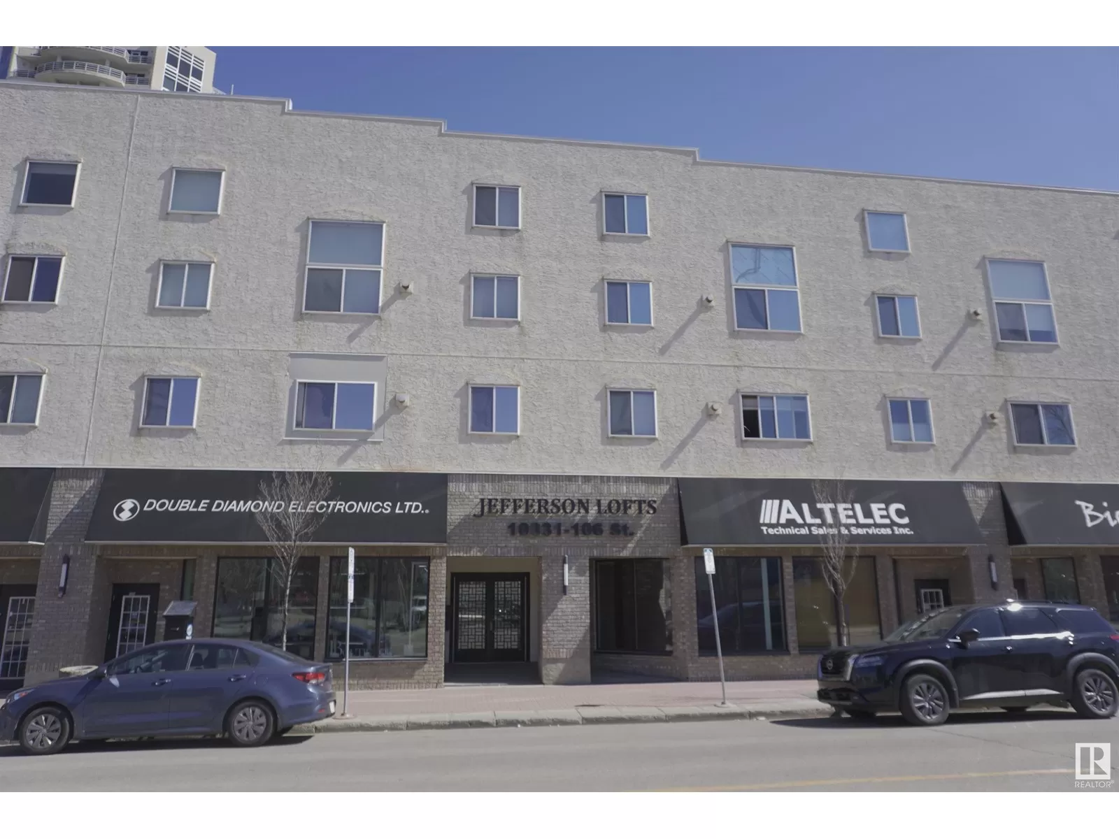 Welcome to this top floor Jefferson Lofts condo. A bright open loft with 17 ft ceilings. The living room features a natural gas fireplace, dining area offers extra built in shelving, and spacious open kitchen. Master bedroom has a massive walk thru closet and 4 piece ensuite. The loft area can be used as a second bedroom or versatile work/bonus space. You also have a second bathroom and in-suite laundry. One underground titled parking stall. Walking distance to Macewan, Rogers Arena and Ice District. You have to check this one out. (id:27476)