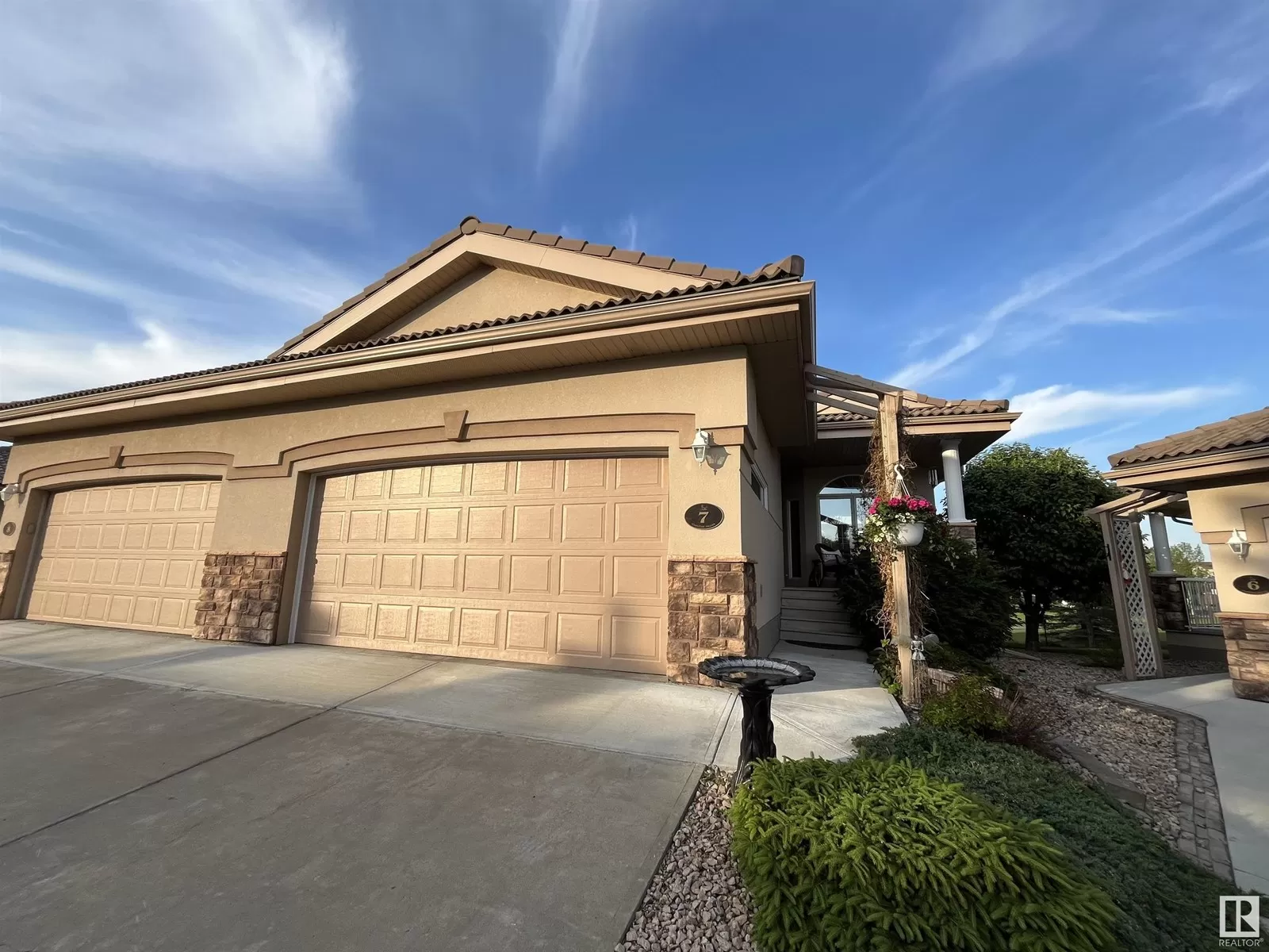 CLASS w/ distiction in this ADULT (18+) Bungalow at Carlton Villa's. Rare WALKOUT basement with a VIEW OF THE LAKE! 3 bedrooms PLUS A DEN, 3 full baths with a PRIVATE DECK and PATIO to enjoy some outdoor living! The open layout features VAULTED ceilings, HARDWOOD floors in the living and dining areas, TILE in the u-shaped kitchen and bathrooms, w/updated broadloom in the bedrooms and basement. Cook in the U-SHAPED kitchen w/S/S appliances and a RAISED BAR style counter top for entertaining. Relax in the primary bedroom incl. a 5 piece jetted ensuite, and walk-in closet for your wardrobe. Meticulously maintained, feeling nearly new w/upgrades such as CENTRAL A/C, a built-in vac system, underground sprinklers, & 2 gas FIREPLACES. The low-maintenance exterior of the CLAY TILE roof, stone & stucco exterior is the GOLD STANDARD. Enjoy the TRANQUIL and convenient lifestyle of LAKEFRONT LIVING, with all the amenities. Low condo fees include snow removal and landscaping. See it you'll LOVE this place! (id:27476)