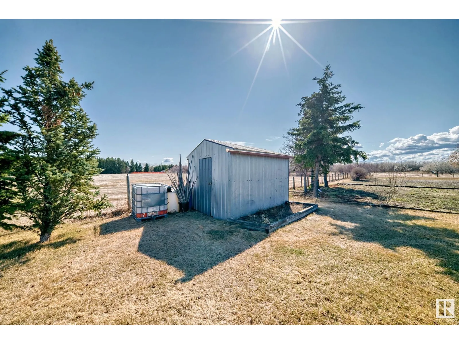 Looking for HAPPINESS? 19.5 acres of prime country living and future developable land in the Edmonton Energy and Technology Park. This hobby farm is fenced with several outbuildings and animal corrals that have accommodated chickens, sheep, cattle, and even a donkey and llama. The best part of this country living is you are still in Edmonton with agricultural zoning and lower taxes. The custom built 2643 square foot bungalow has 5 bedrooms and 3 bathrooms on the main floor with direct access from breezeway to triple garage. A partially finished wide open basement has a separate entrance with an extra room and full bathroom. All this surrounded by mature trees with a large garden, flower beds, and a paved driveway. This is a one of a kind gorgeous property. (id:27476)