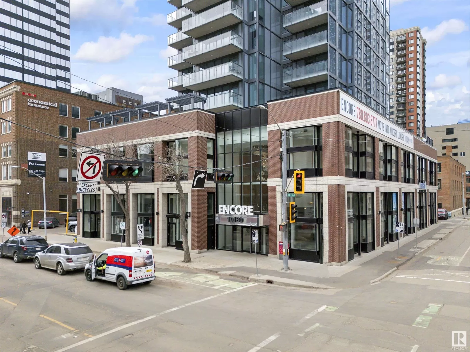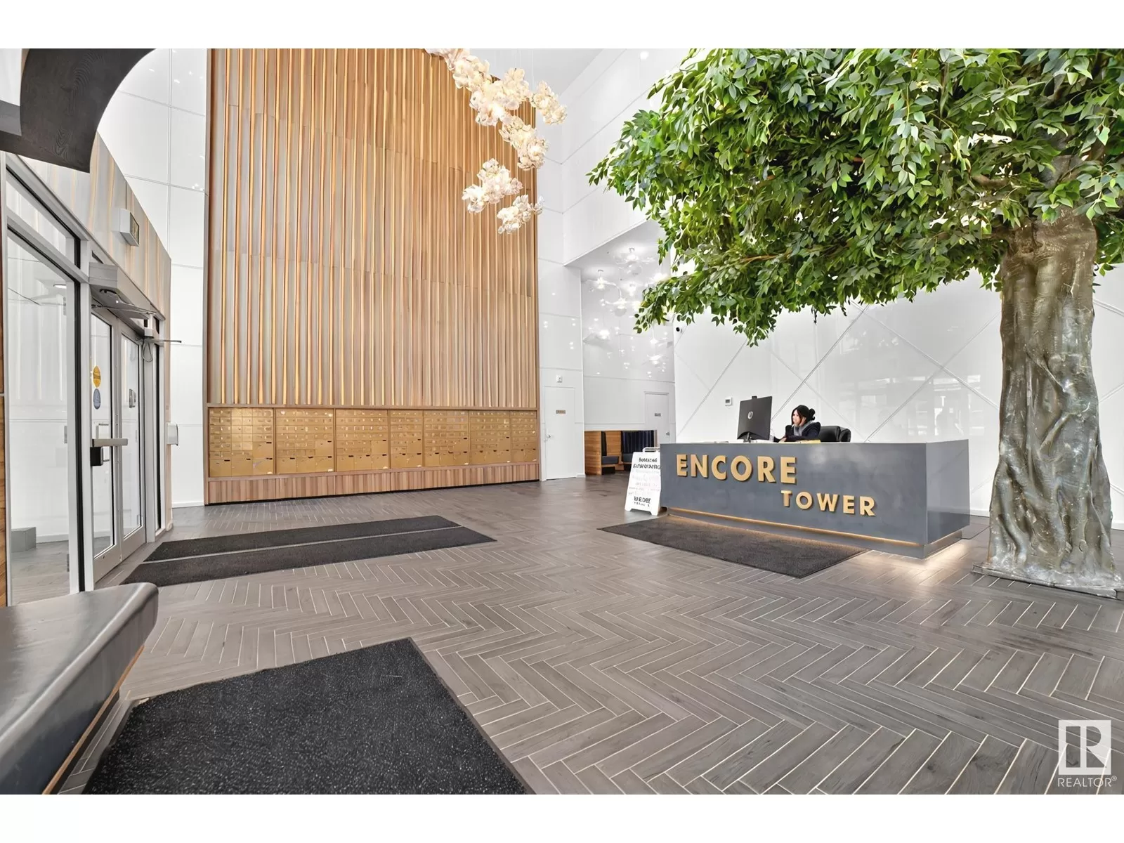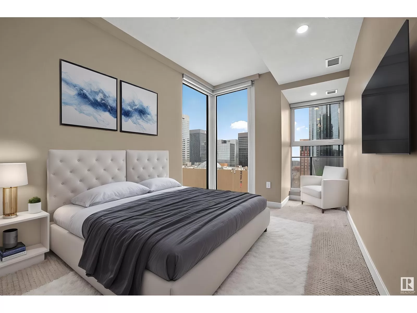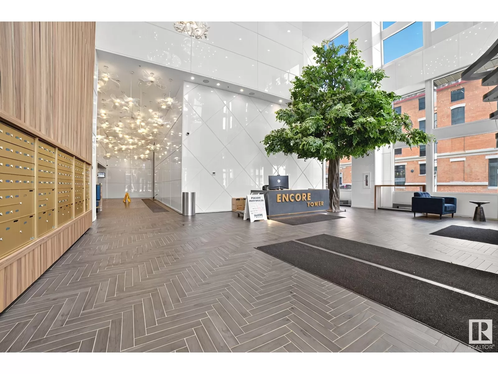 Experience unparalleled luxury in this exquisite residence located in the coveted Encore Tower. Situated in a Walker's Paradise, everything from dining, shopping, and Roger's Arena are just steps away. This suite features floor-to-ceiling windows offering an abundance of natural light, stunning views of downtown Edmonton, and a convenient grand 20-foot balcony. The modern kitchen features full-size Whirlpool appliances, and sleek quartz countertops, while the spacious interiors are designed for both comfort and style with elegant roller-shades and durable laminate flooring. Relax and enjoy premium amenities including a fitness center to maintain an active lifestyle, concierge service for personalized assistance, and both indoor and outdoor lounges complete with fireplace and an extended bar. Heated underground parking with dedicated storage adds convenience to daily living. Whether you're an investor or seeking vibrant downtown living,this property is the perfect urban retreat.Don't miss this opportunity! (id:27476)