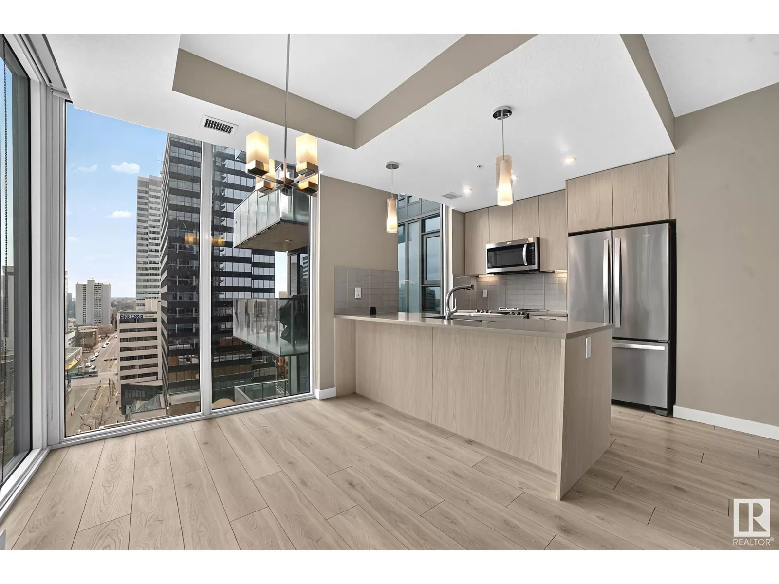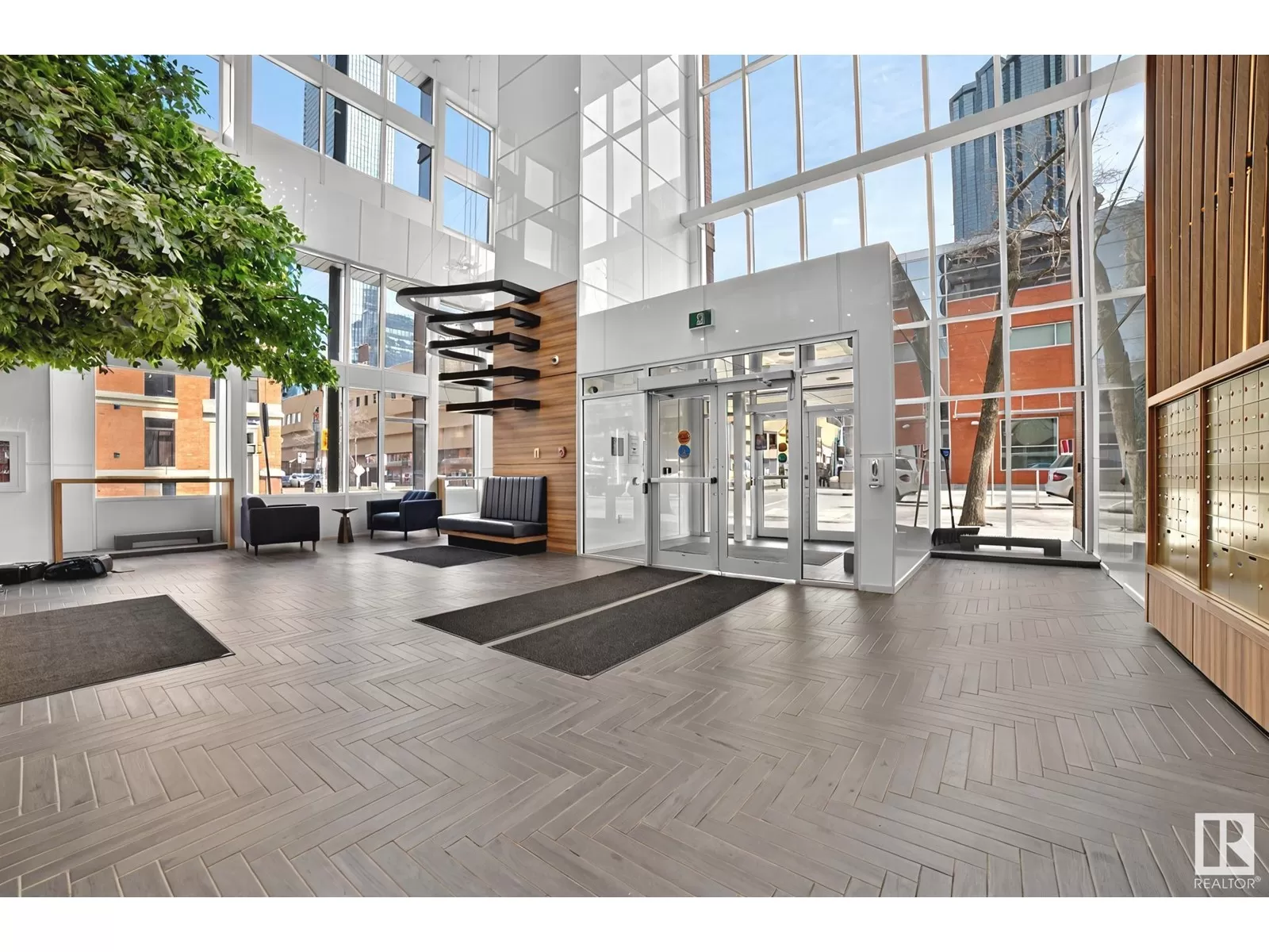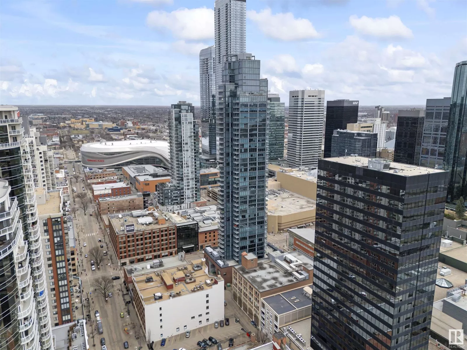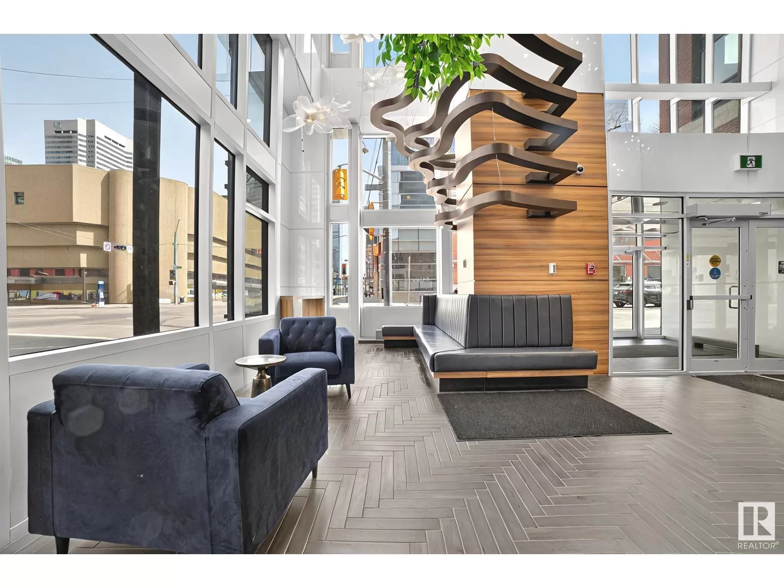 Experience unparalleled luxury in this exquisite residence located in the coveted Encore Tower. Situated in a Walker's Paradise, everything from dining, shopping, and Roger's Arena are just steps away. This suite features floor-to-ceiling windows offering an abundance of natural light, stunning views of downtown Edmonton, and a convenient grand 20-foot balcony. The modern kitchen features full-size Whirlpool appliances, and sleek quartz countertops, while the spacious interiors are designed for both comfort and style with elegant roller-shades and durable laminate flooring. Relax and enjoy premium amenities including a fitness center to maintain an active lifestyle, concierge service for personalized assistance, and both indoor and outdoor lounges complete with fireplace and an extended bar. Heated underground parking with dedicated storage adds convenience to daily living. Whether you're an investor or seeking vibrant downtown living,this property is the perfect urban retreat.Don't miss this opportunity! (id:27476)
