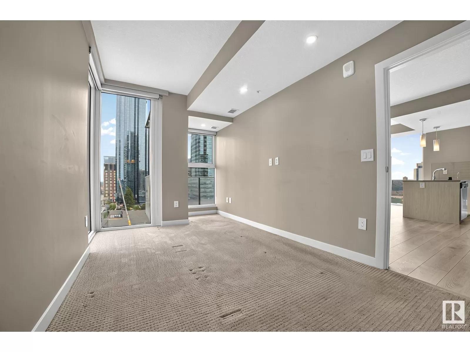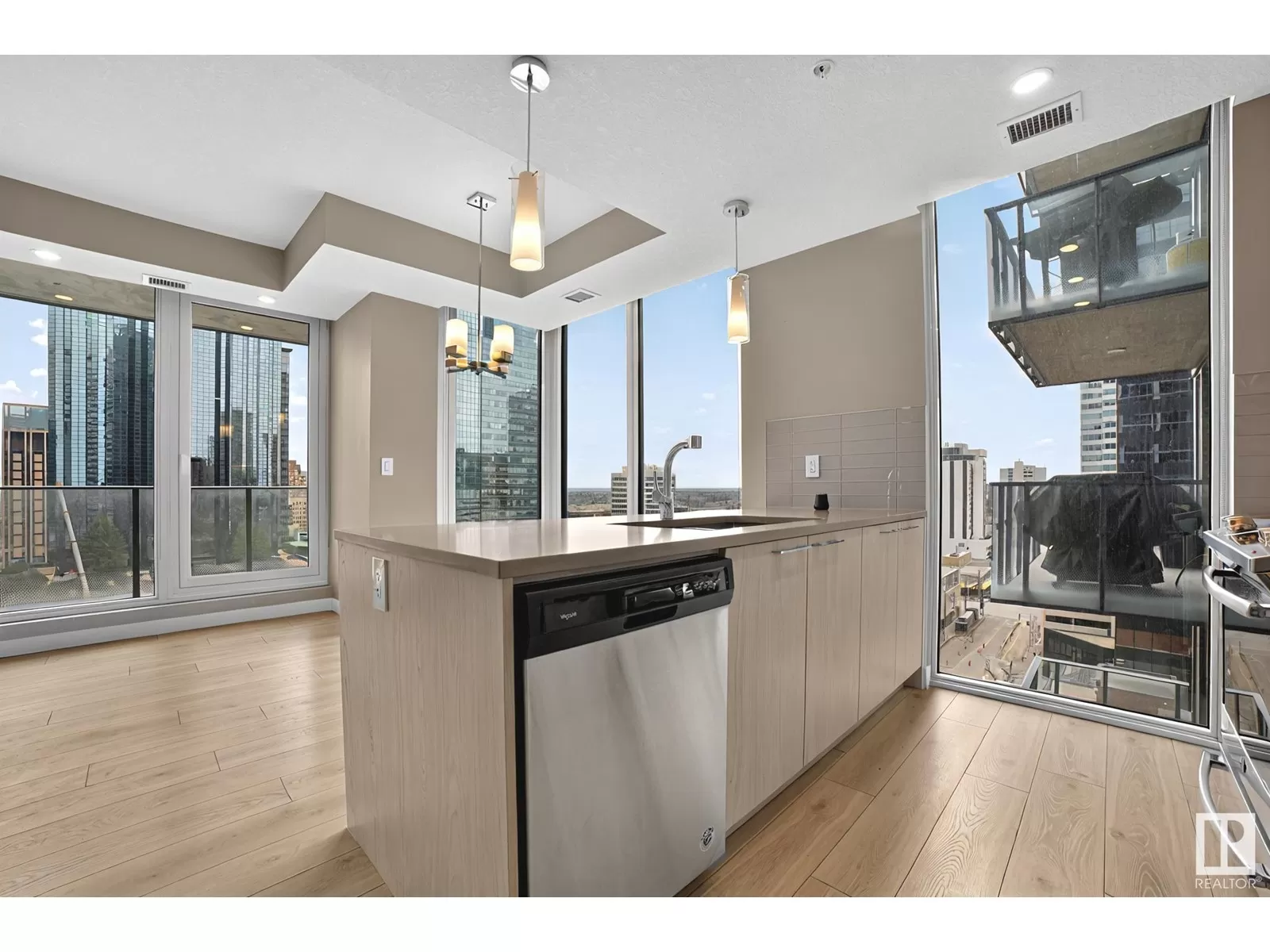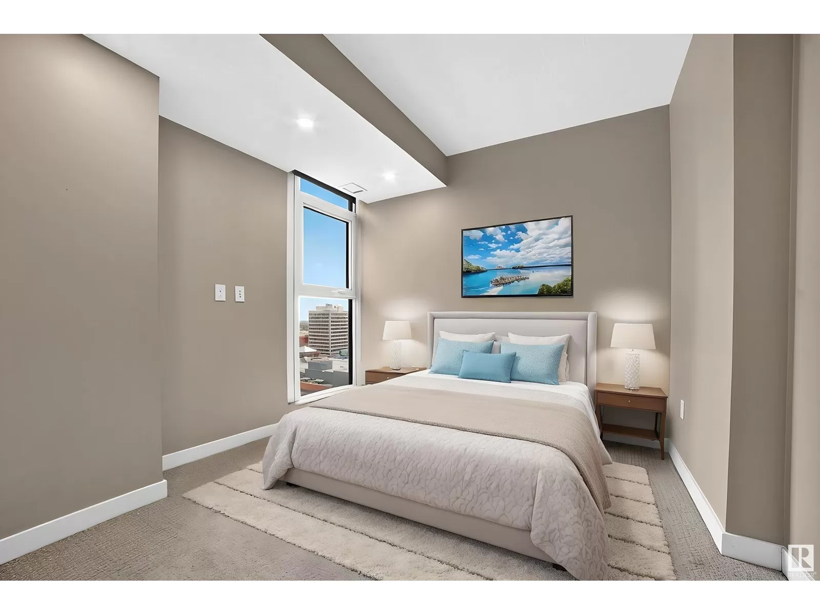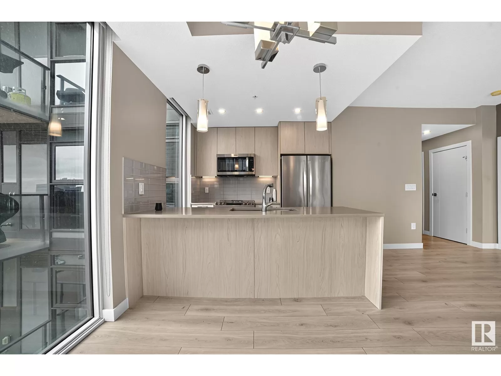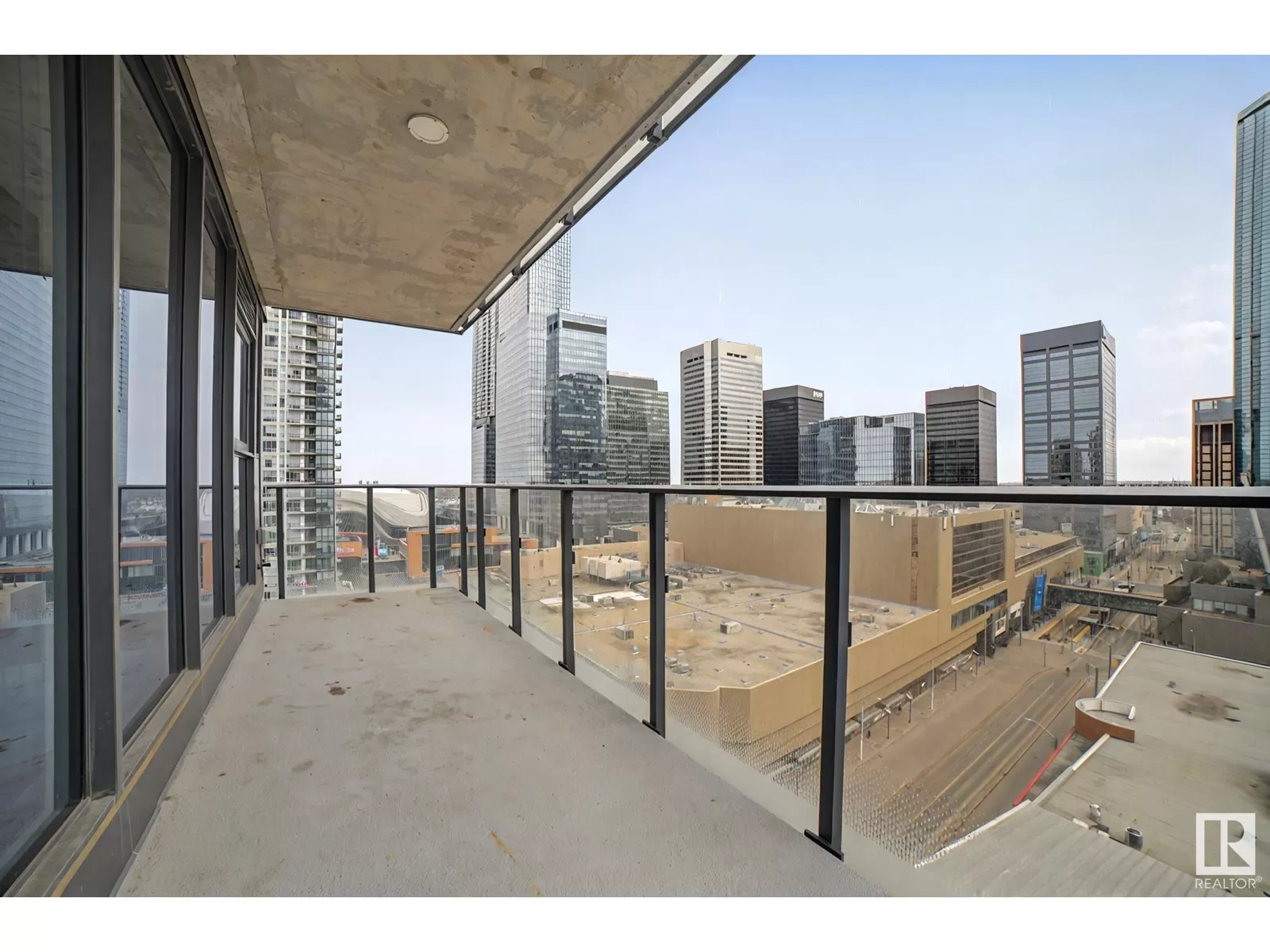 Experience unparalleled luxury in this exquisite residence located in the coveted Encore Tower. Situated in a Walker's Paradise, everything from dining, shopping, and Roger's Arena are just steps away. This suite features floor-to-ceiling windows offering an abundance of natural light, stunning views of downtown Edmonton, and a convenient grand 20-foot balcony. The modern kitchen features full-size Whirlpool appliances, and sleek quartz countertops, while the spacious interiors are designed for both comfort and style with elegant roller-shades and durable laminate flooring. Relax and enjoy premium amenities including a fitness center to maintain an active lifestyle, concierge service for personalized assistance, and both indoor and outdoor lounges complete with fireplace and an extended bar. Heated underground parking with dedicated storage adds convenience to daily living. Whether you're an investor or seeking vibrant downtown living,this property is the perfect urban retreat.Don't miss this opportunity! (id:27476)